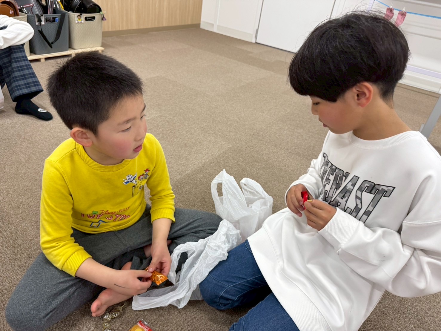 今日もあいにくの雨でみんなが大好きな公園へ行くことはできず😢室内でゆっくり過ごしたあと、お菓子の掴み取りをすることにしました🍬✨