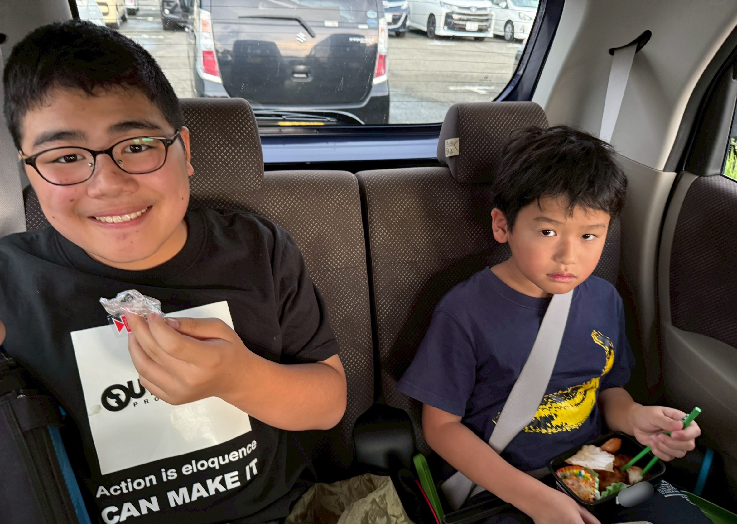 場所は「直方オートキャンプ場」を予定していましたが、、、現場に着くタイミングで雨が降り出した為、車内で待つことに☔️その間にお昼ご飯を食べました😄