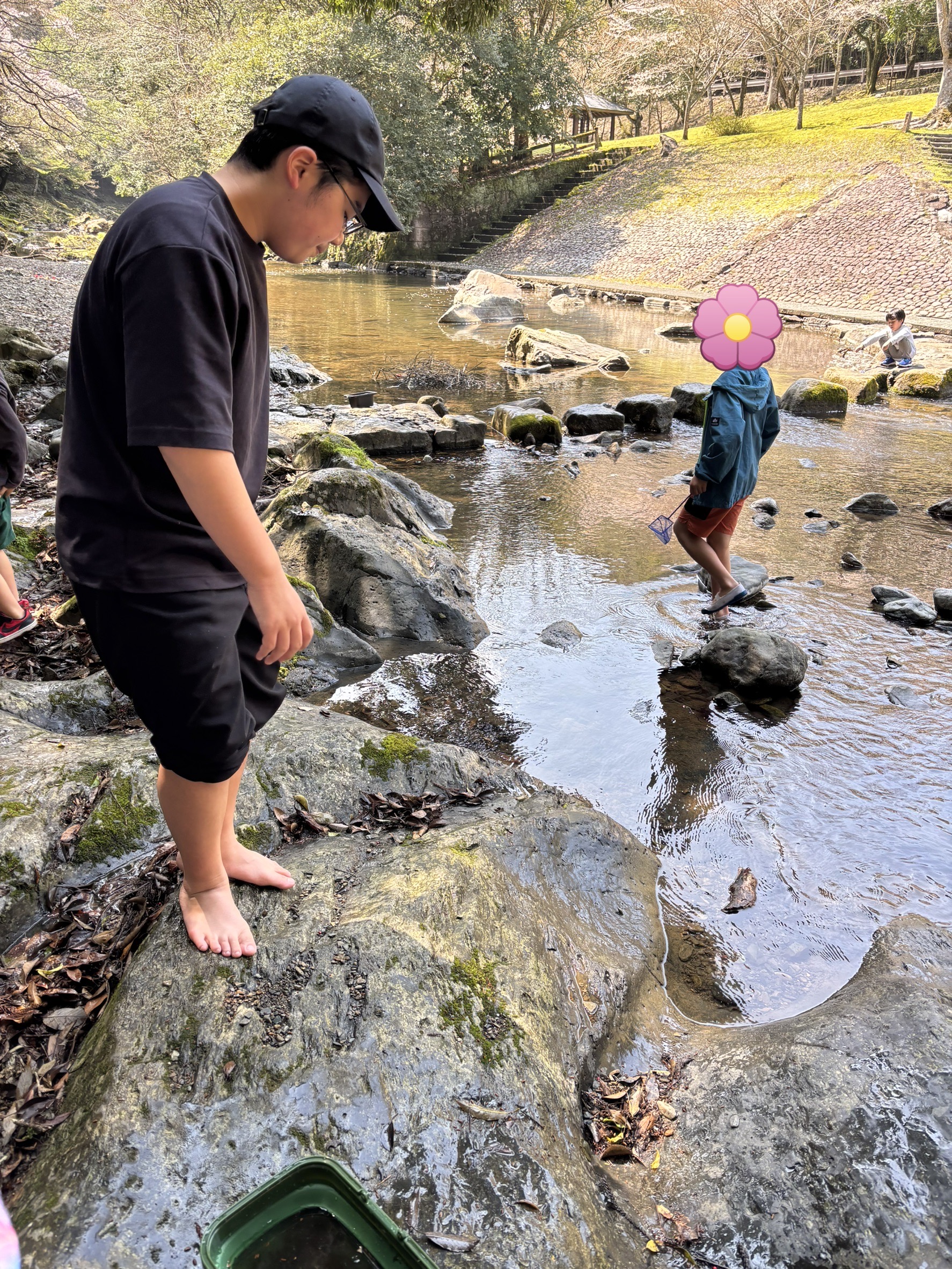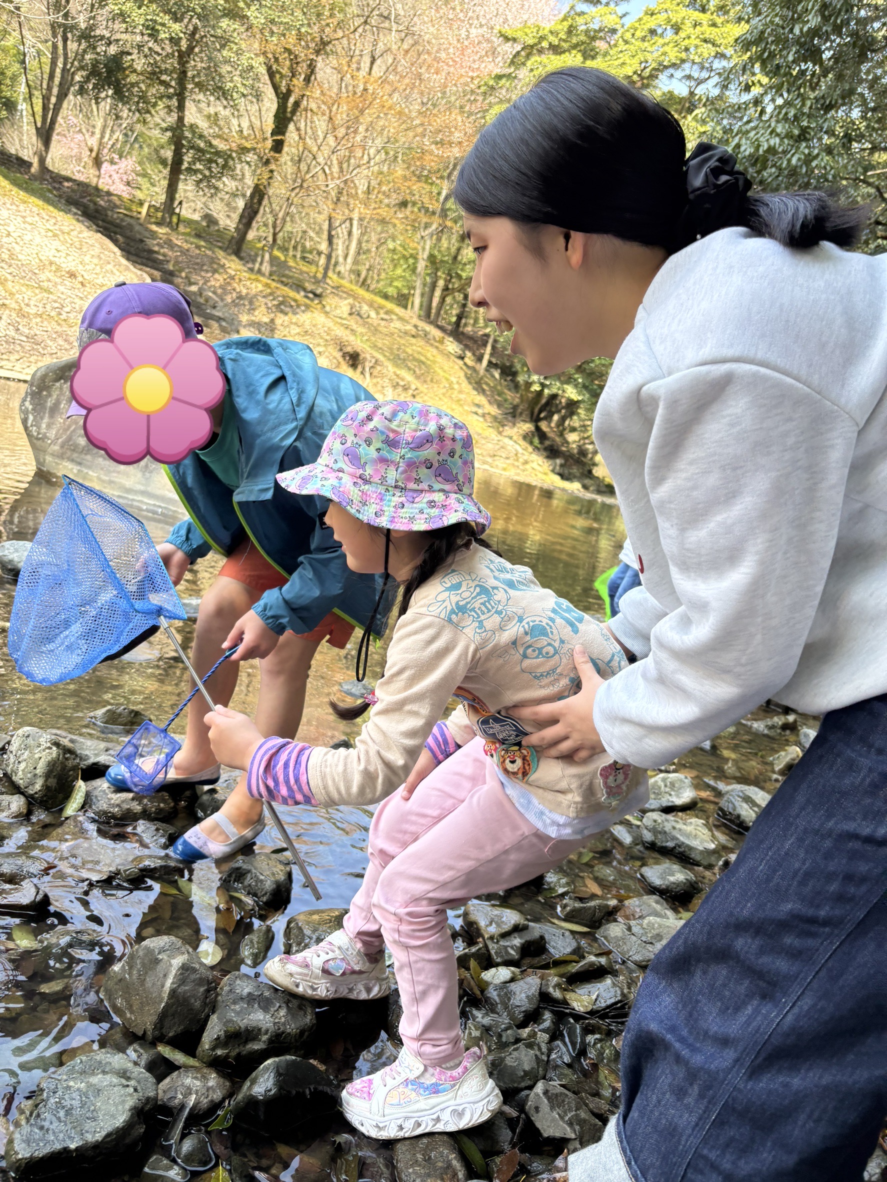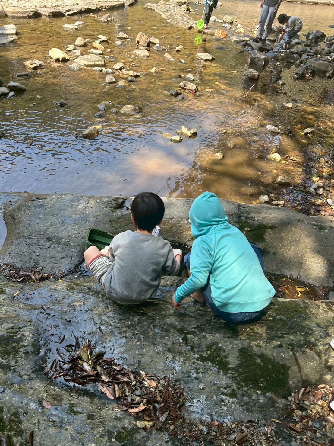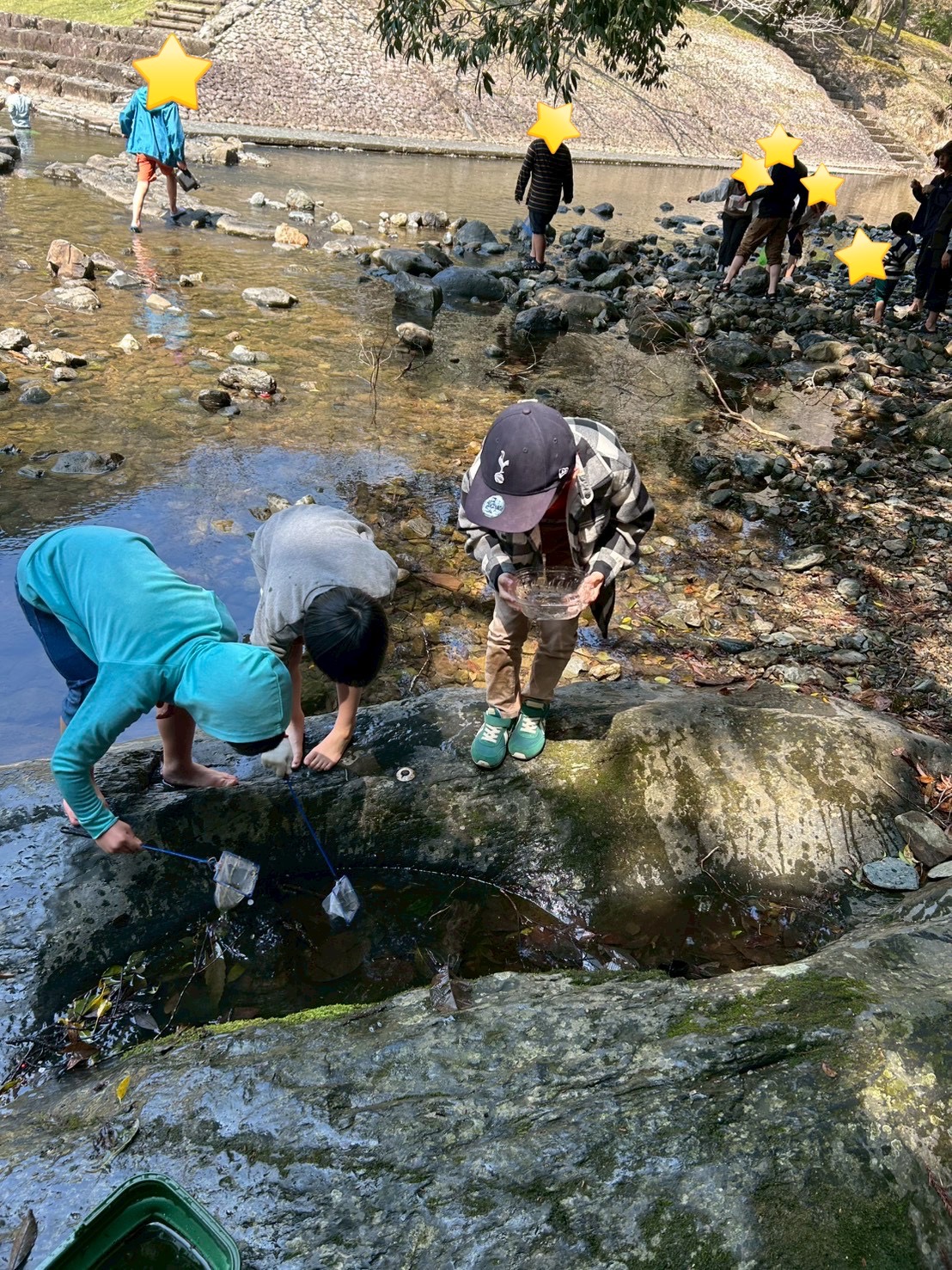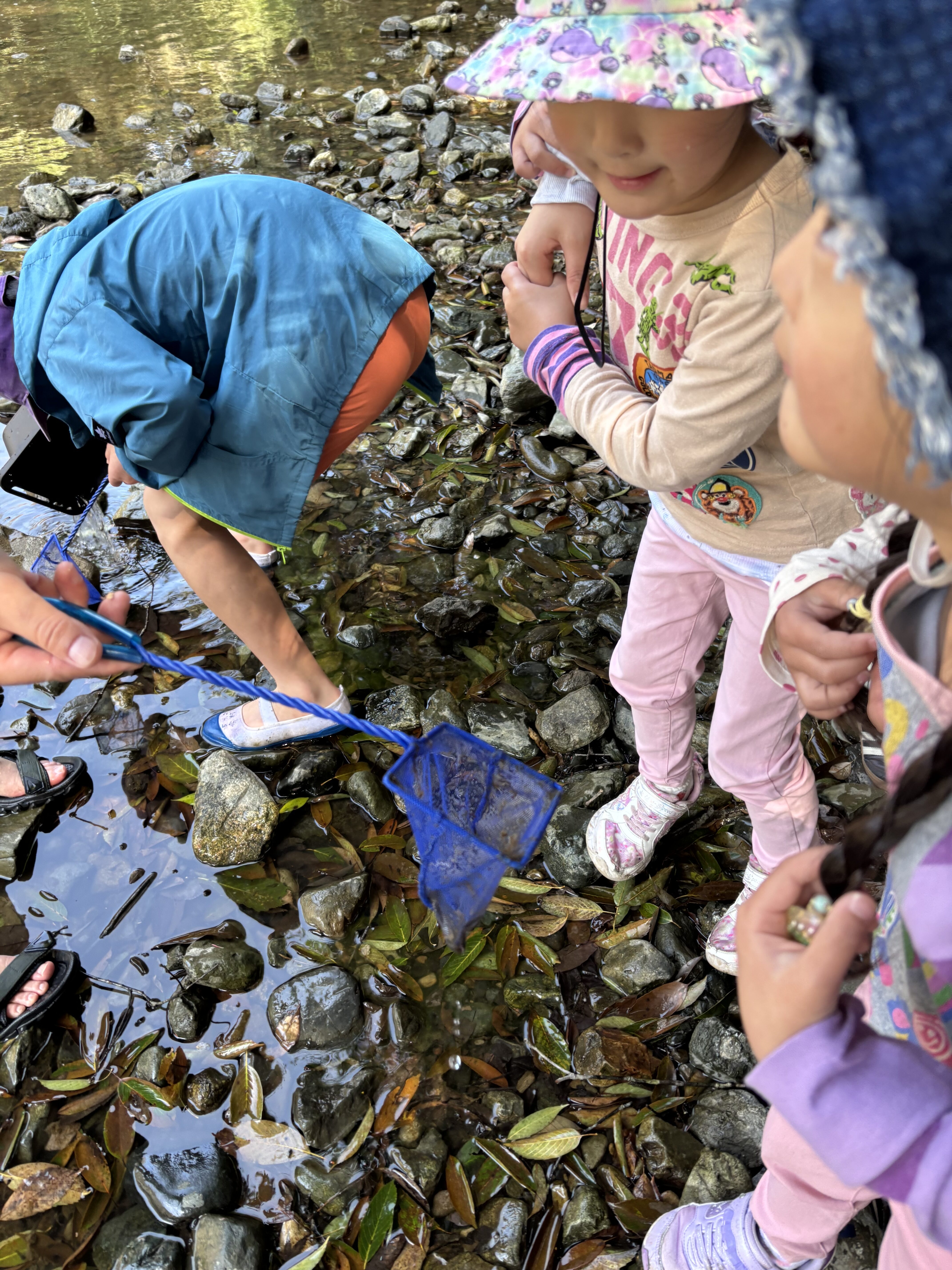 食べ終わったら、みんなで楽しく生き物探し😆