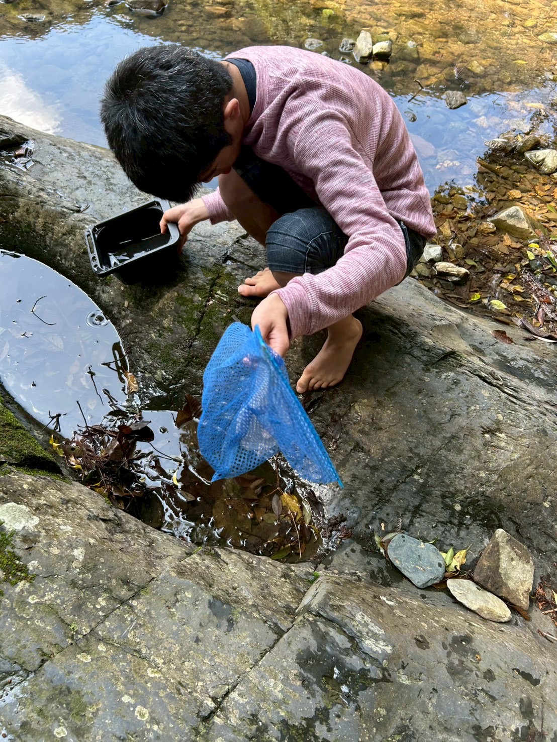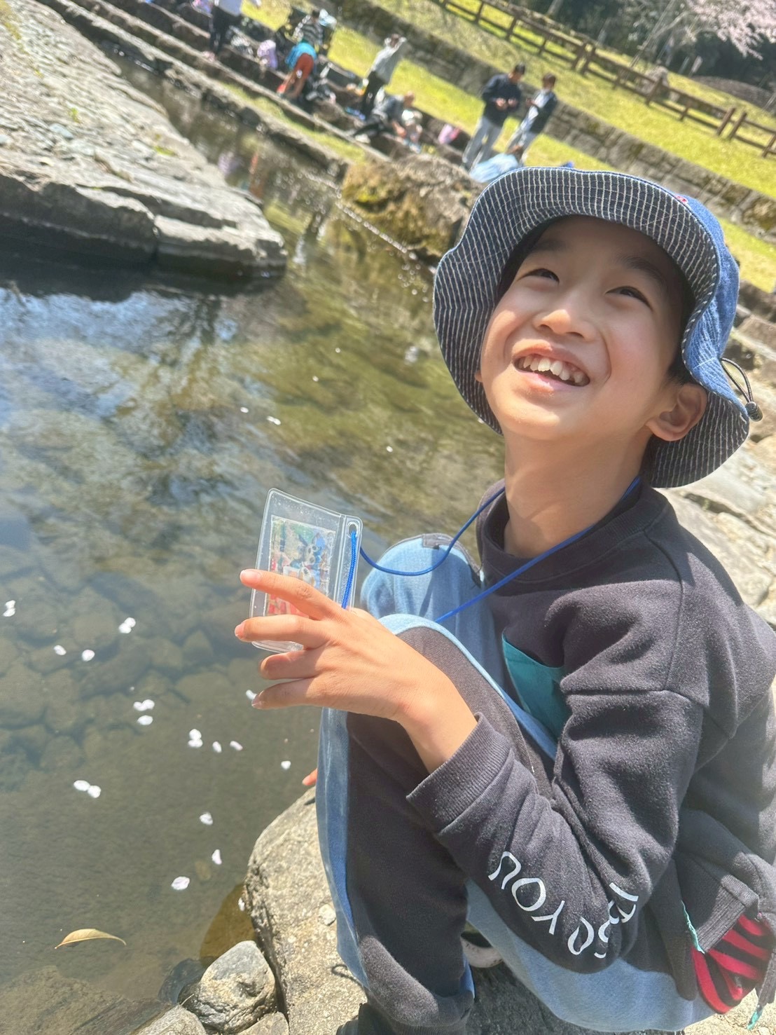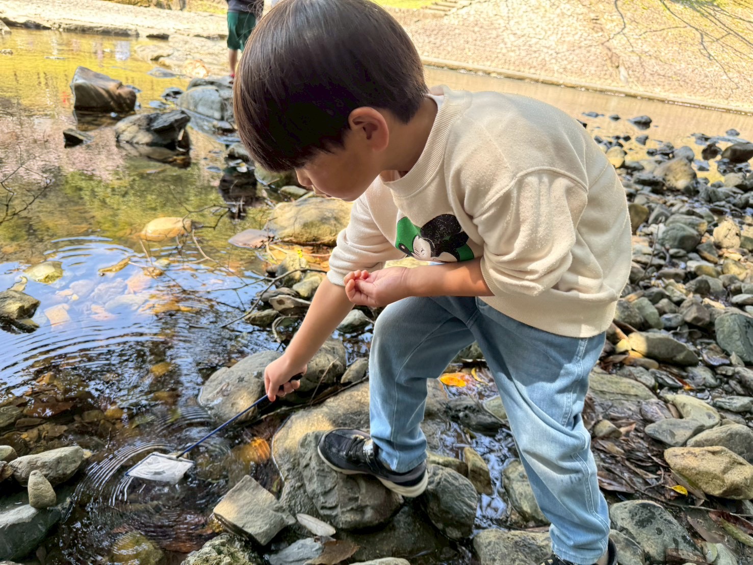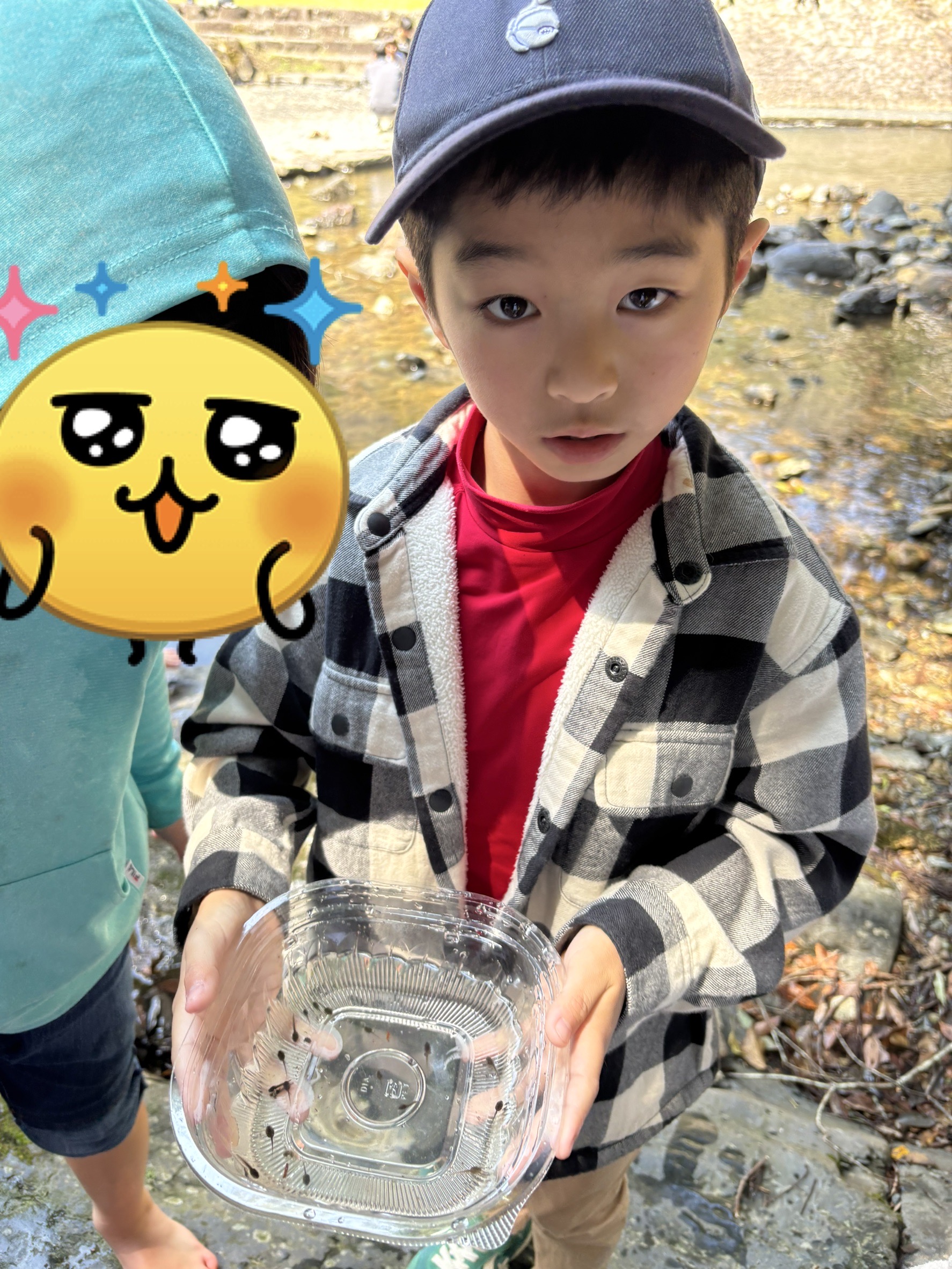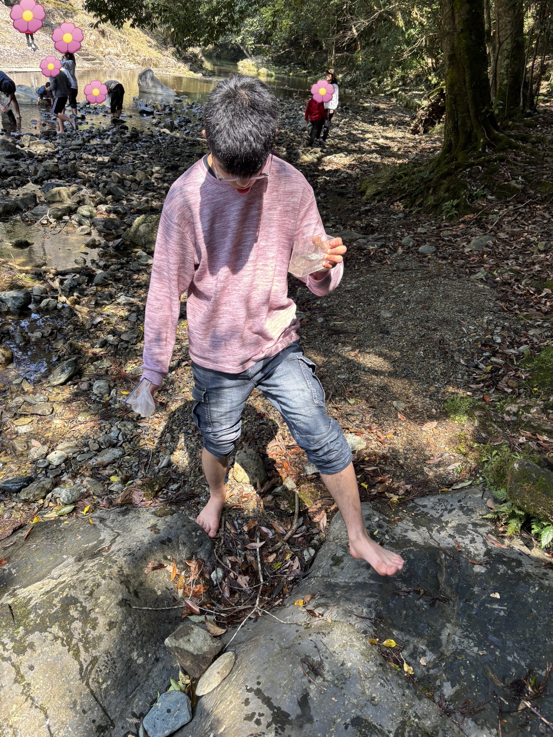 食べ終わったら、みんなで楽しく生き物探し😆