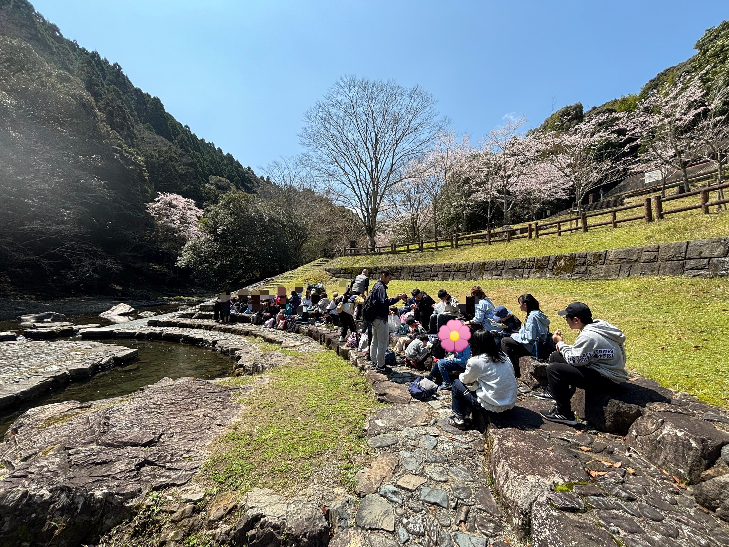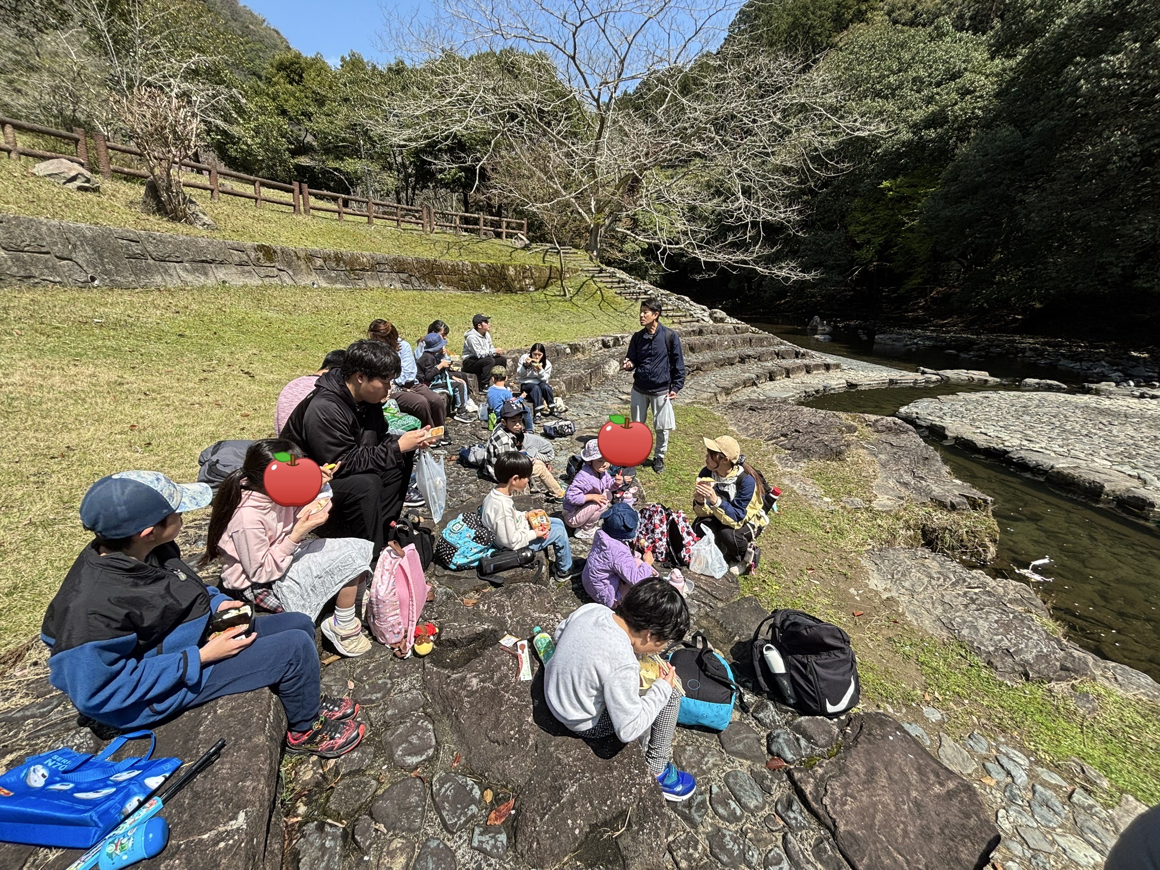 挨拶をして、まずはみんなで一緒に川辺でランチタイム🍱