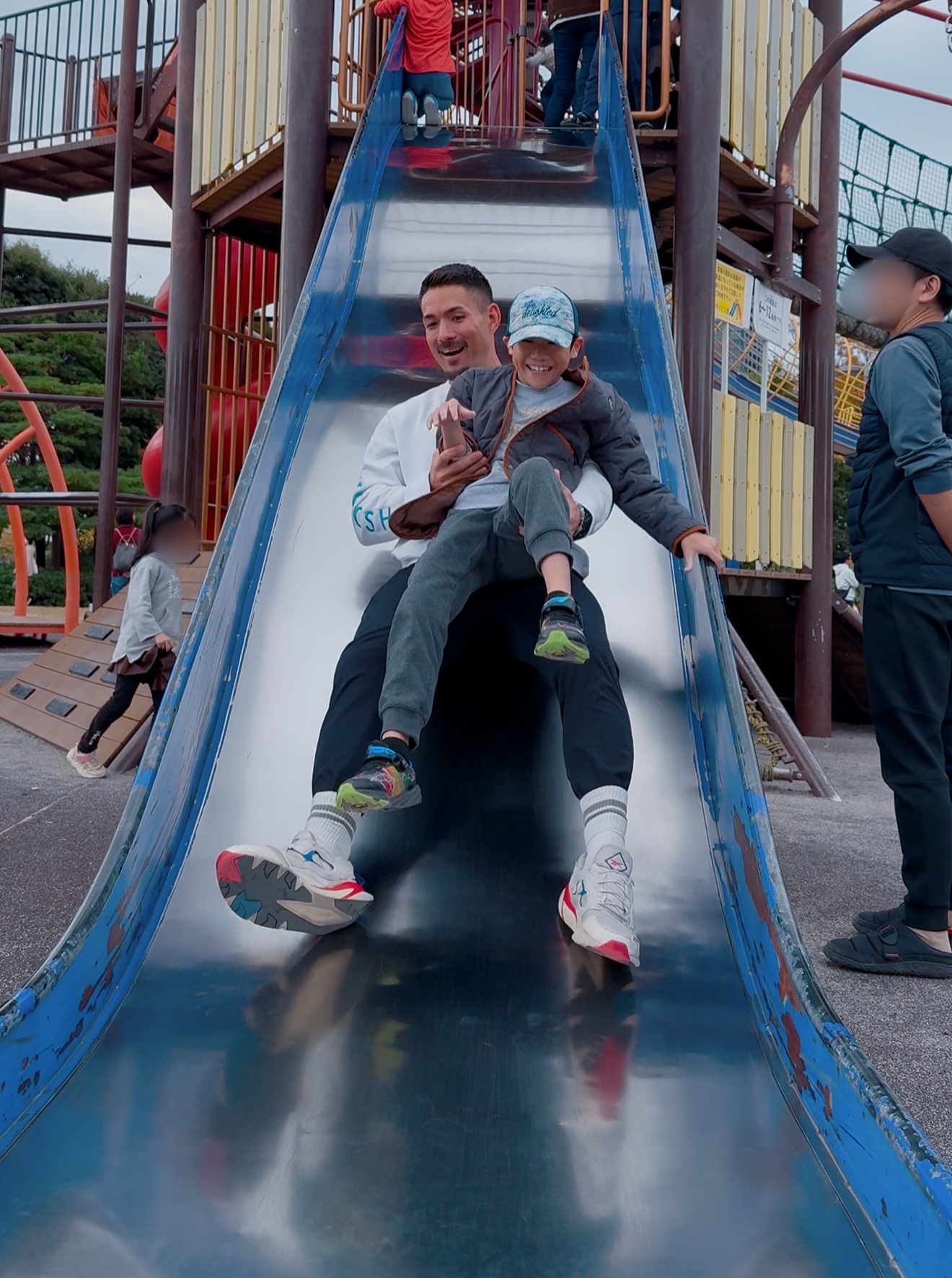 最初は「こわい!」と滑らなかった滑り台も、大好きなベン先生と滑ったことで最後は1人でチャレンジも出来ました🥹💖