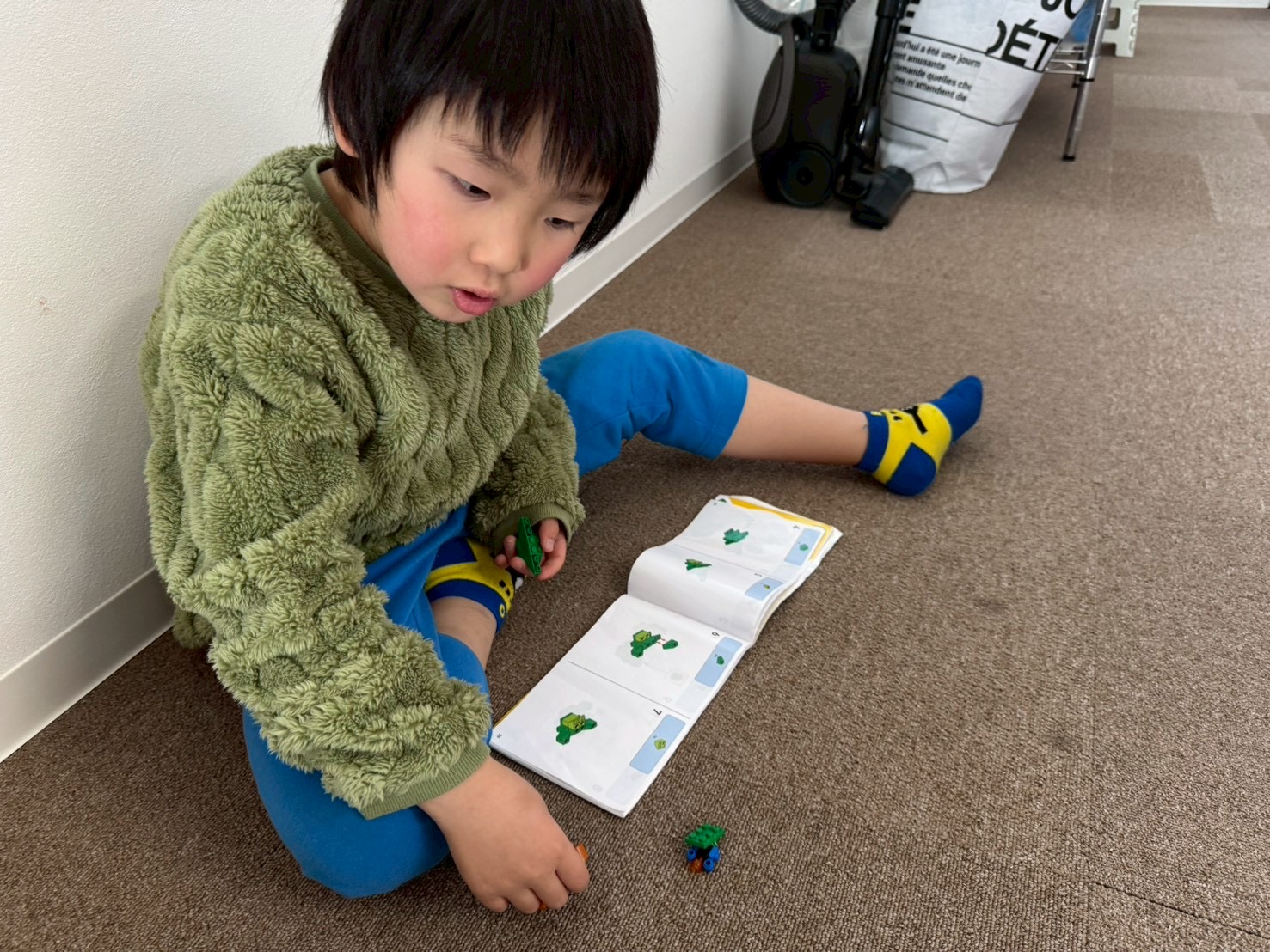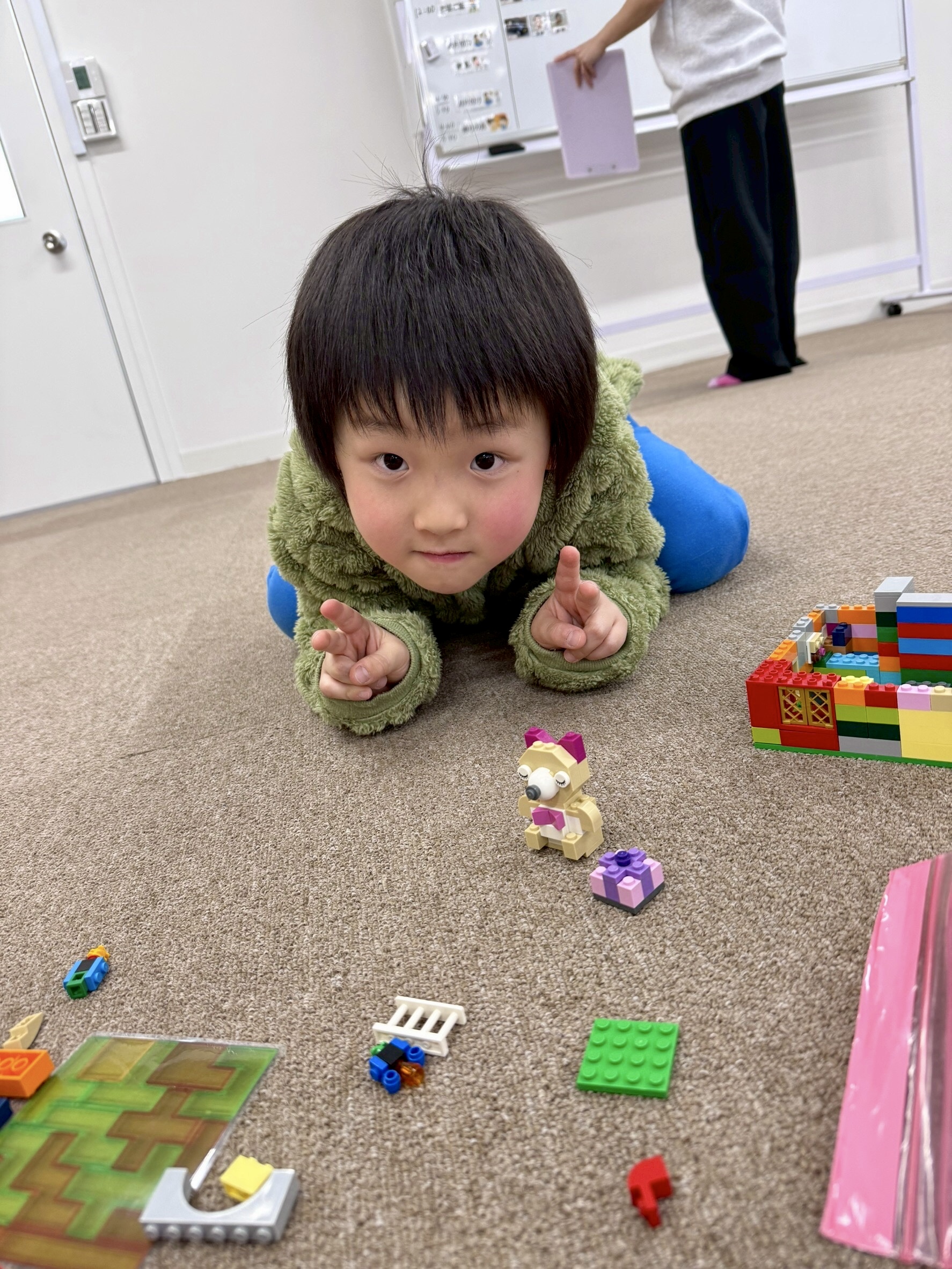 何やら真剣な眼差しで、ブロック遊び中