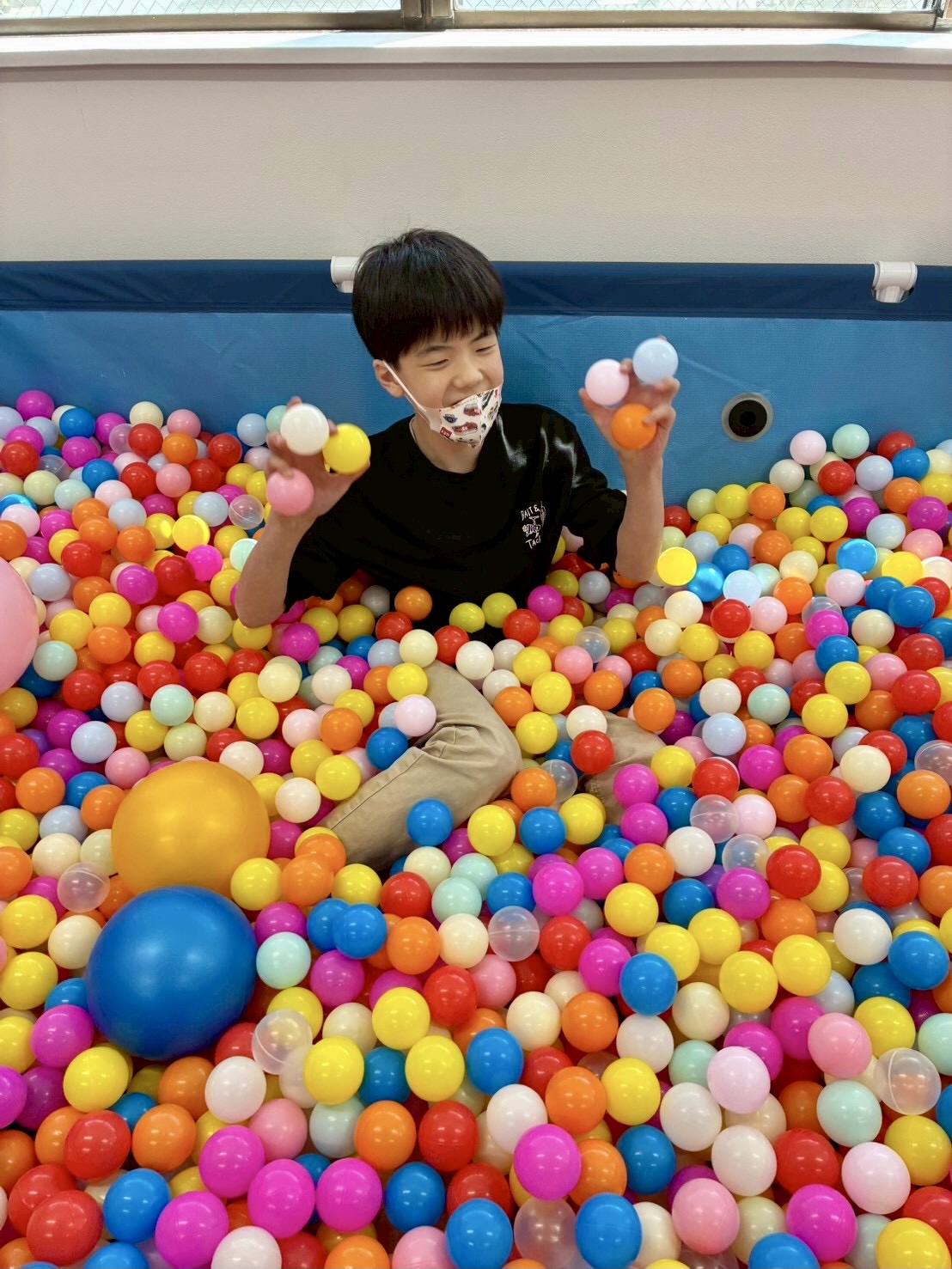 今日は、床に置かれたカラーボールを