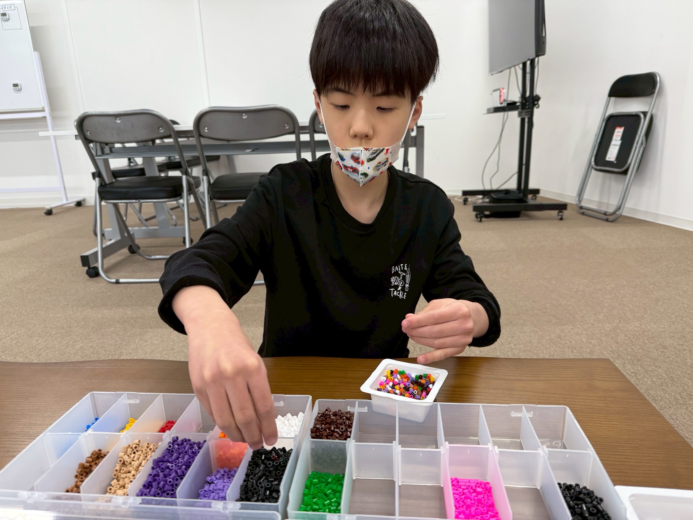 アイロンビーズの色分けを手伝ってくれました😊
