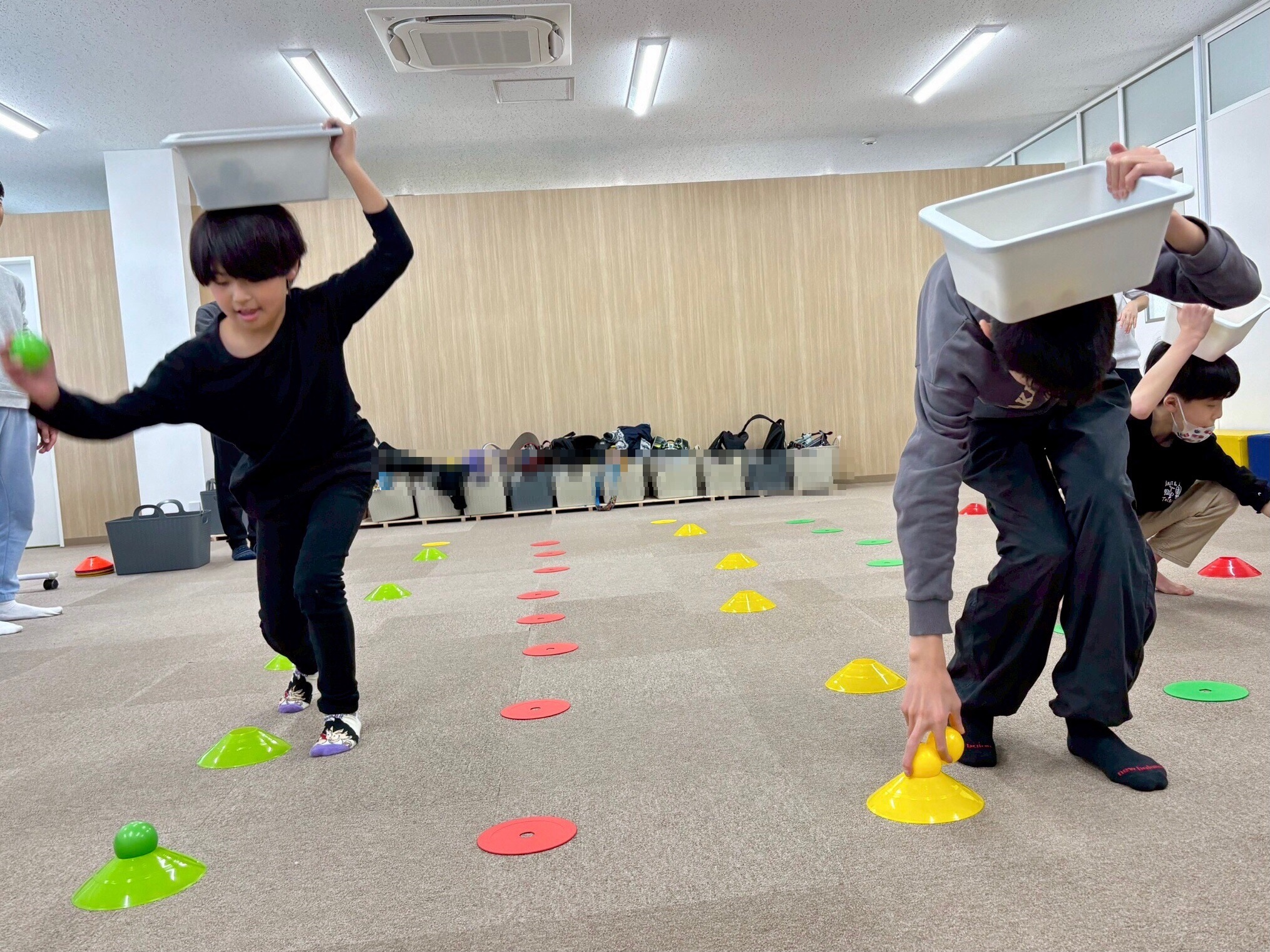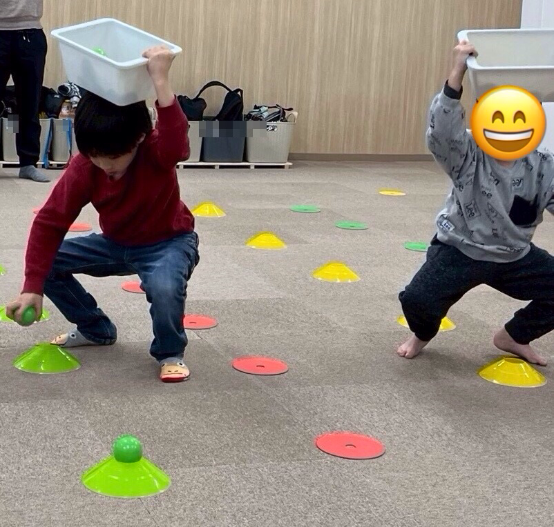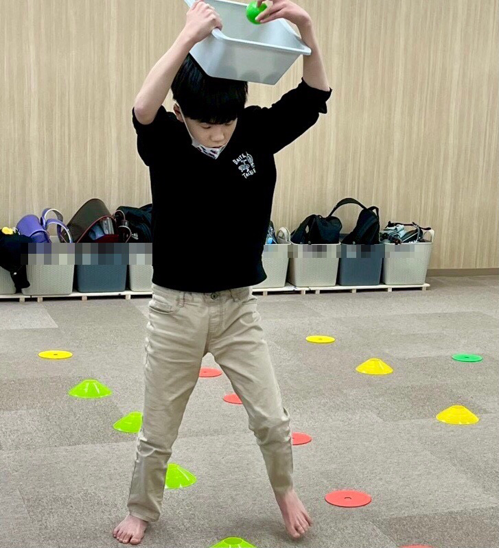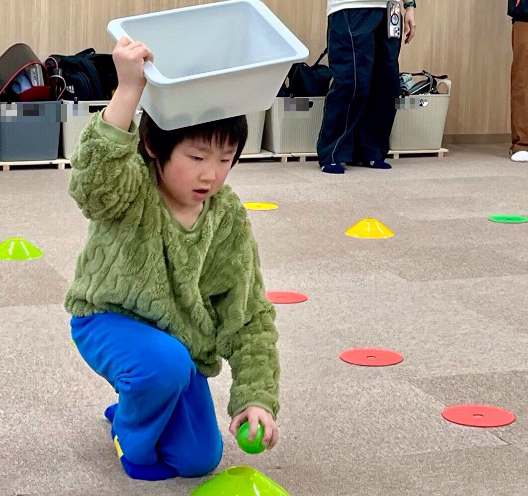 今日は、運動療育でカラーボール集め