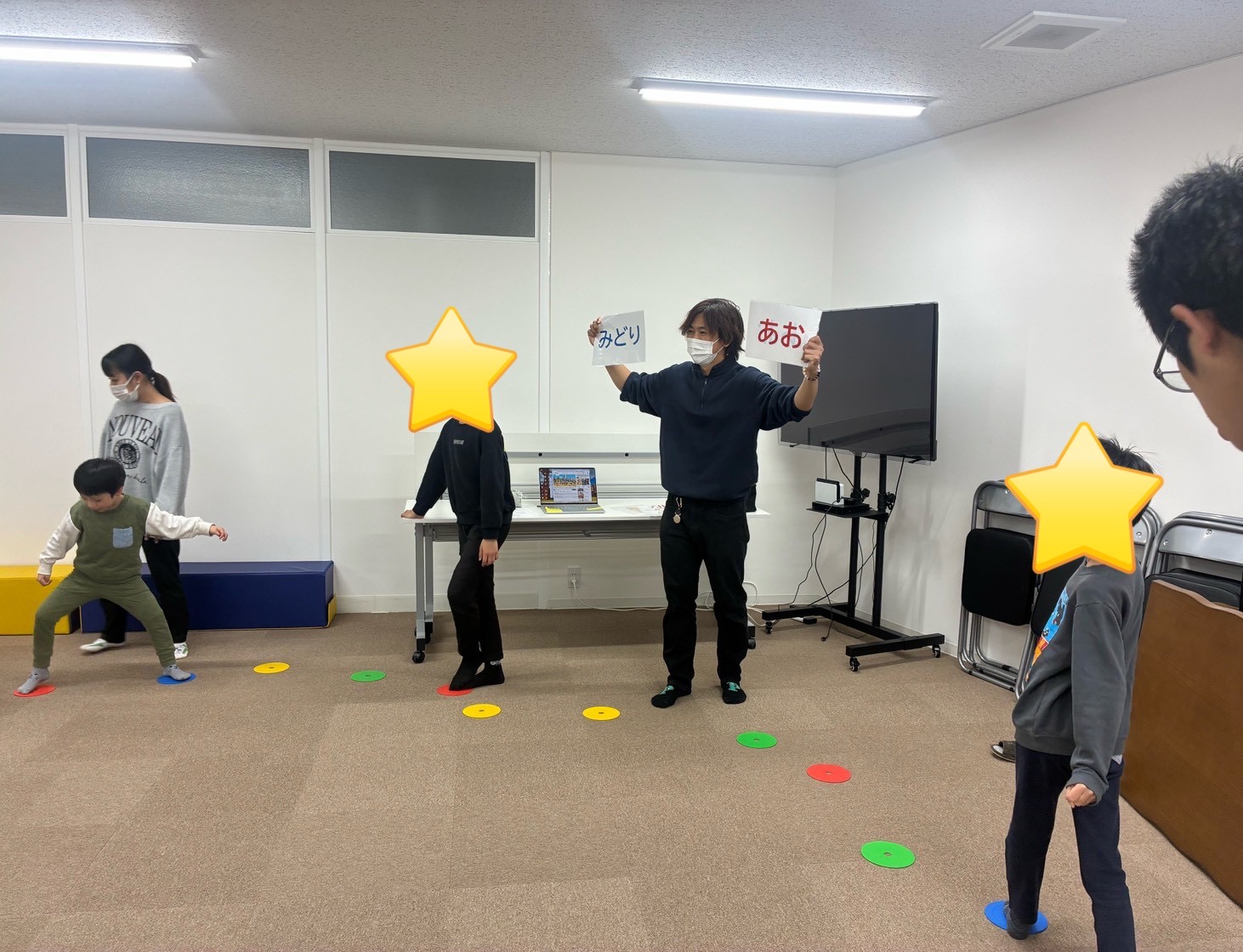 次に行ったのは、音楽に合わせて動くカラーマーカーゲームです❗️