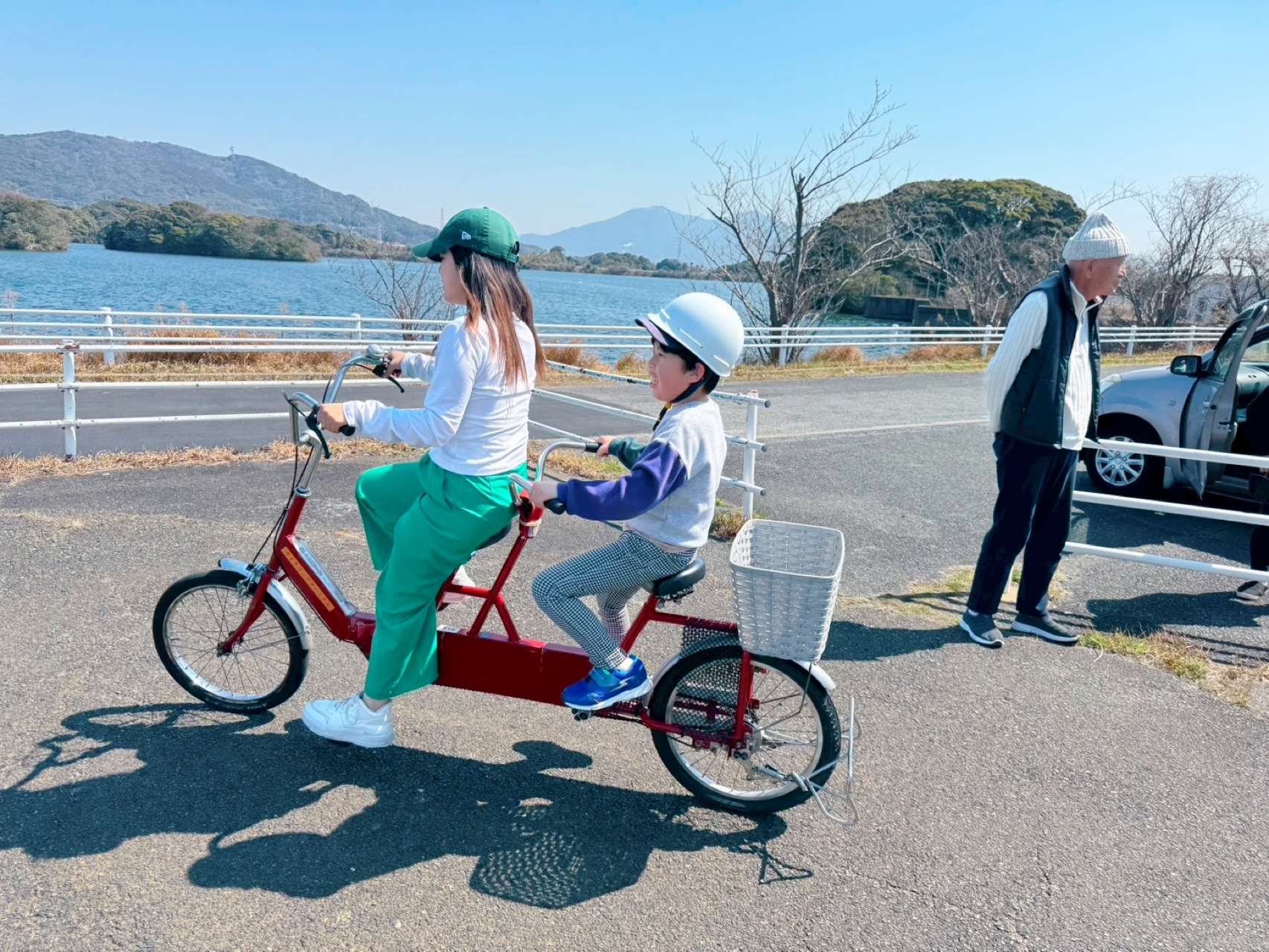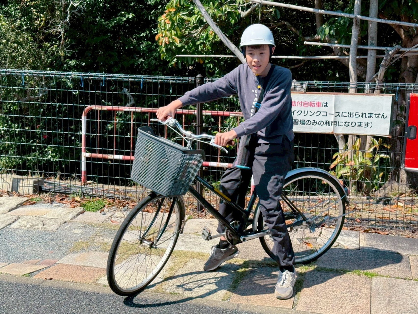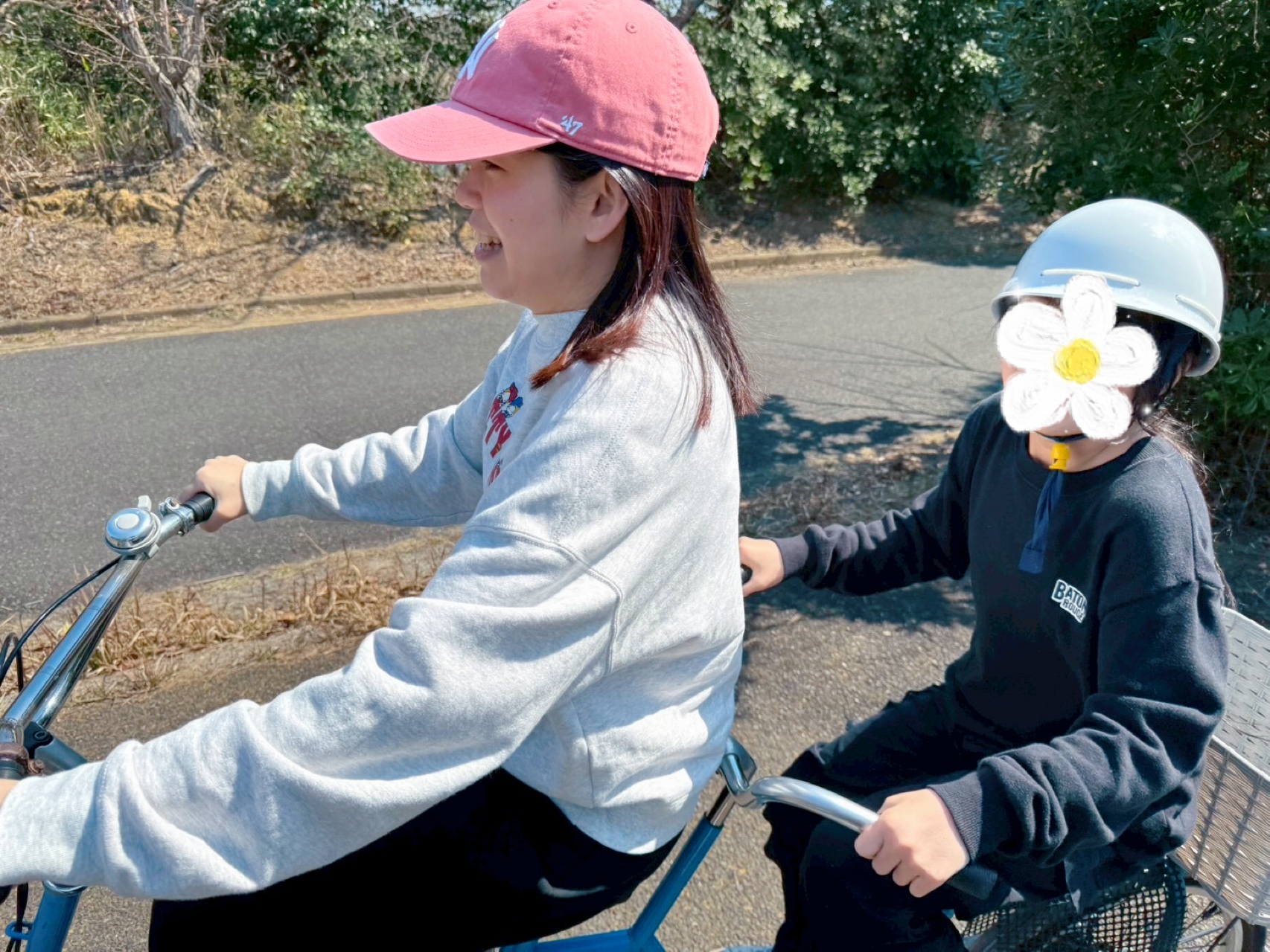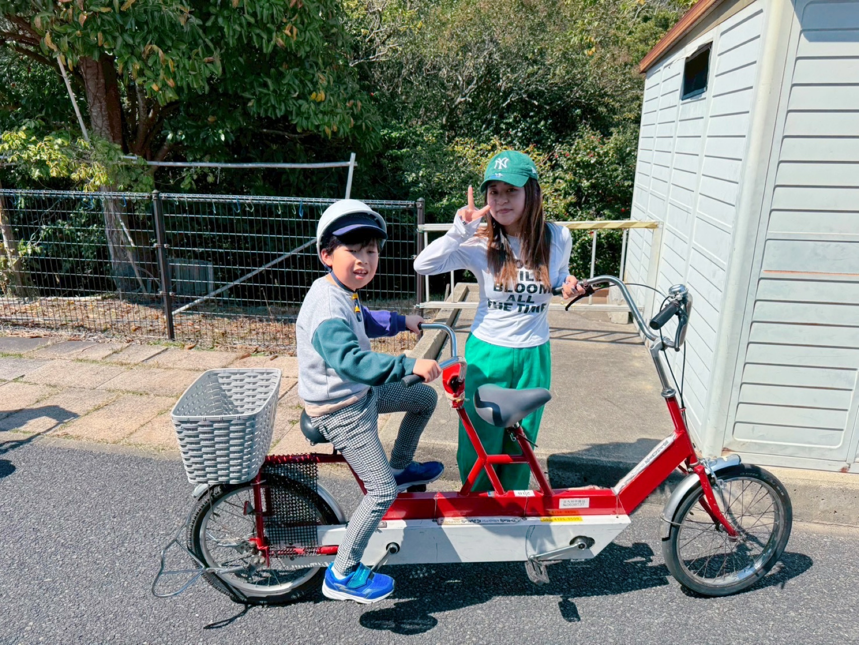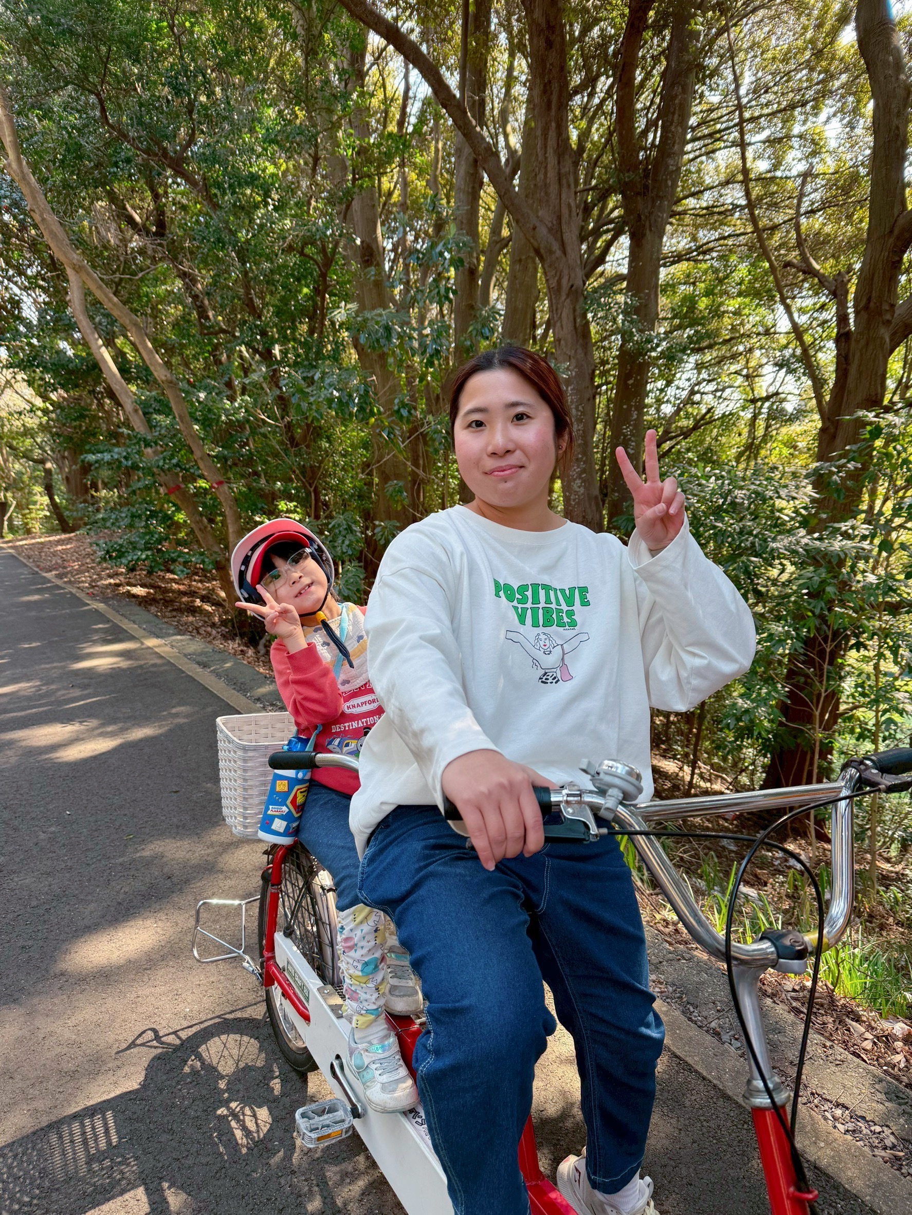 補助輪付き自転車はコースに出られないとのことだったこで、職員と2人乗りに変更して行きました🫶🏻