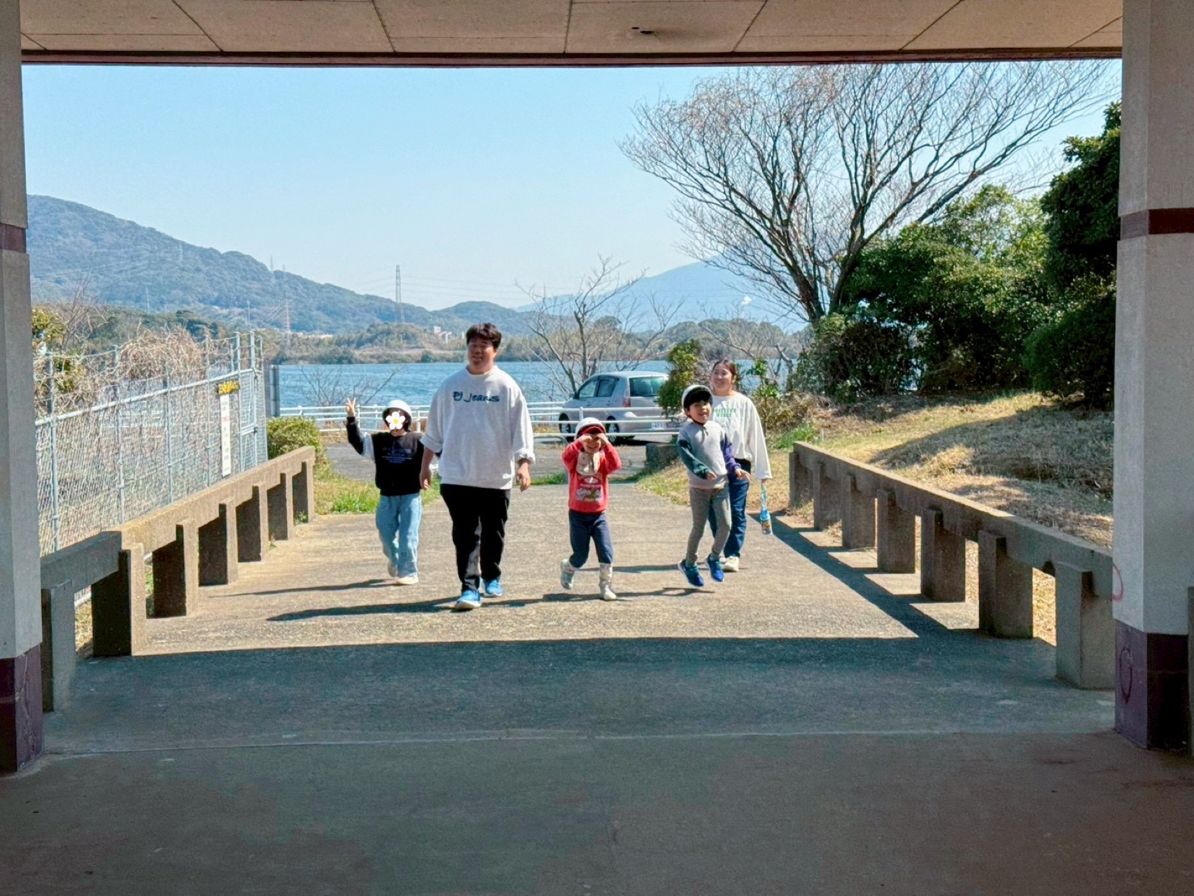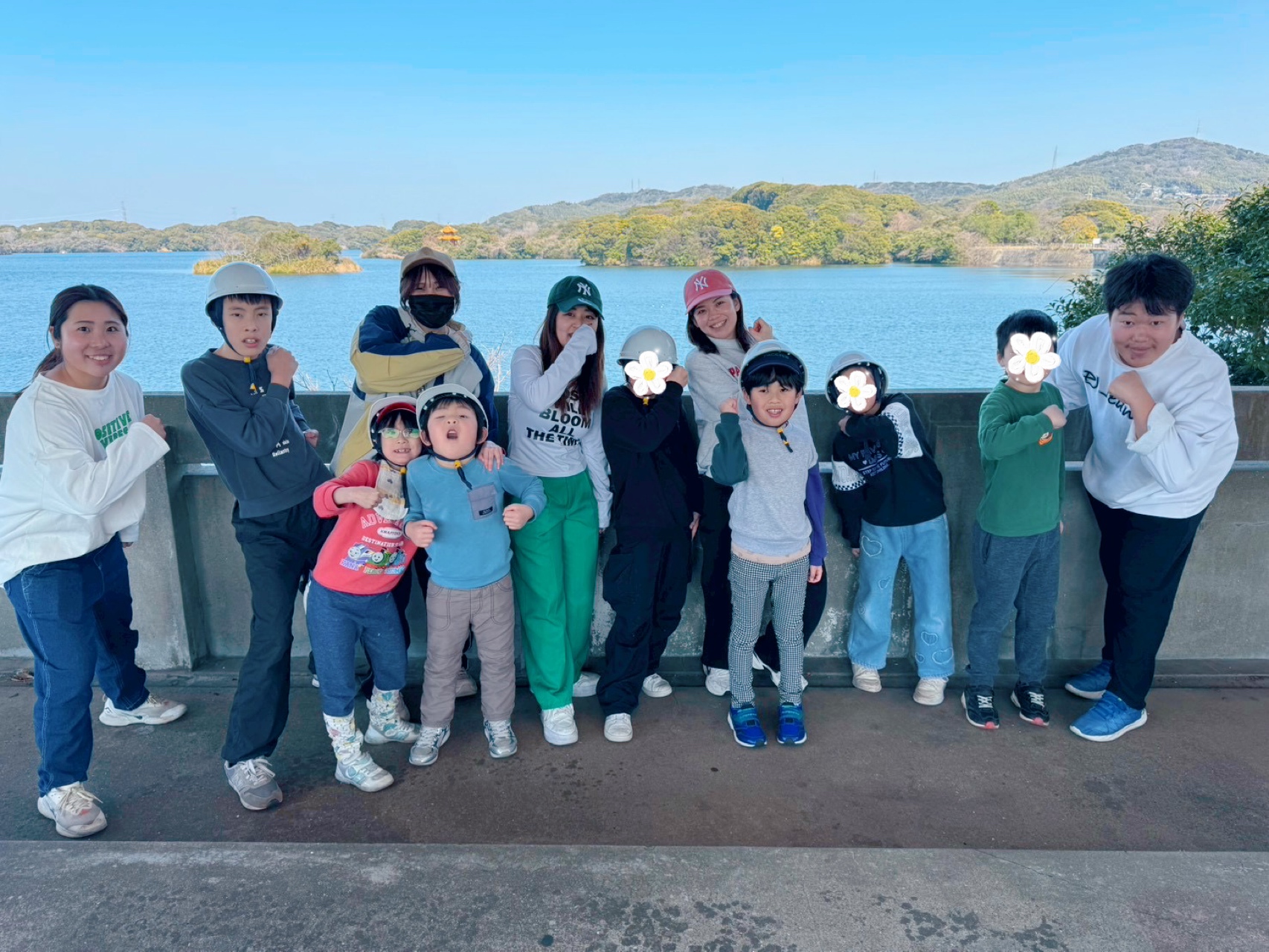 貯水池で集合写真📷