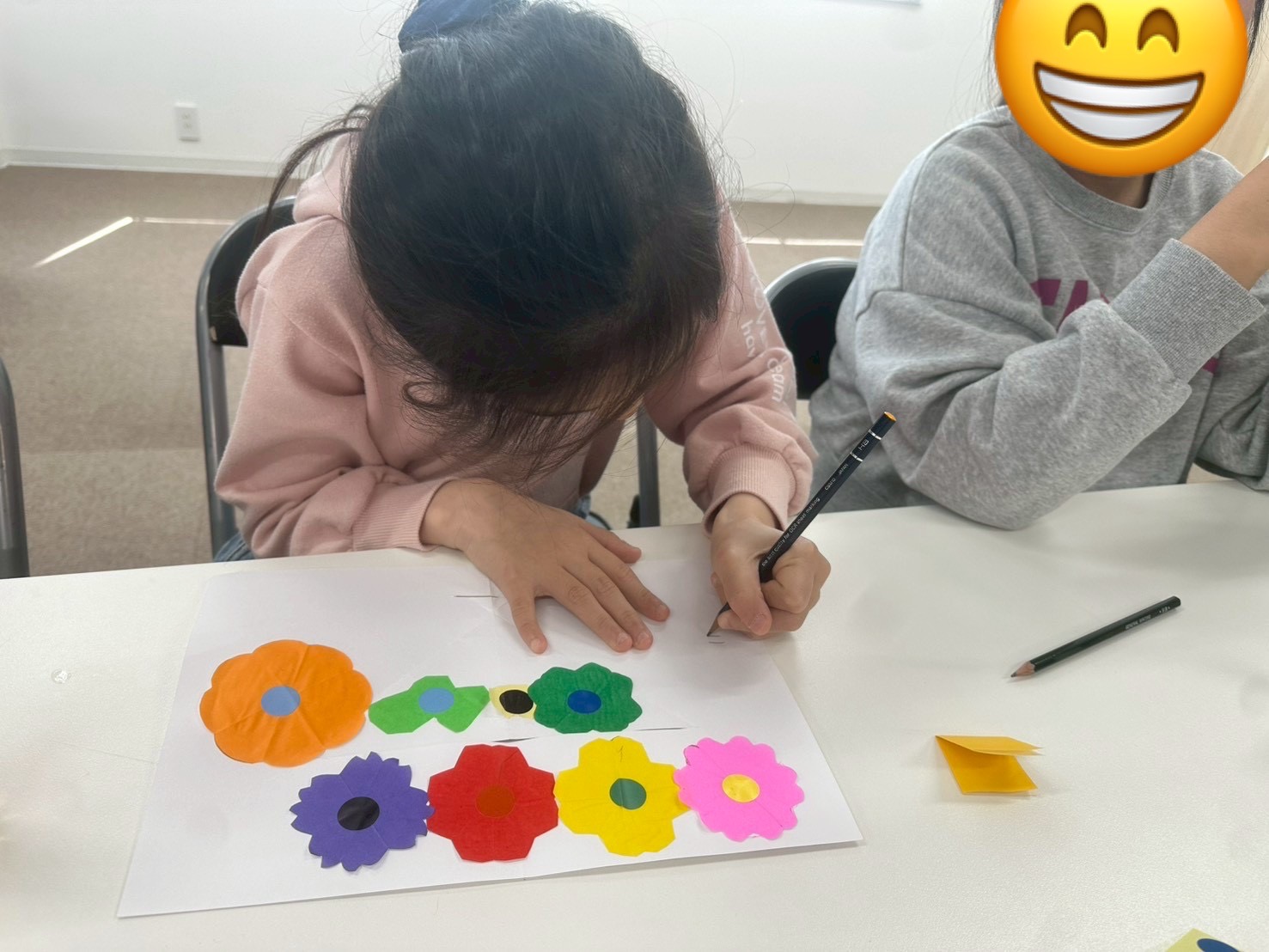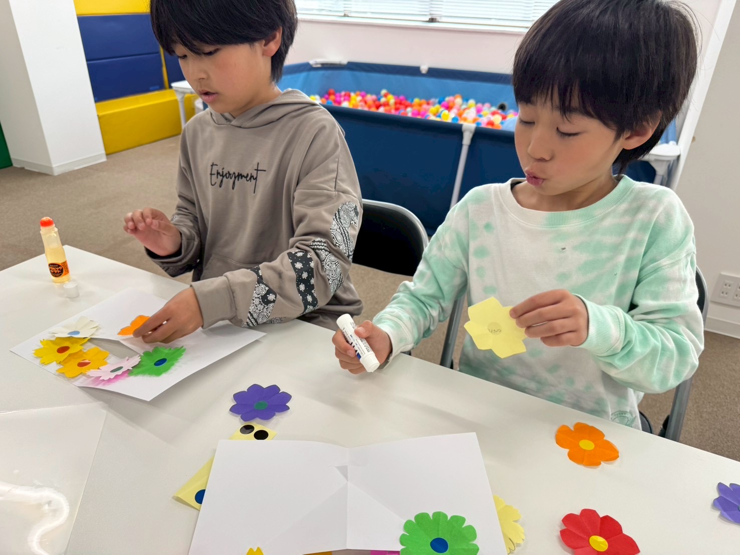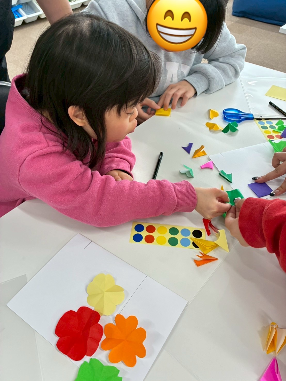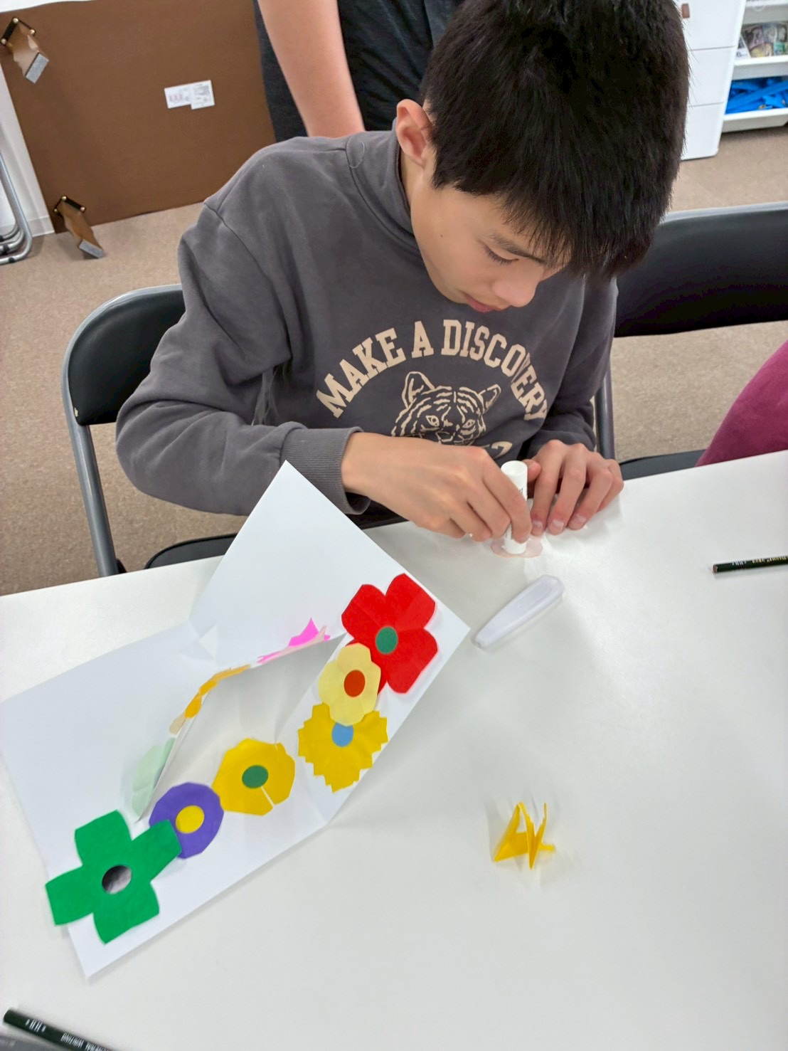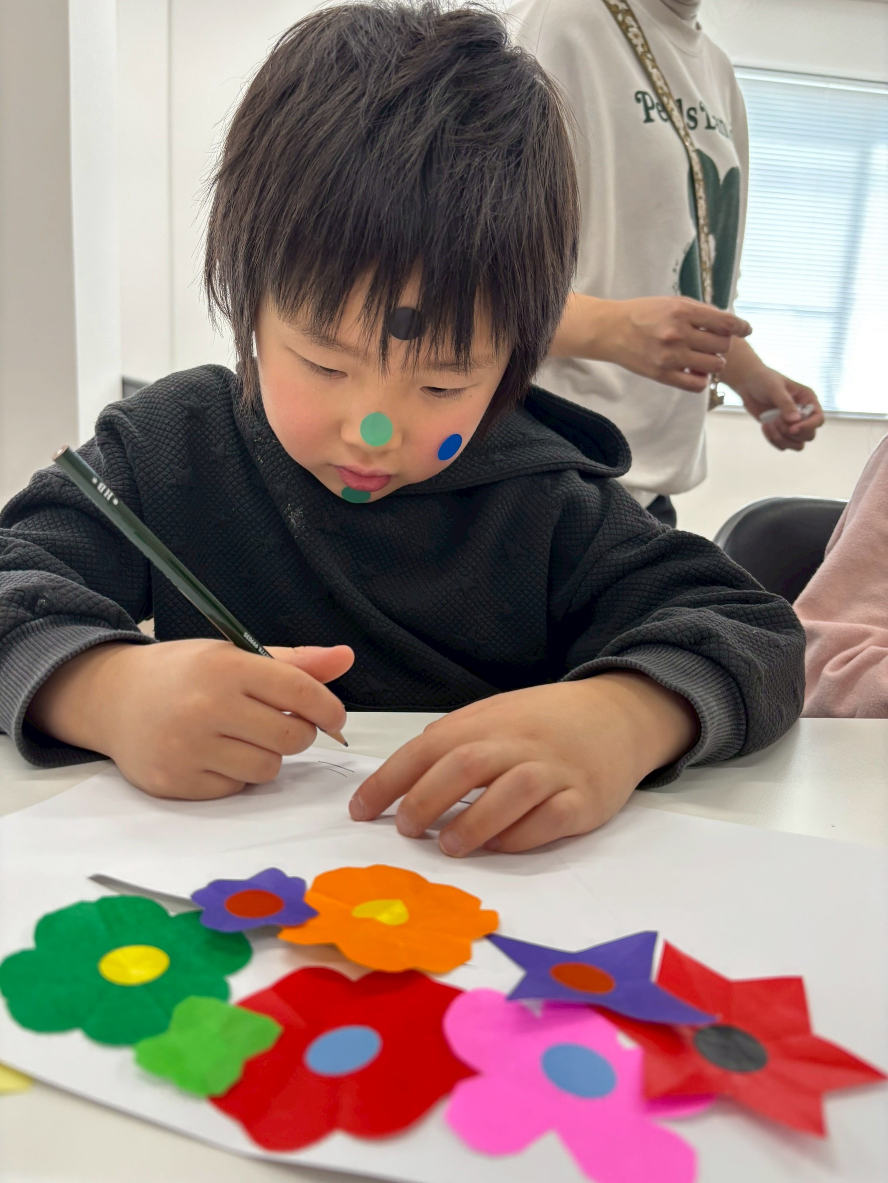 折り紙を切ったりシールを貼ったりして
