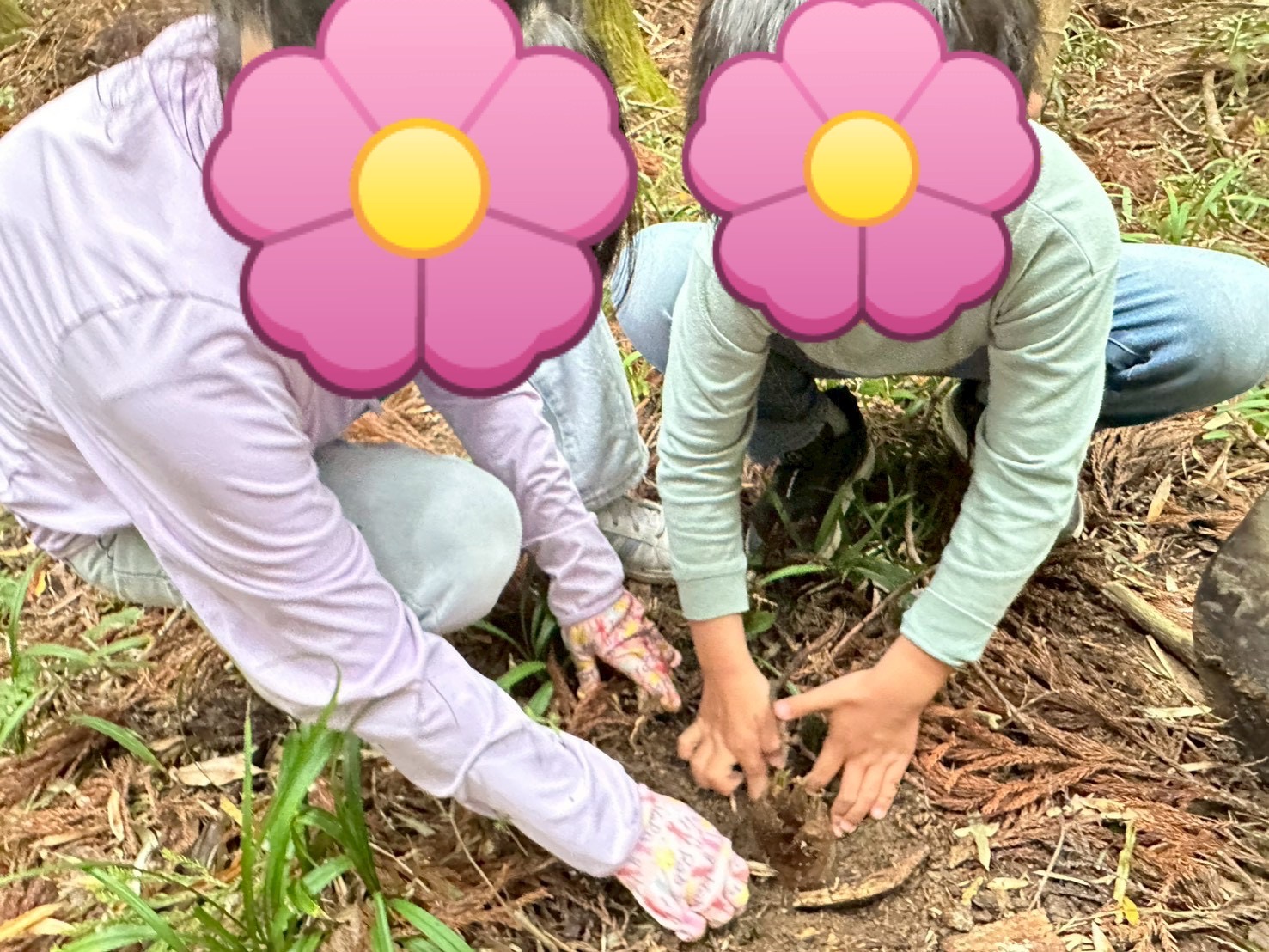 地面をよく観察しながら、「あった!」「ここ少し出てる!」と、小さな変化を見つける子どもたち✨