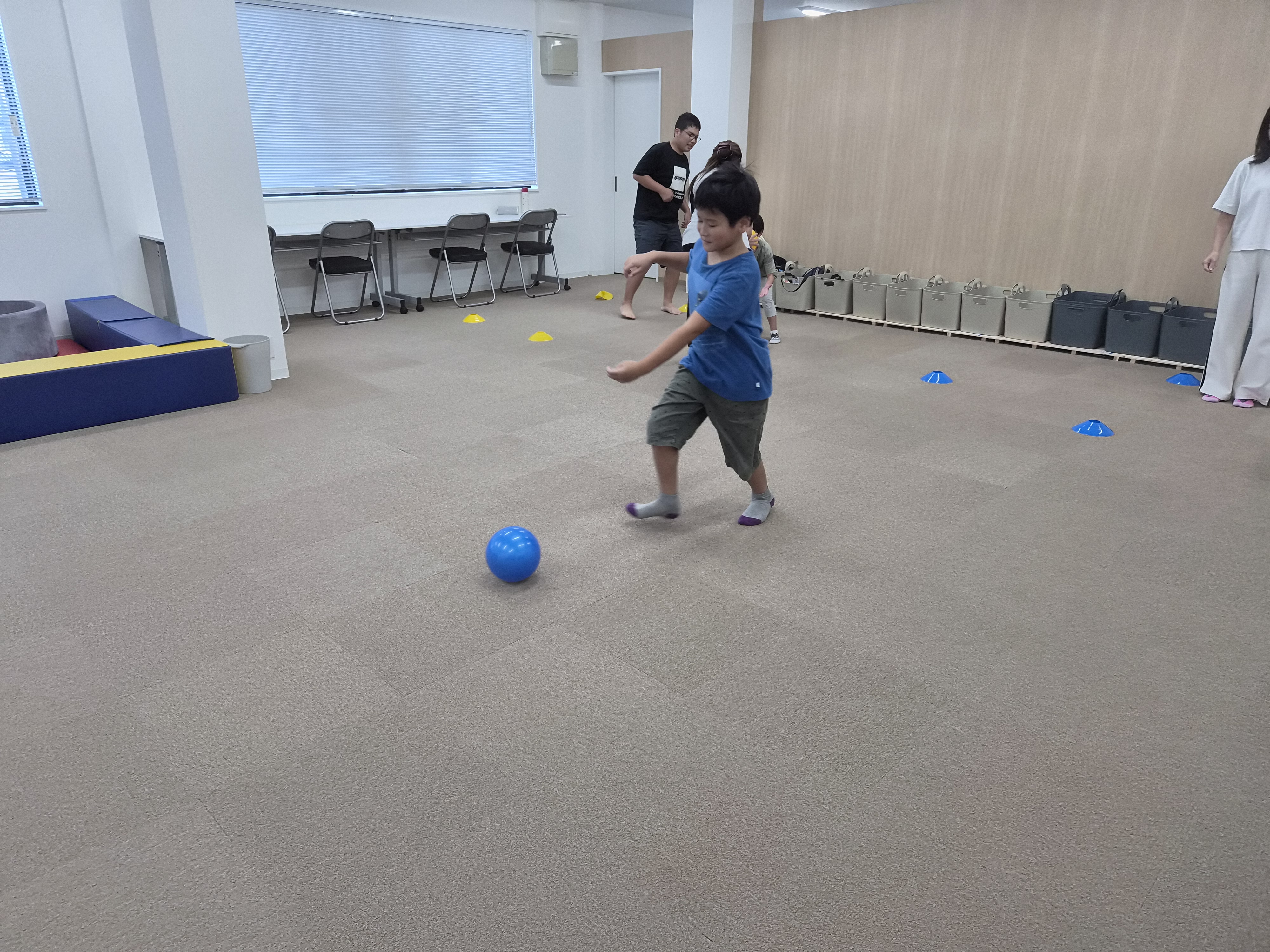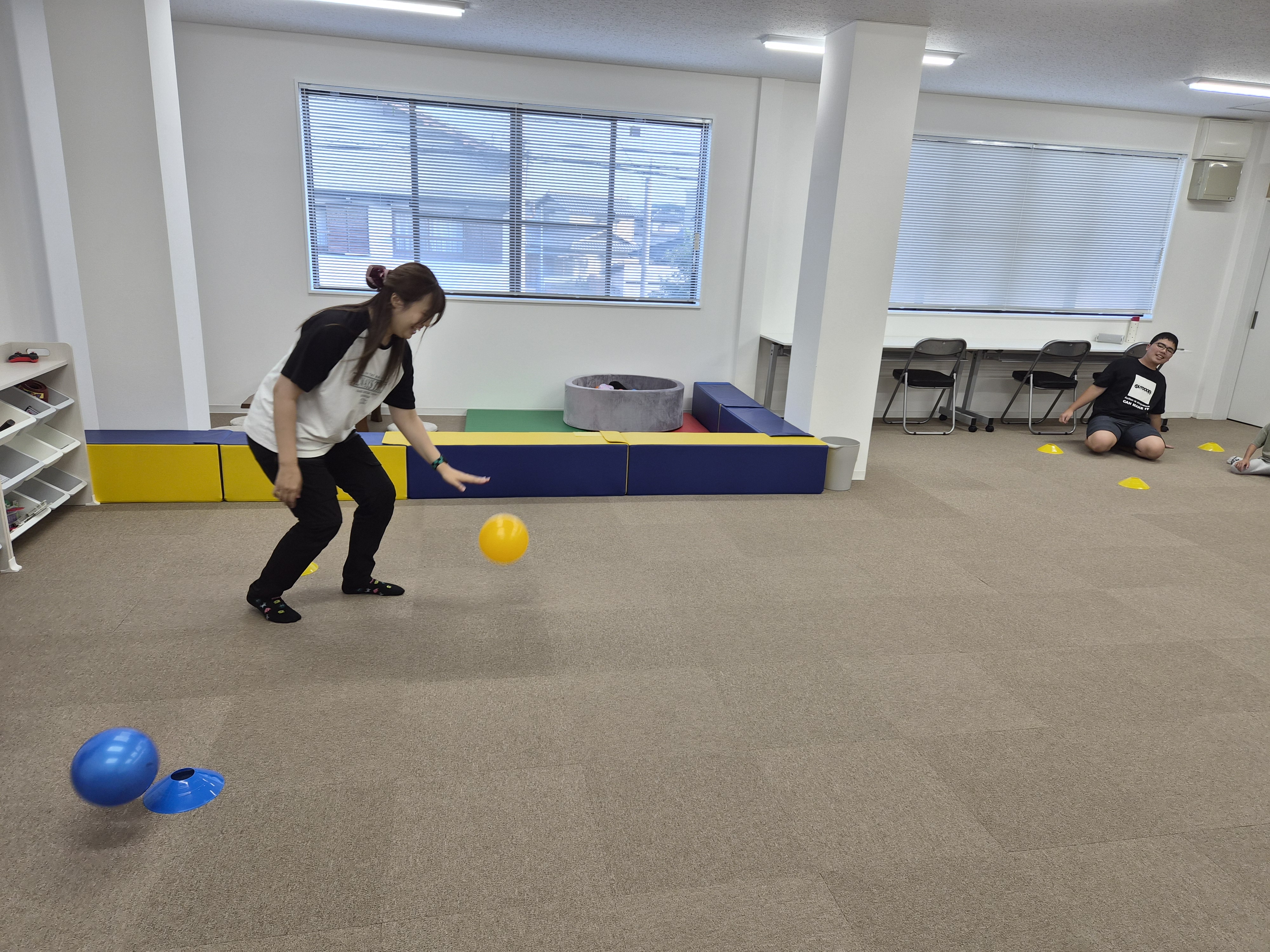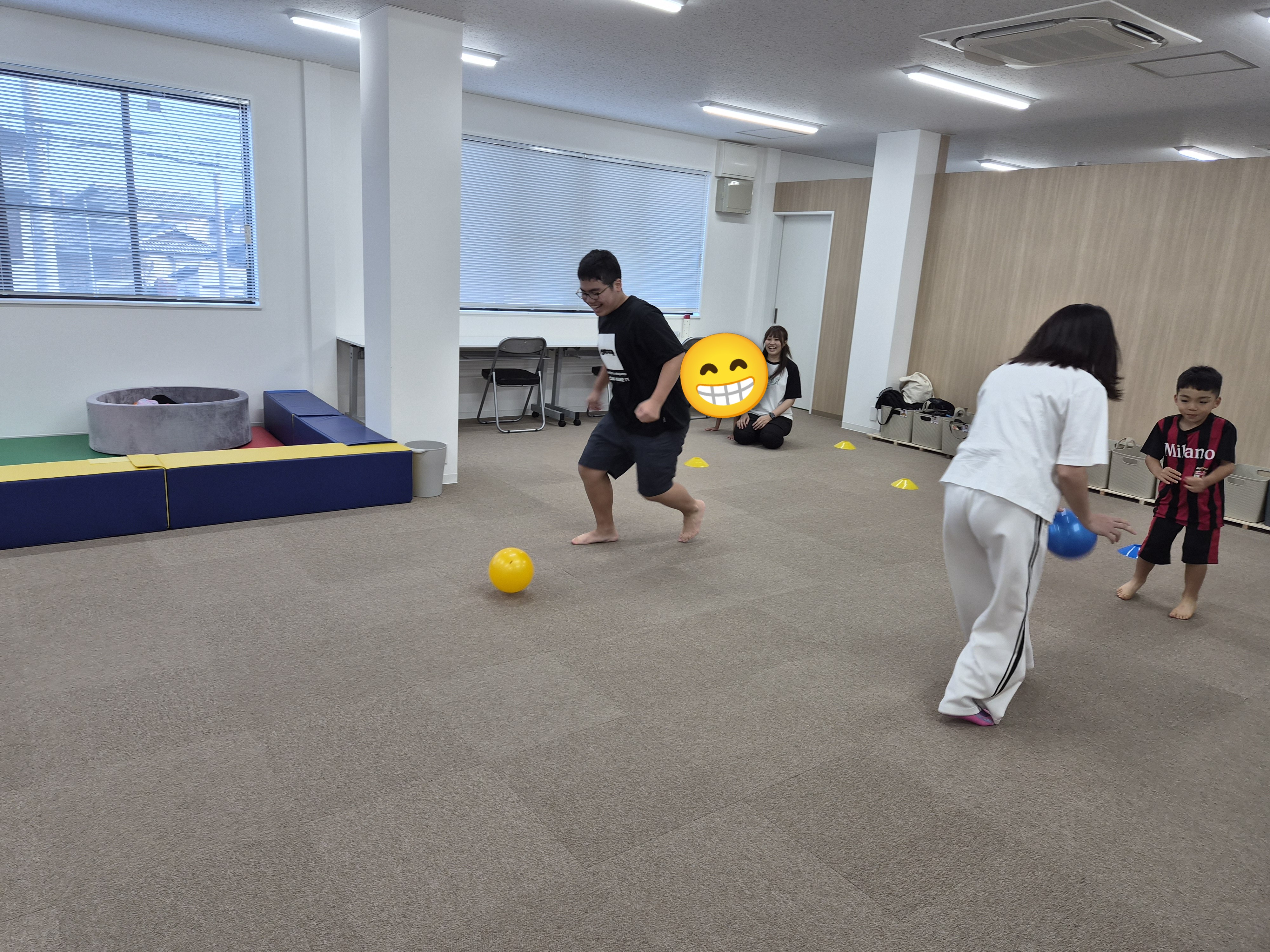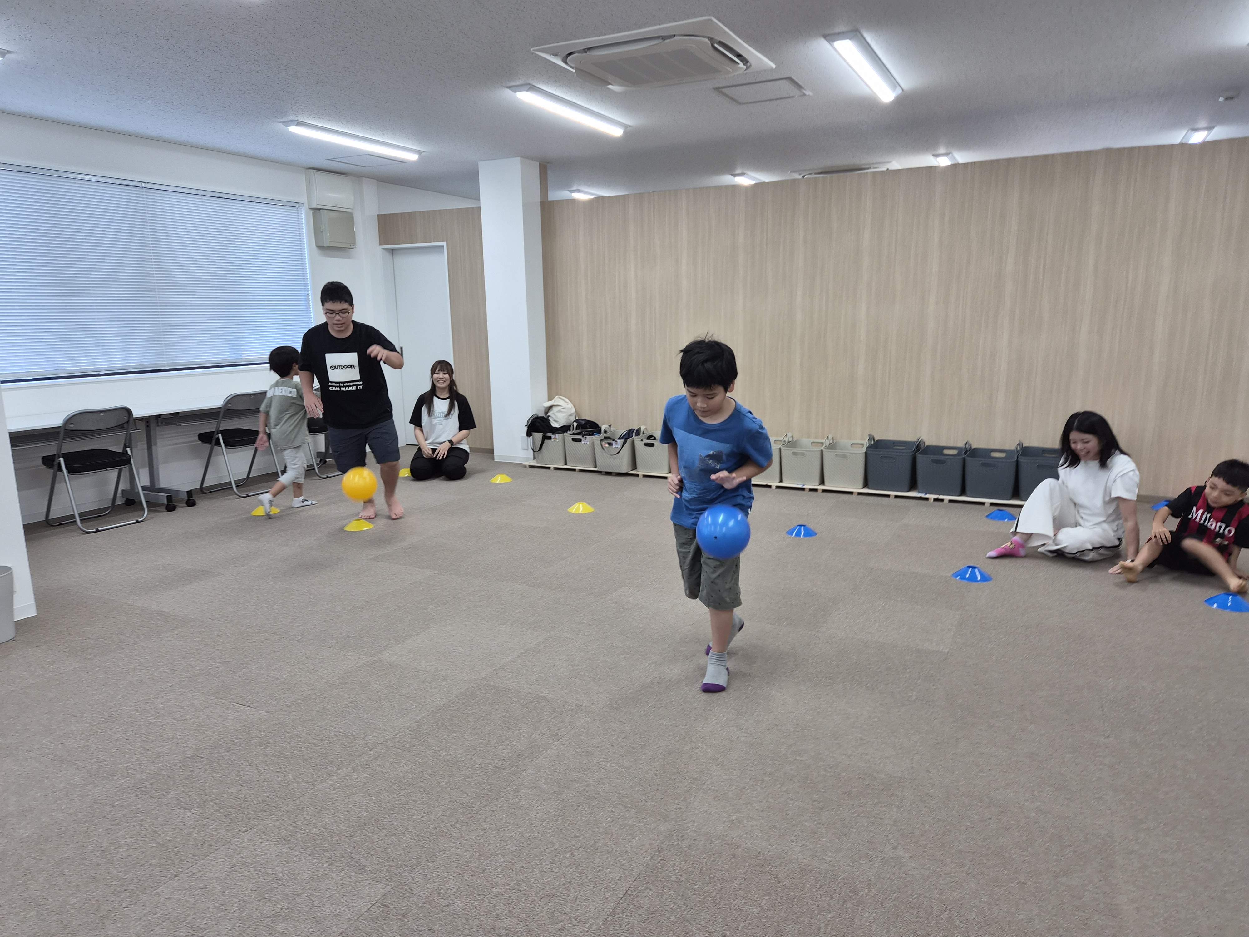 学校組も合流し、運動の活動をみんなで行います👍今回のドリブルリレー…内容は、2チームに分かれます。手でドリブル🏀、足でドリブル⚽️をして、リレー形式にして取り組みました❗