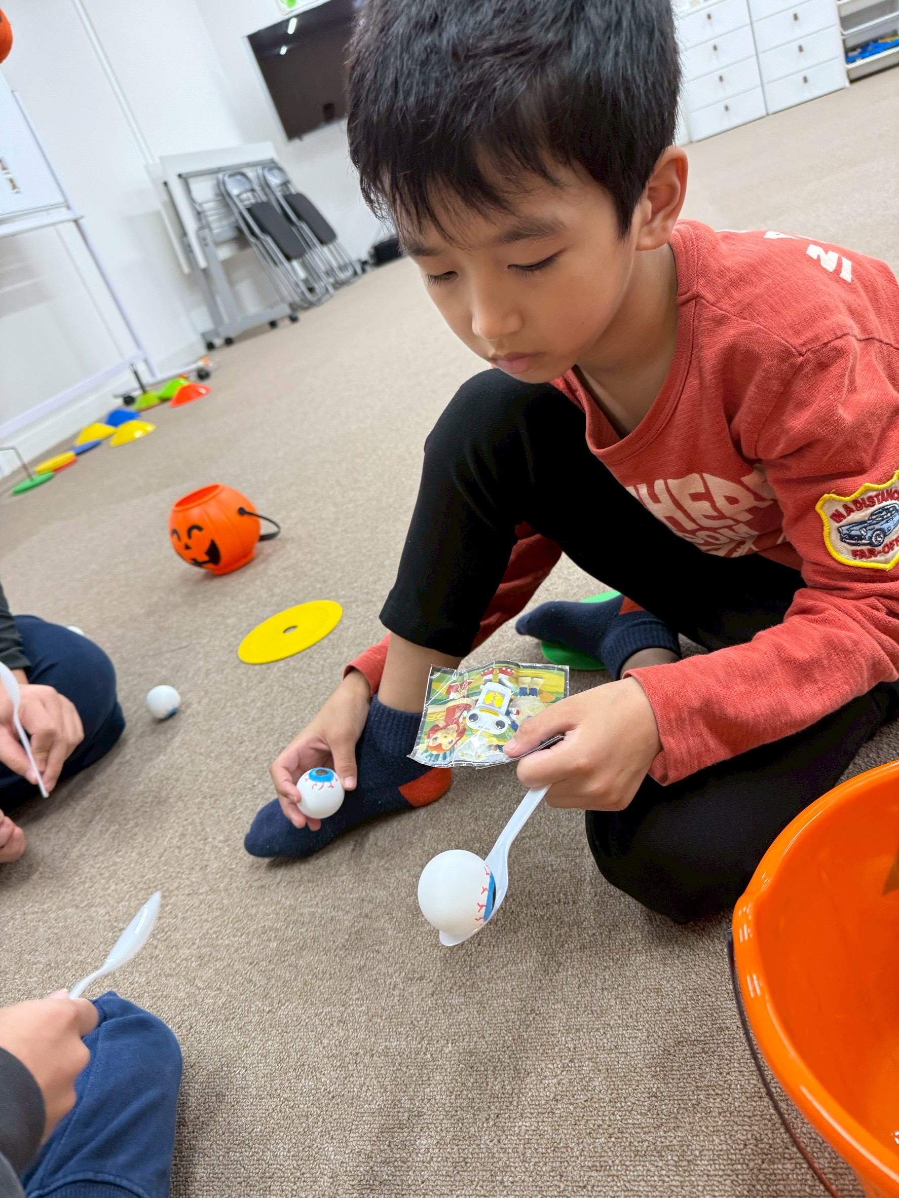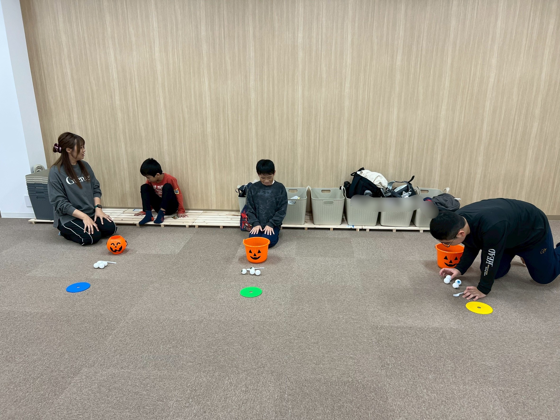 本日はハロウィンという事で「目玉運びレク」を行いました🤗