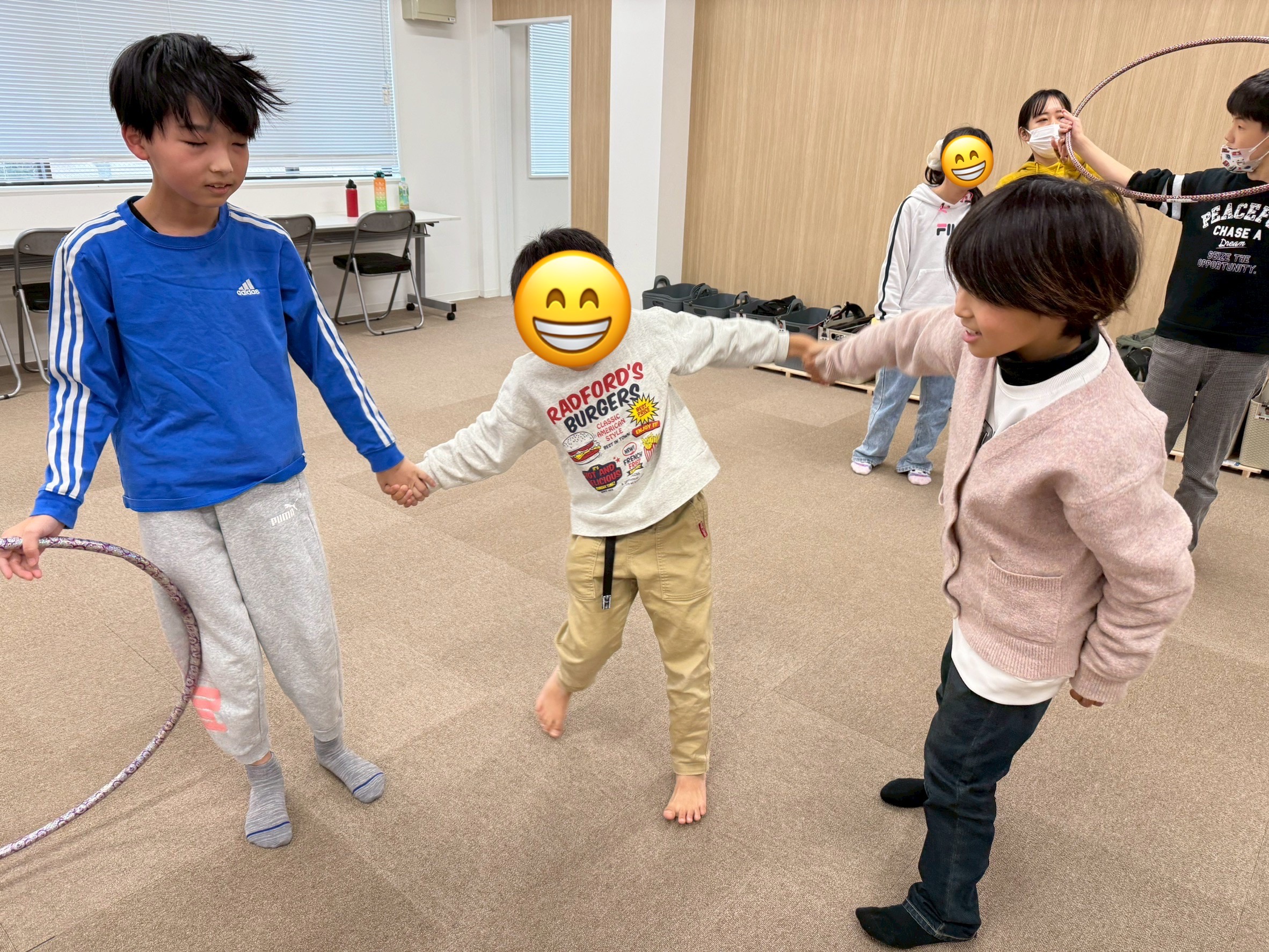 活動後は、そのままフラフープで