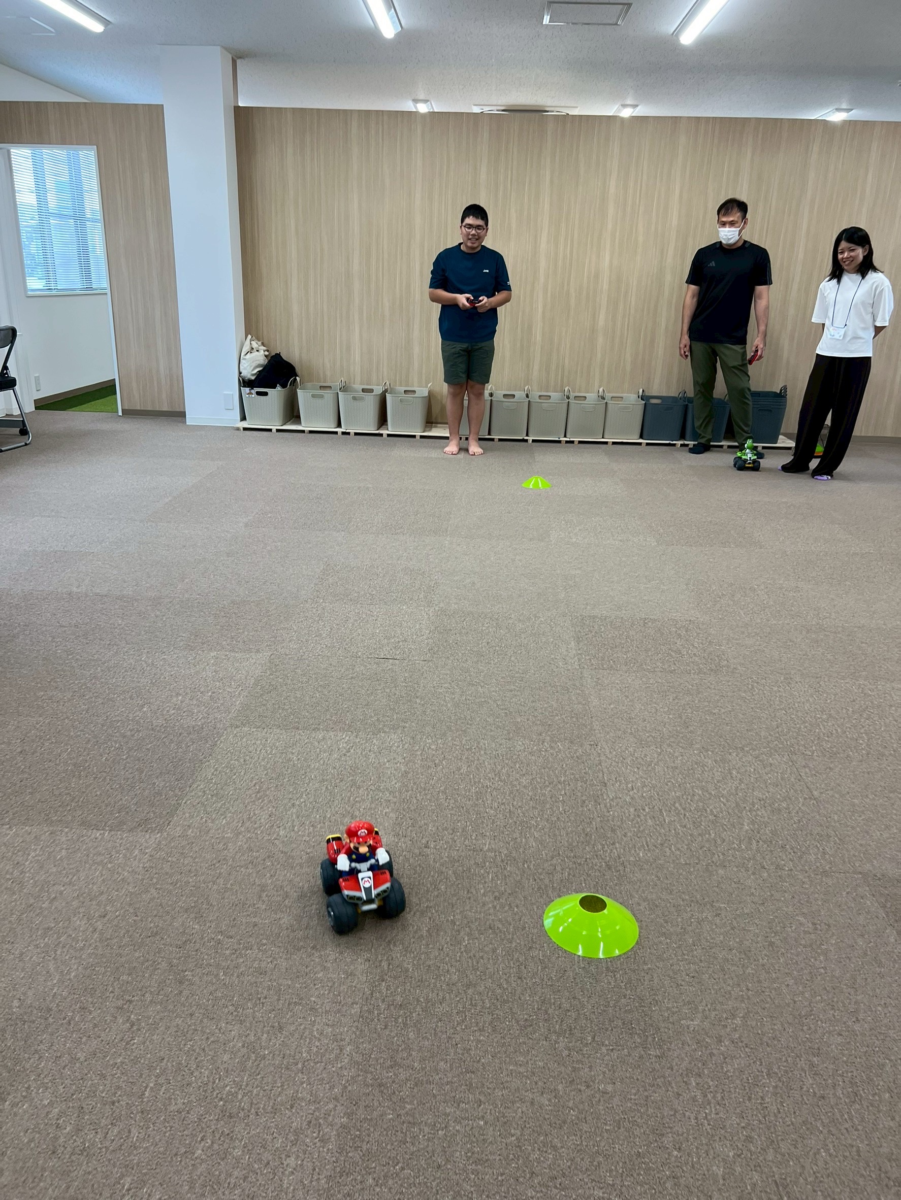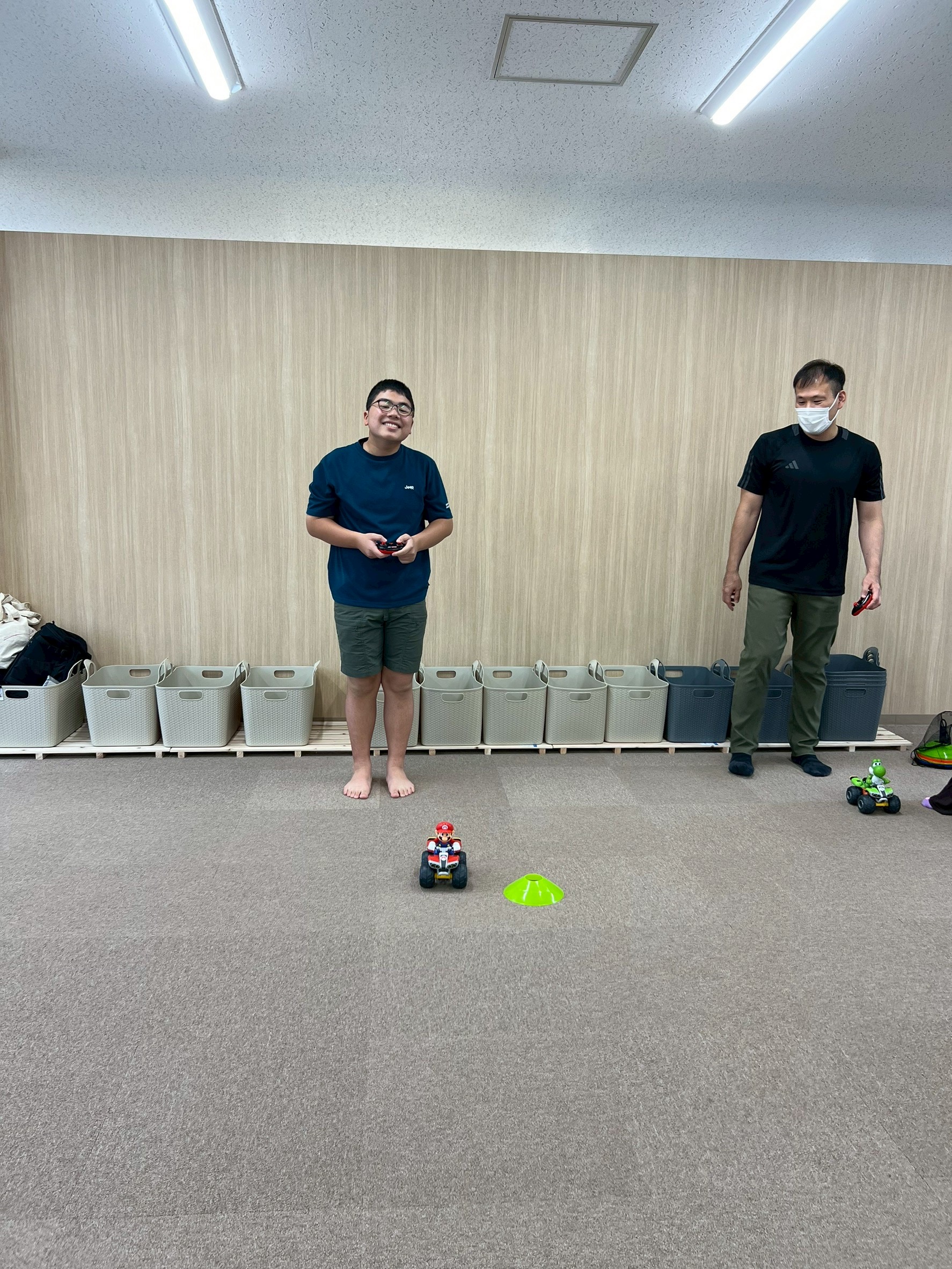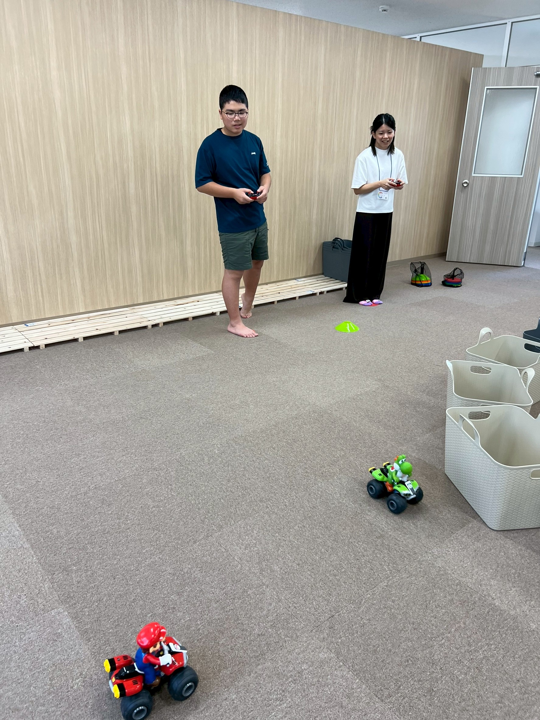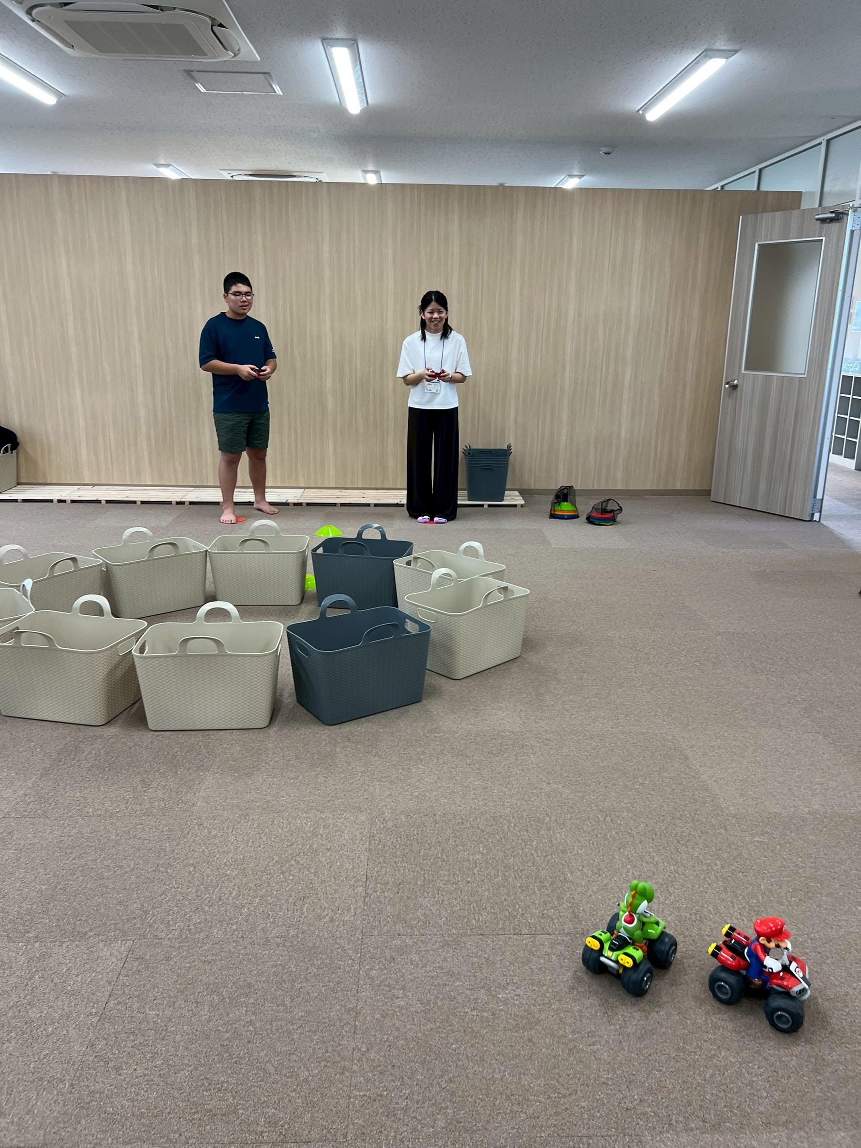 最近事業所に仲間入りしたラジコンカーのマリオ号🔴とヨッシー号🟢でレース対決❗️を行いました😆🎶