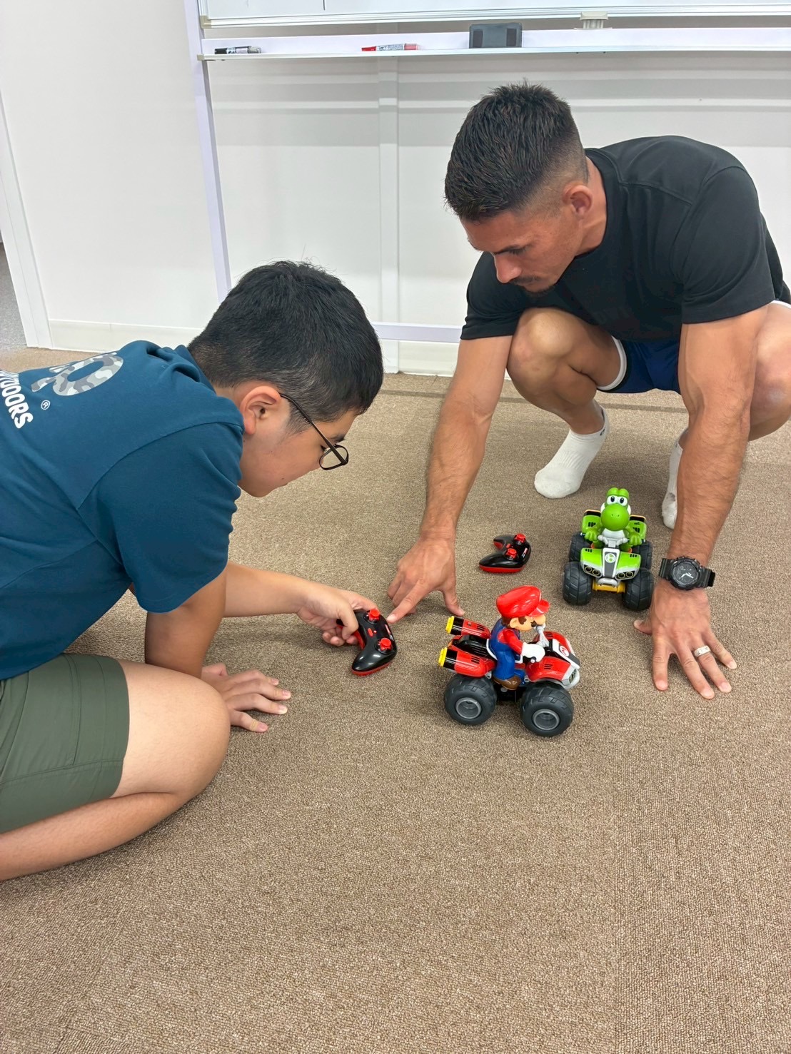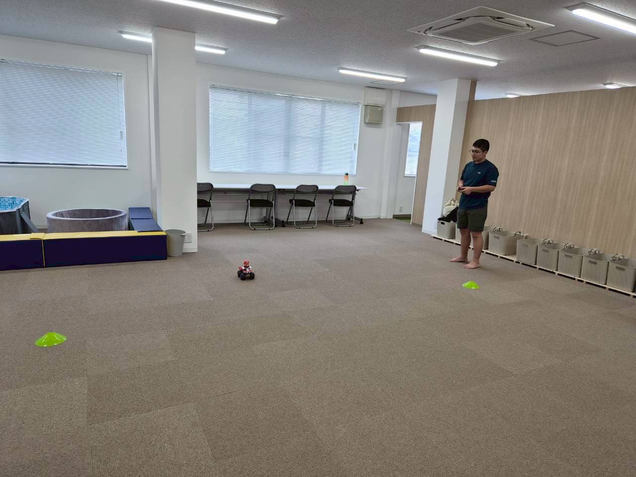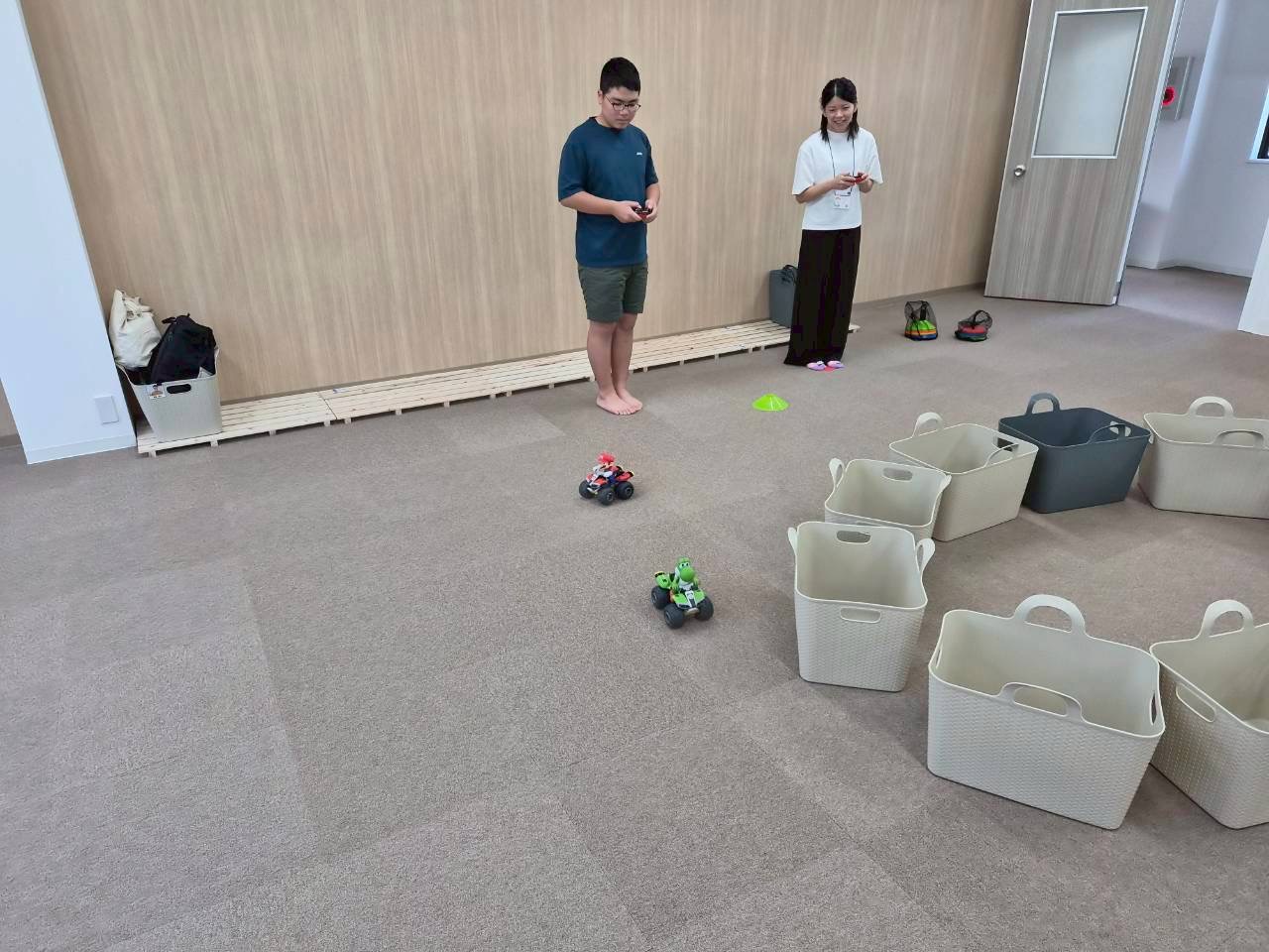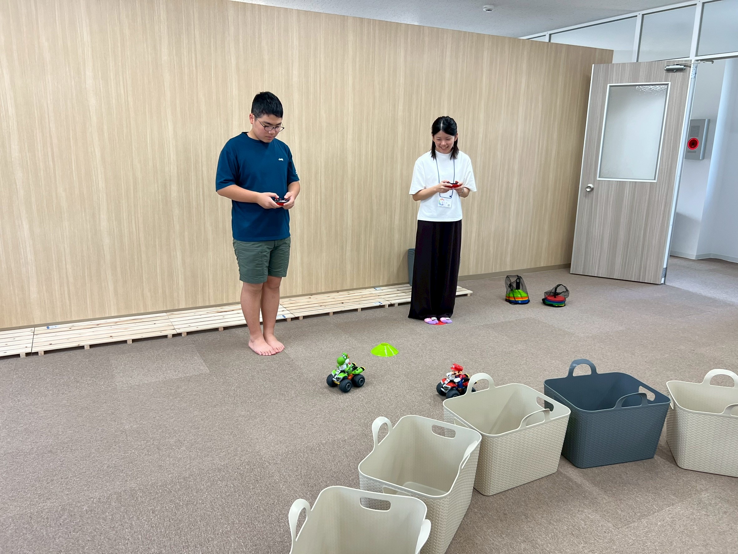 最近事業所に仲間入りしたラジコンカーのマリオ号🔴とヨッシー号🟢でレース対決❗️を行いました😆🎶