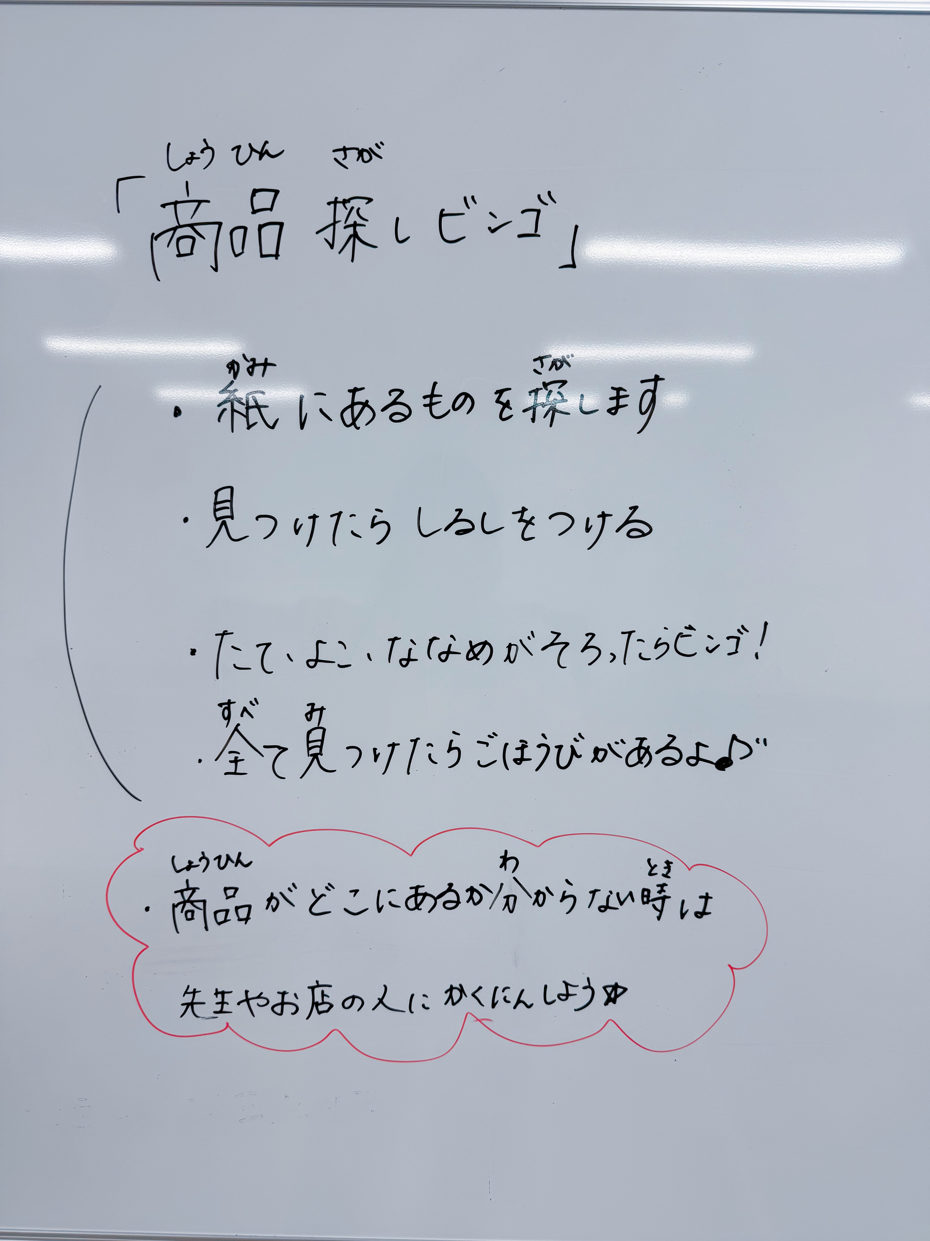 今日はライフスキルトレーニングで「商品探しビンゴ」をしました🍀