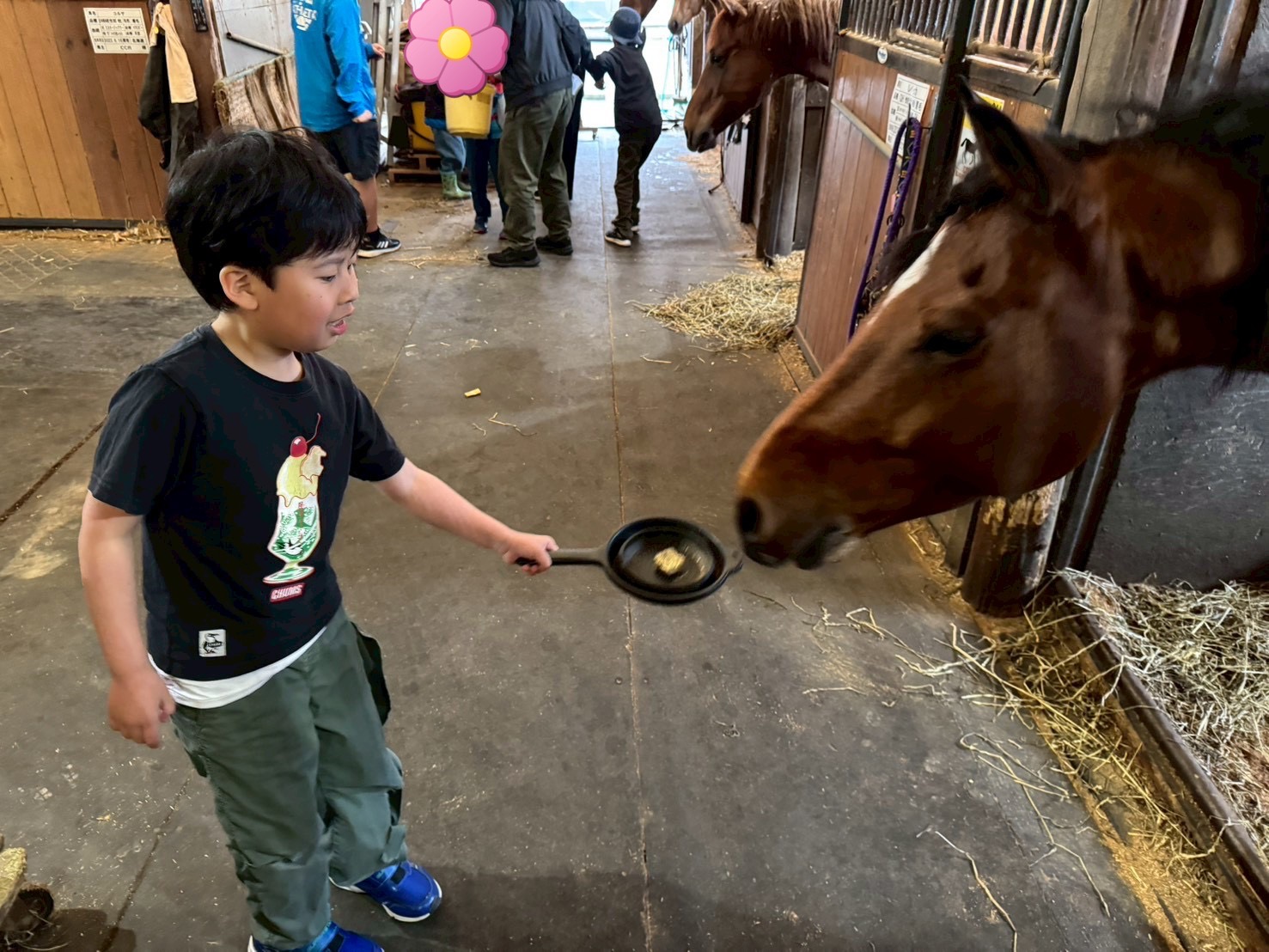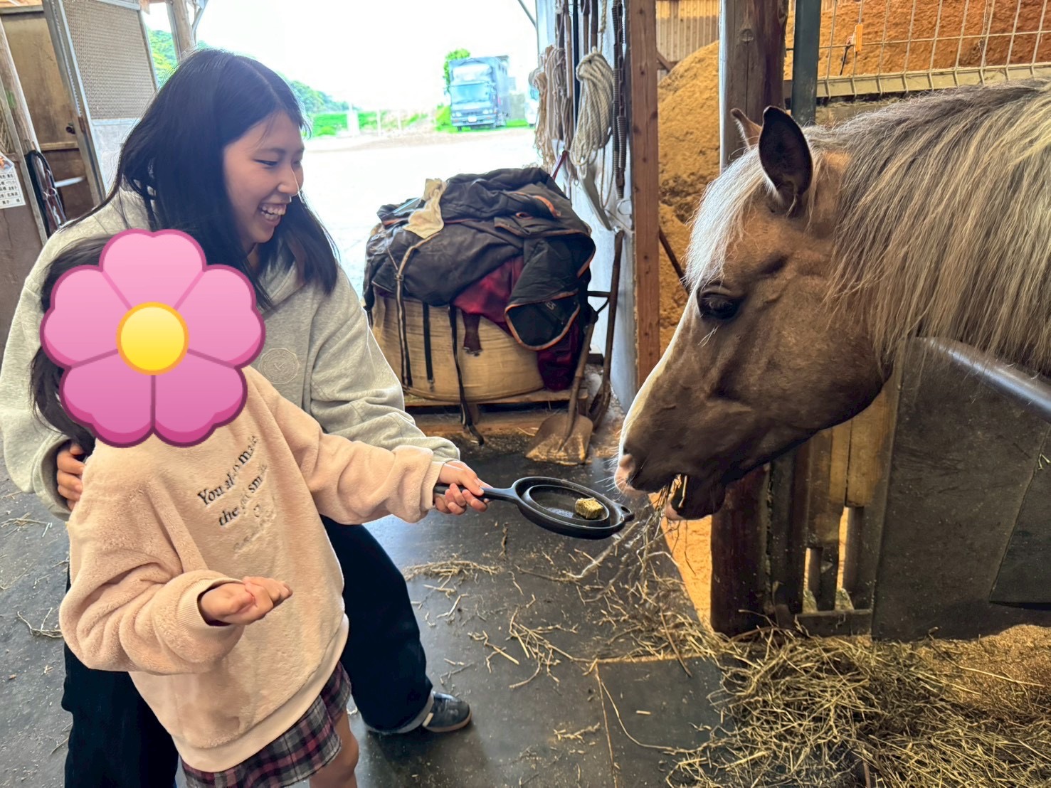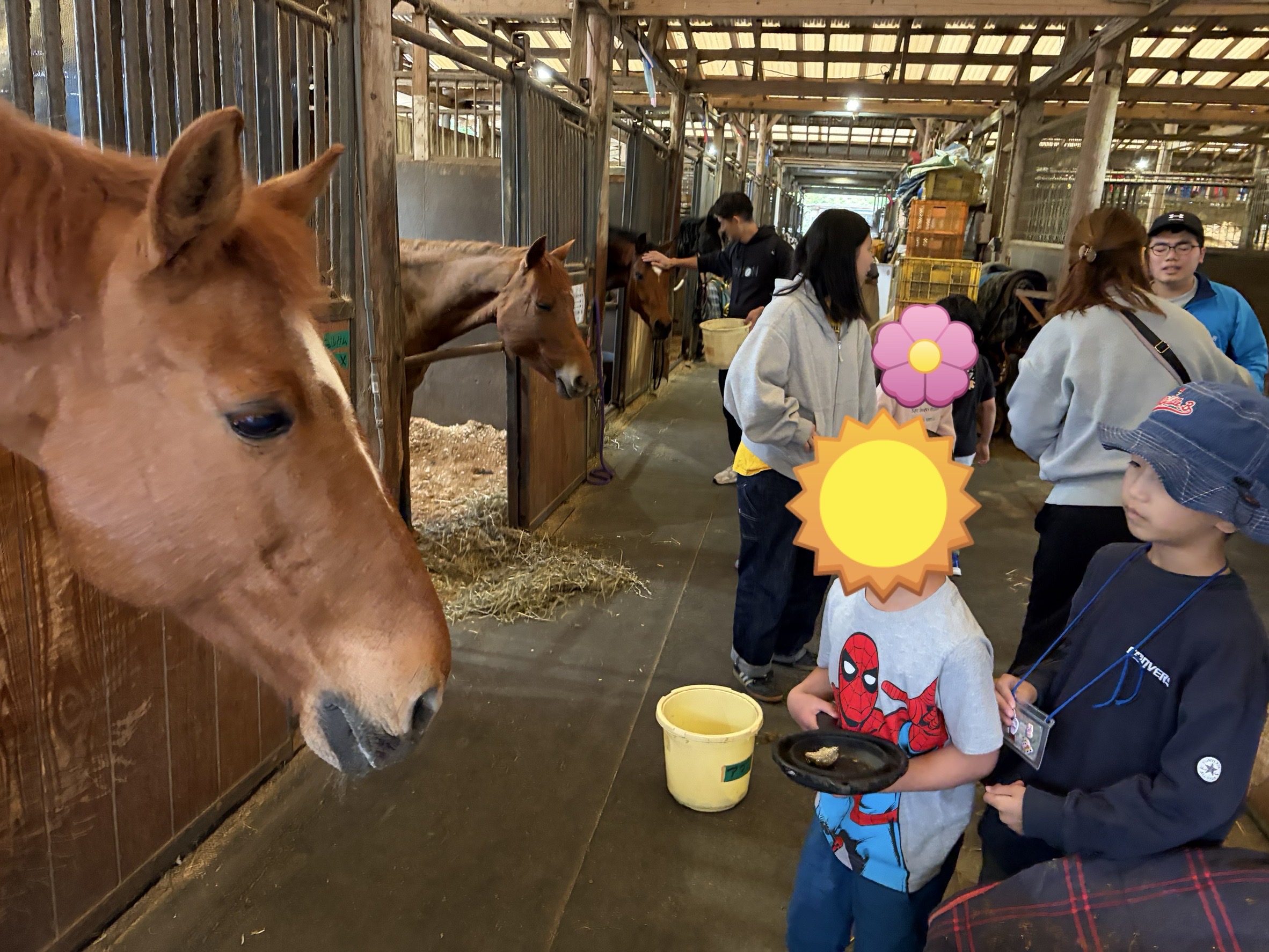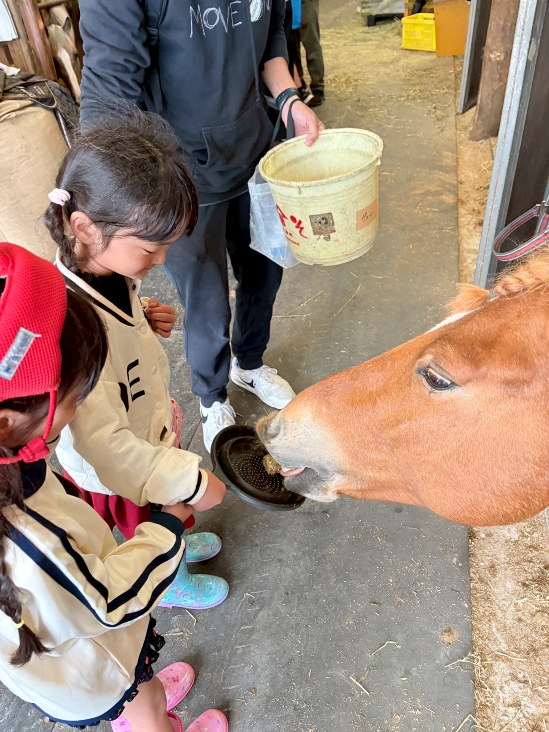 普段なかなか触れ合う機会の少ない“馬”を目の前にして、最初は少し緊張していたり、怖がるような様子も見られましたが、スタッフや施設の方に教えてもらいながら、餌やり体験に挑戦しました🥹