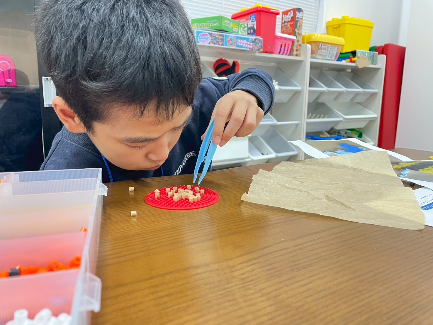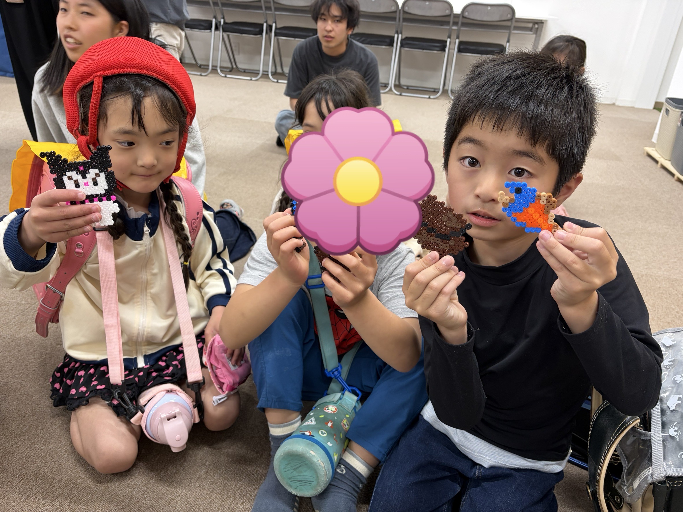 室内で過ごした子どもたちは、アイロンビーズやチャンバラ遊びなど、それぞれ好きな遊びや活動に集中して取り組み、落ち着いた時間を過ごしました🌈