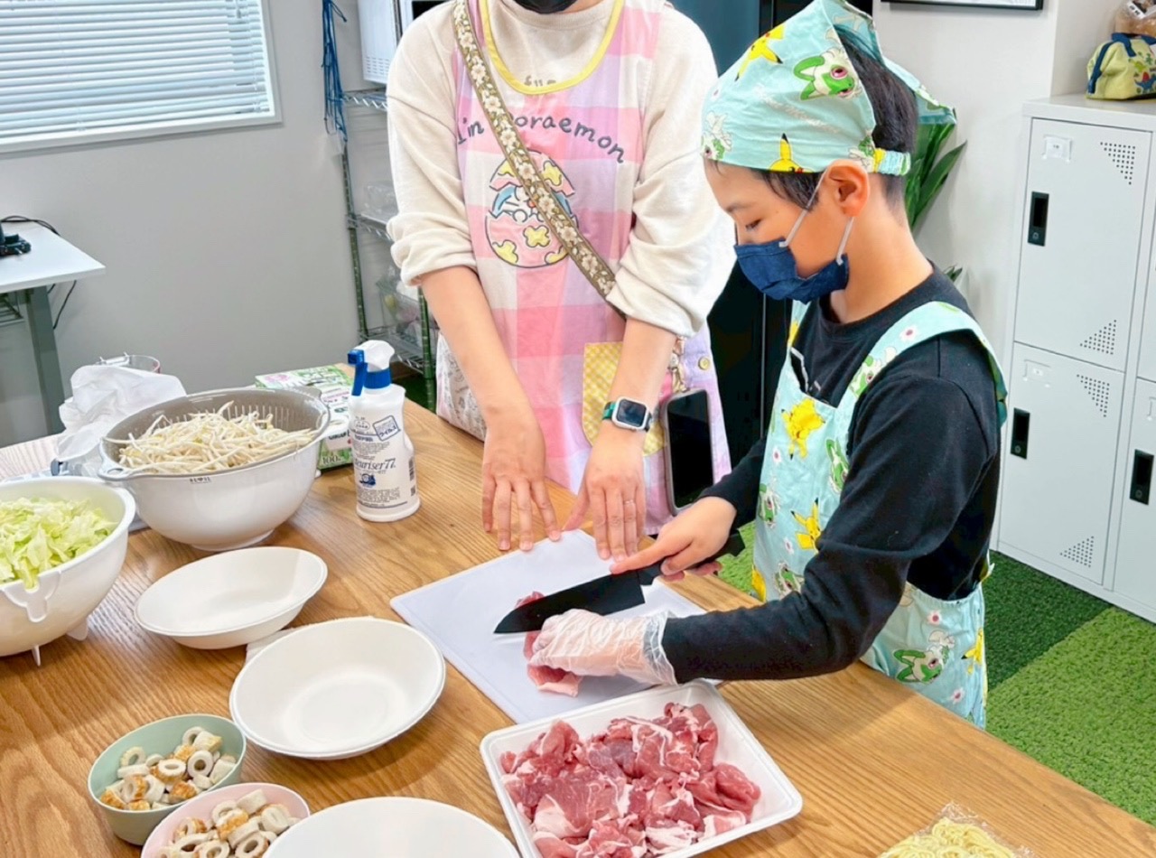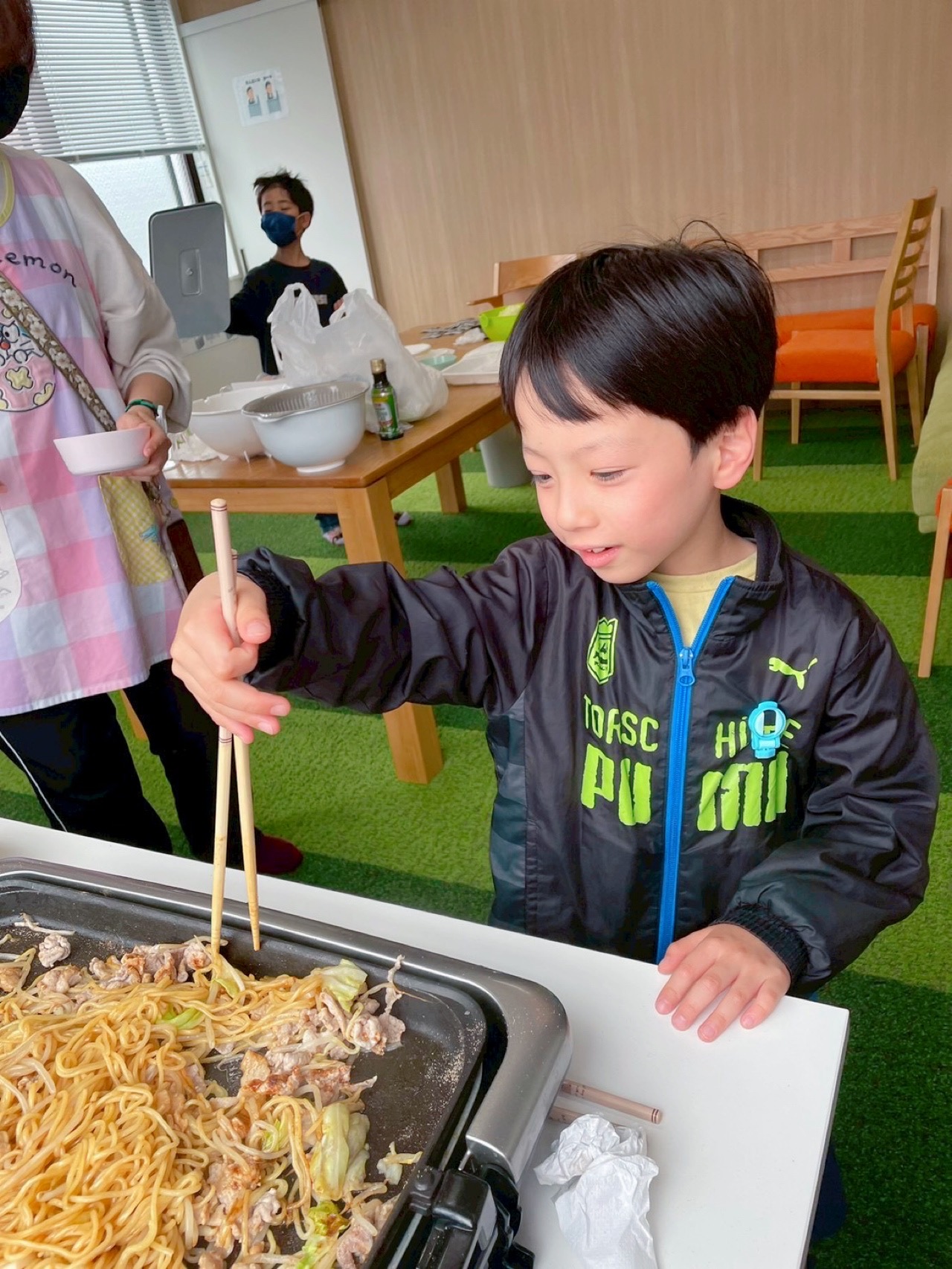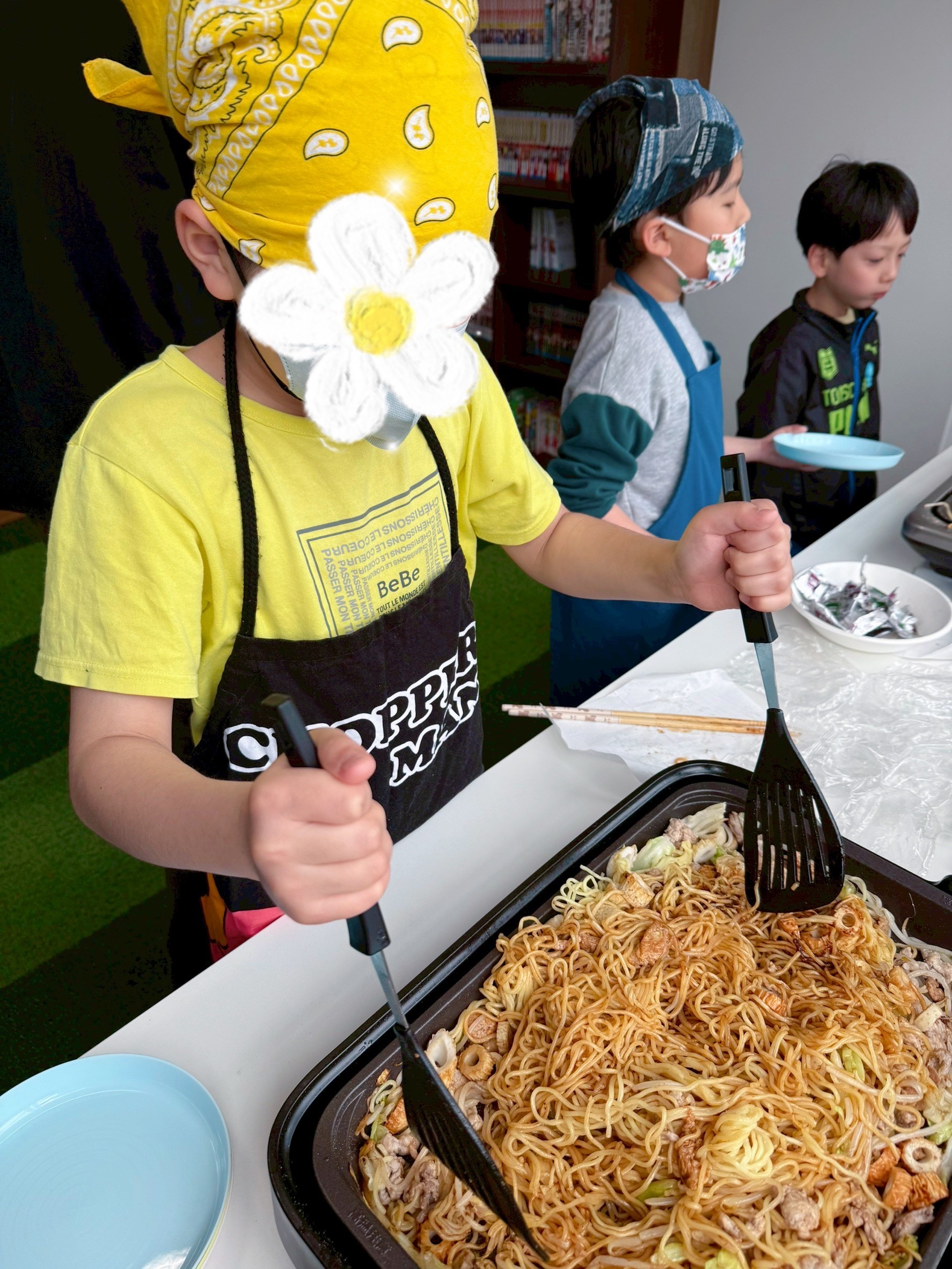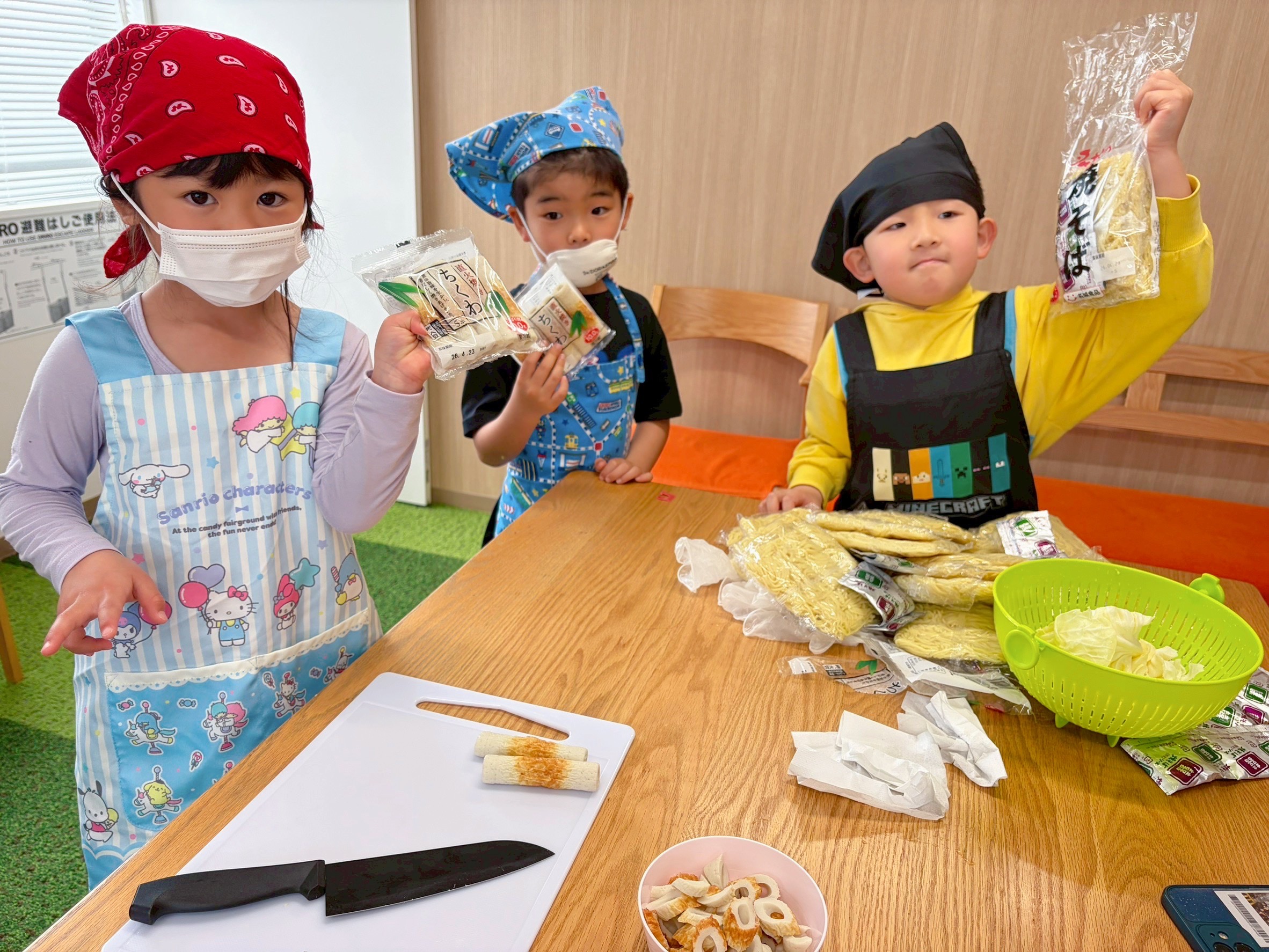 今日はクッキングの日で、みんなで焼きそばを作りました😆