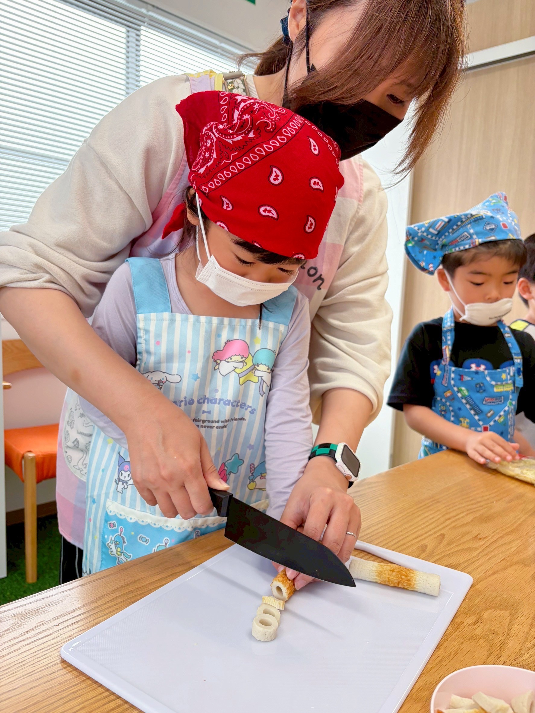 「小さすぎないかな?」「みんなが食べやすい大きさかな?」とひとつひとつ丁寧に確認しながら取り組んでいた姿が印象的でした💖