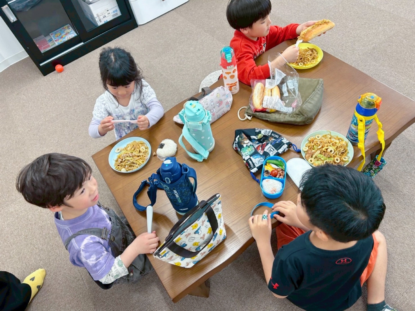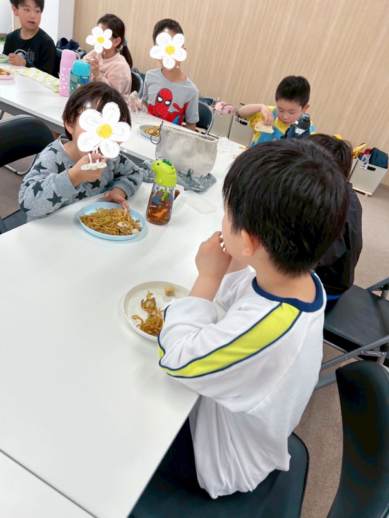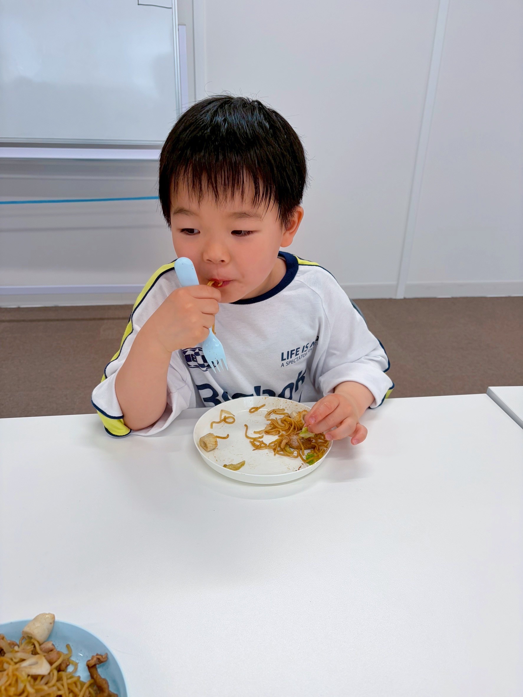 普段あまり食べないお友達がおかわりをしていたり、「この具材切ったの僕だよ!」とみんなで頑張ったところを伝え合いながら楽しく食事が出来ました🥳