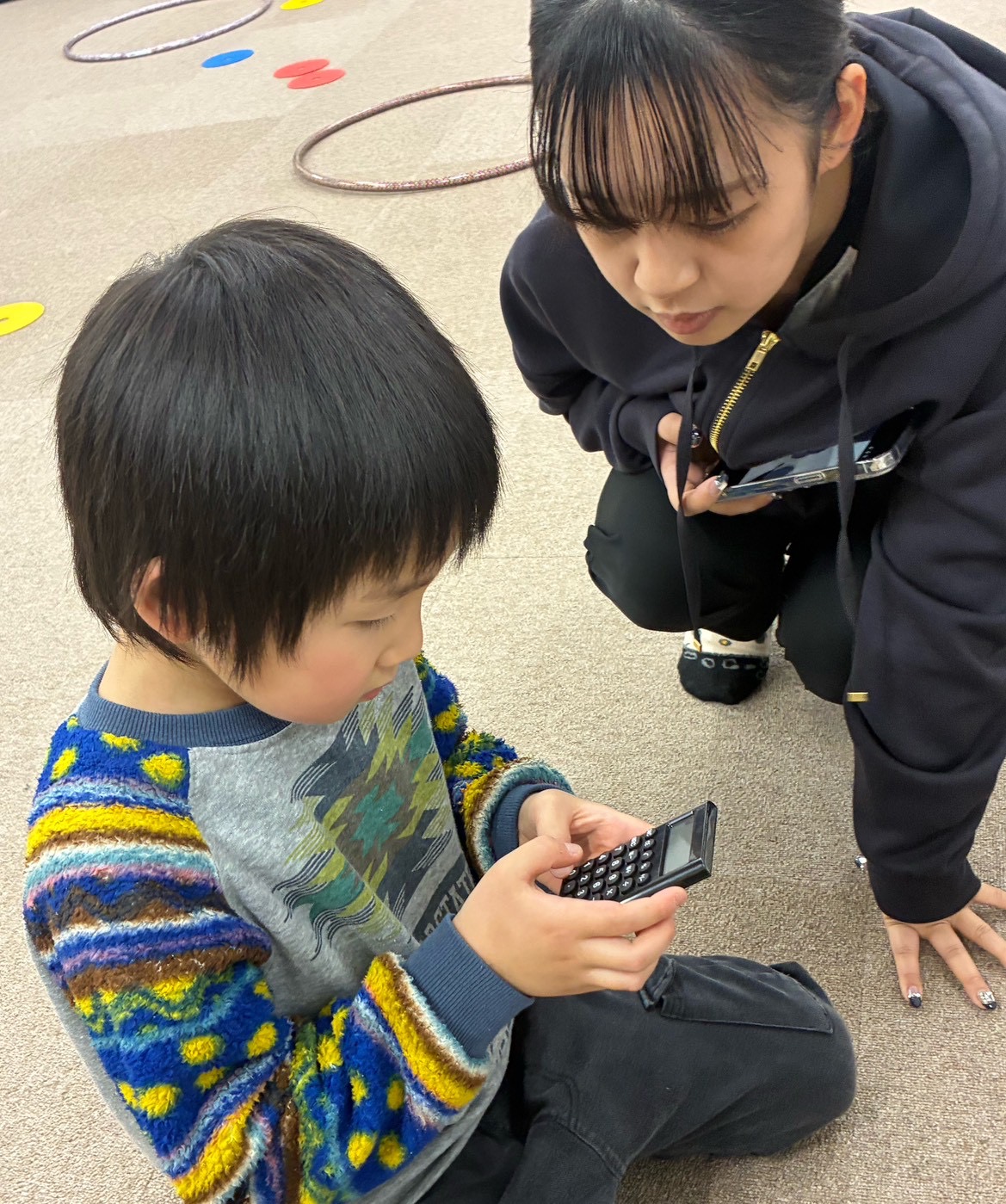 各チーム2名ずつ“計算係”を任命し、電卓を使って合計点を計算🔢
