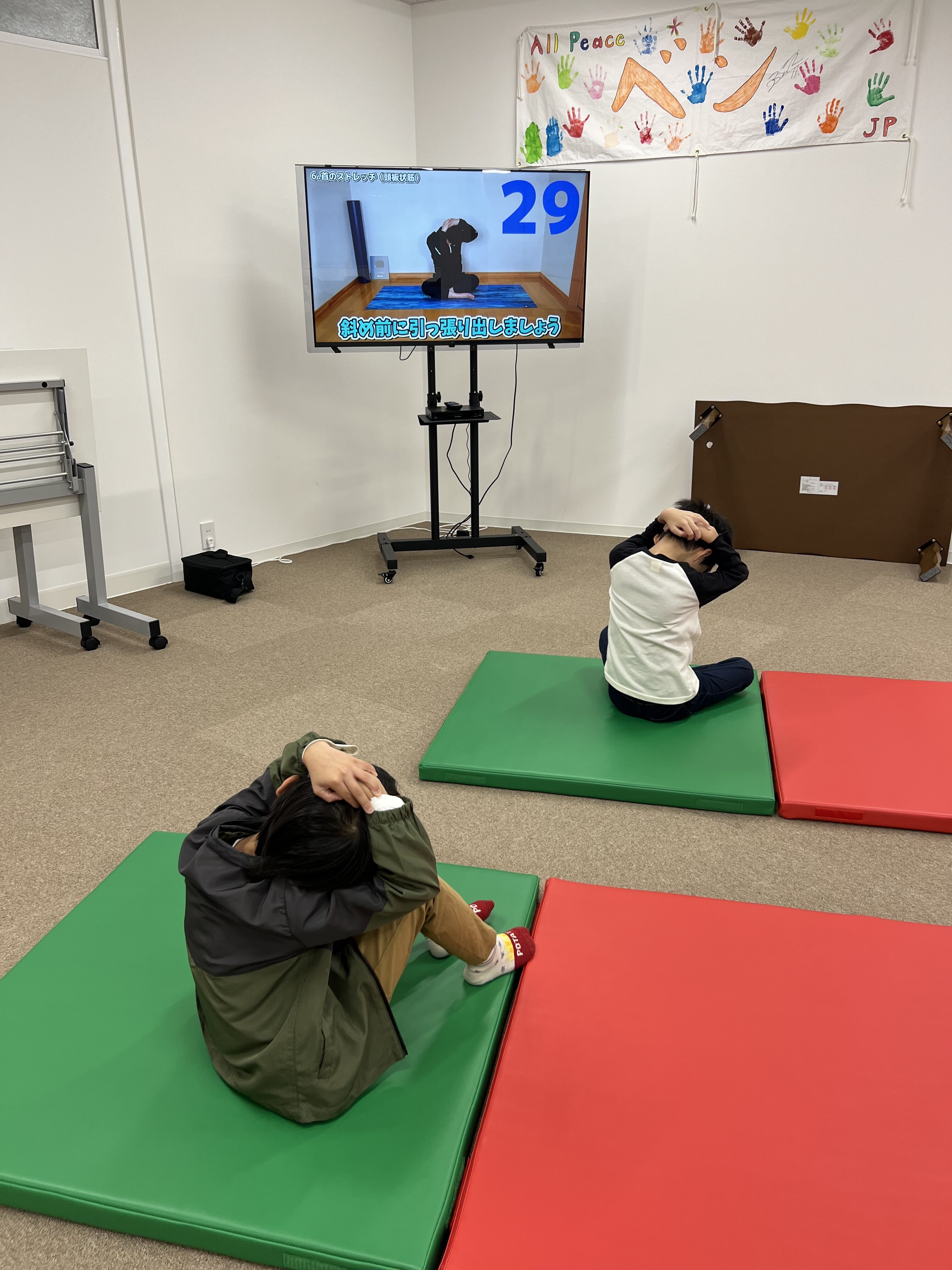 解説動画を見ながら実際にストレッチを行い、やり方を真似て行きます👇👇👇