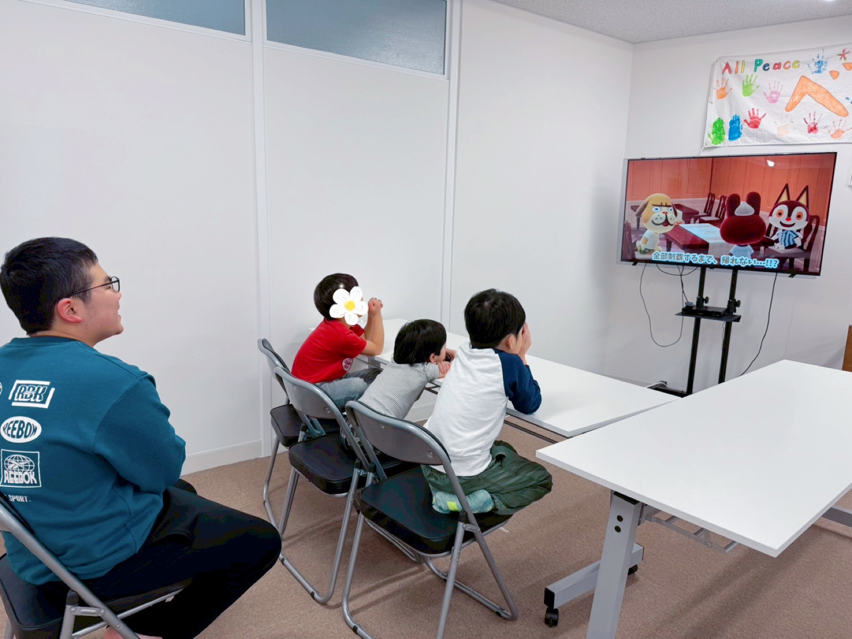 オールピースでの療育活動に初めて参加するお友達も多くいたので、まずは挨拶の説明から😌
