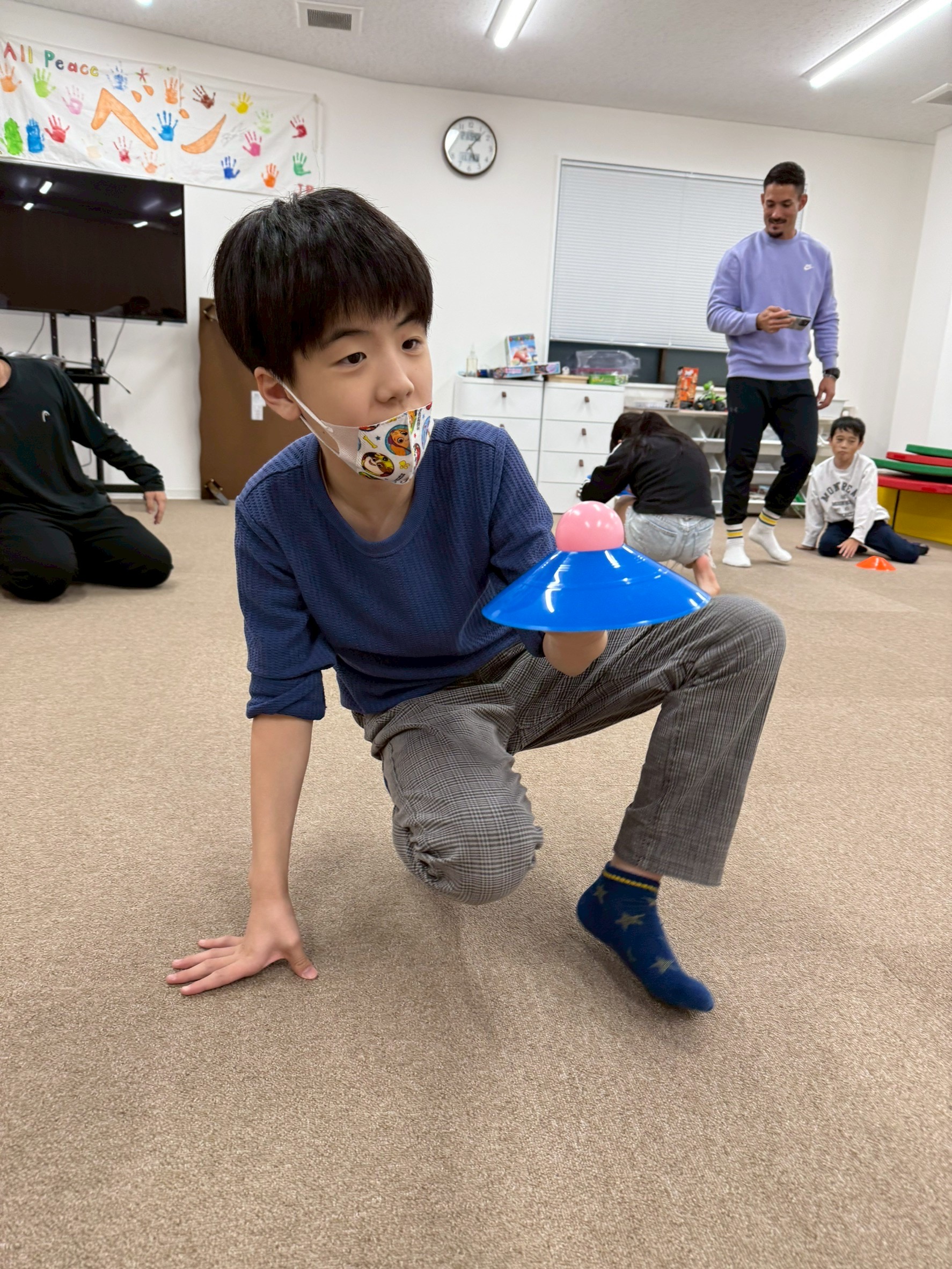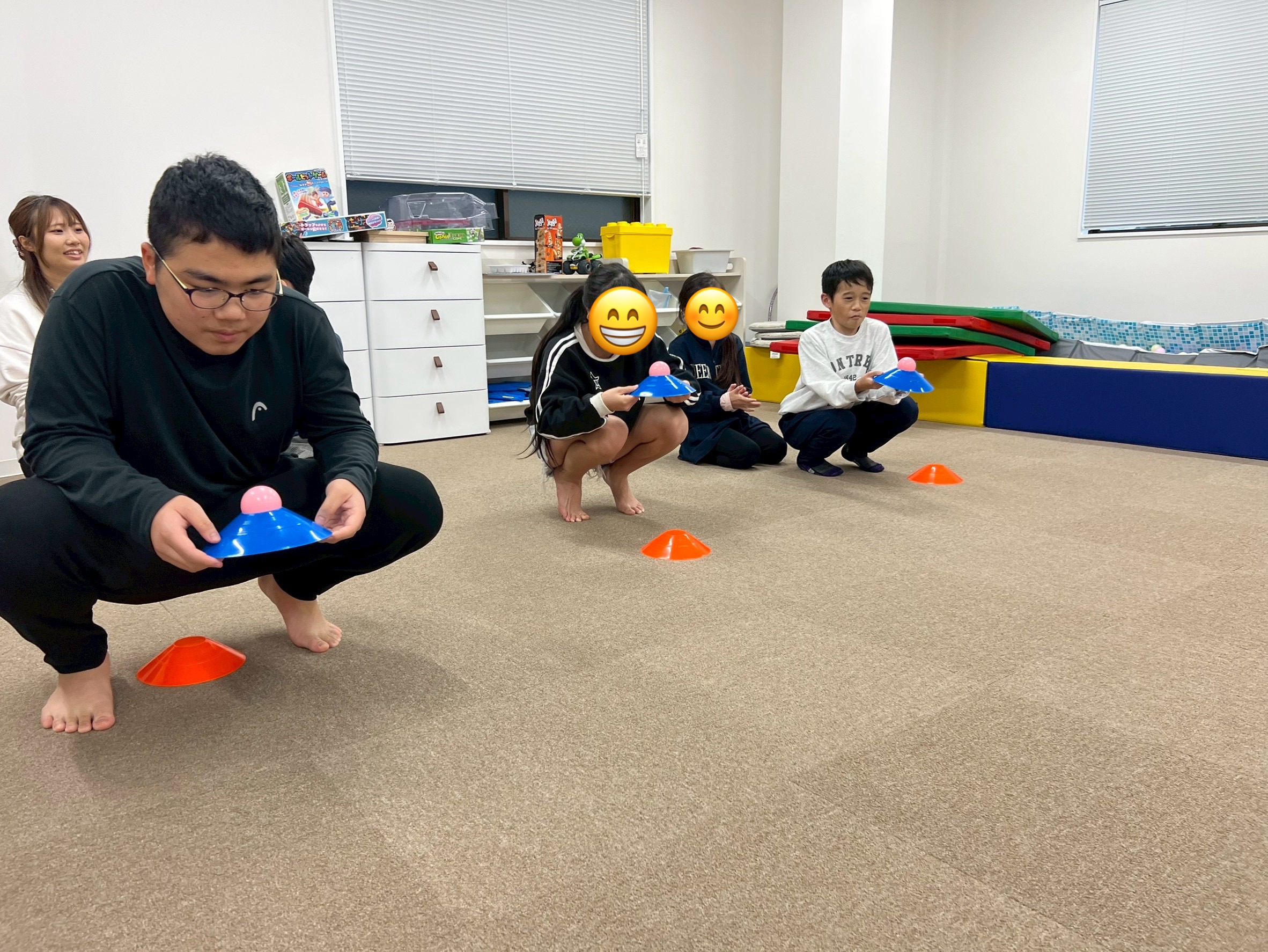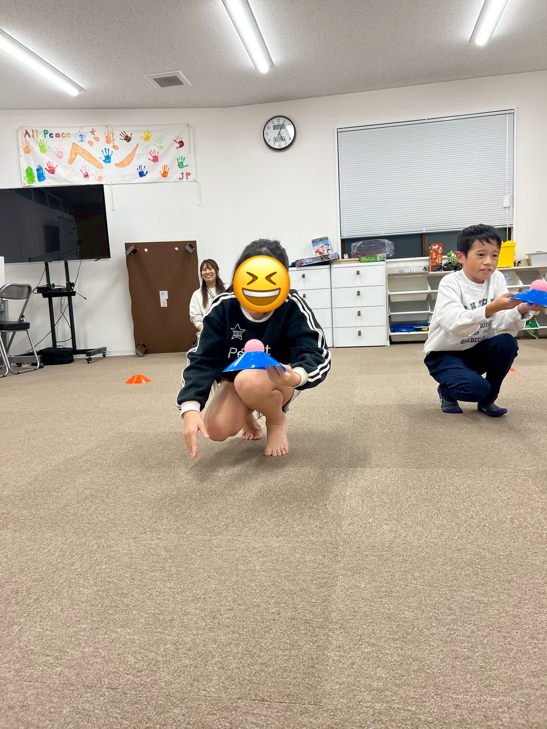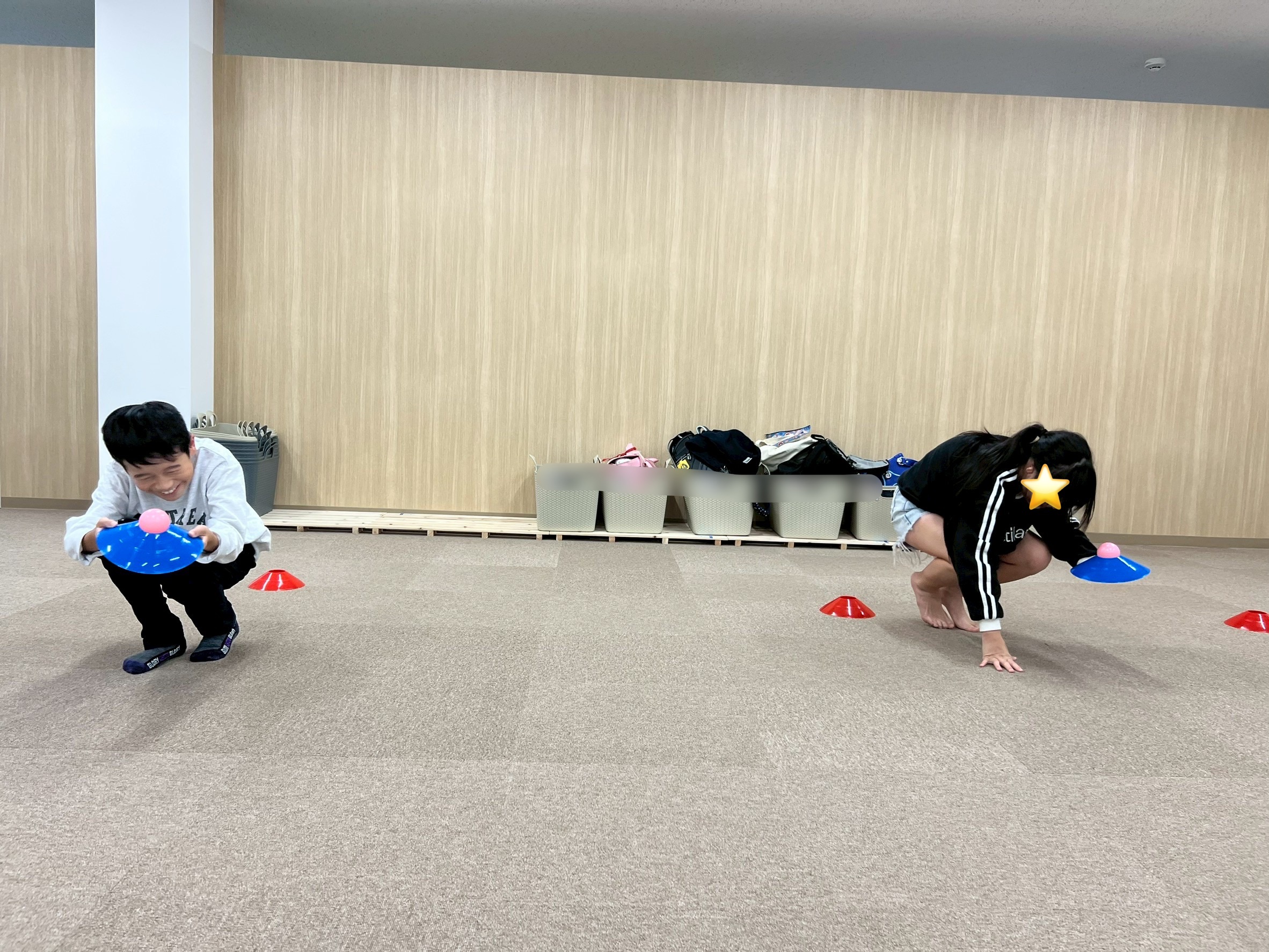 バランスを取りながらしゃがみ歩きを行います😄☝️