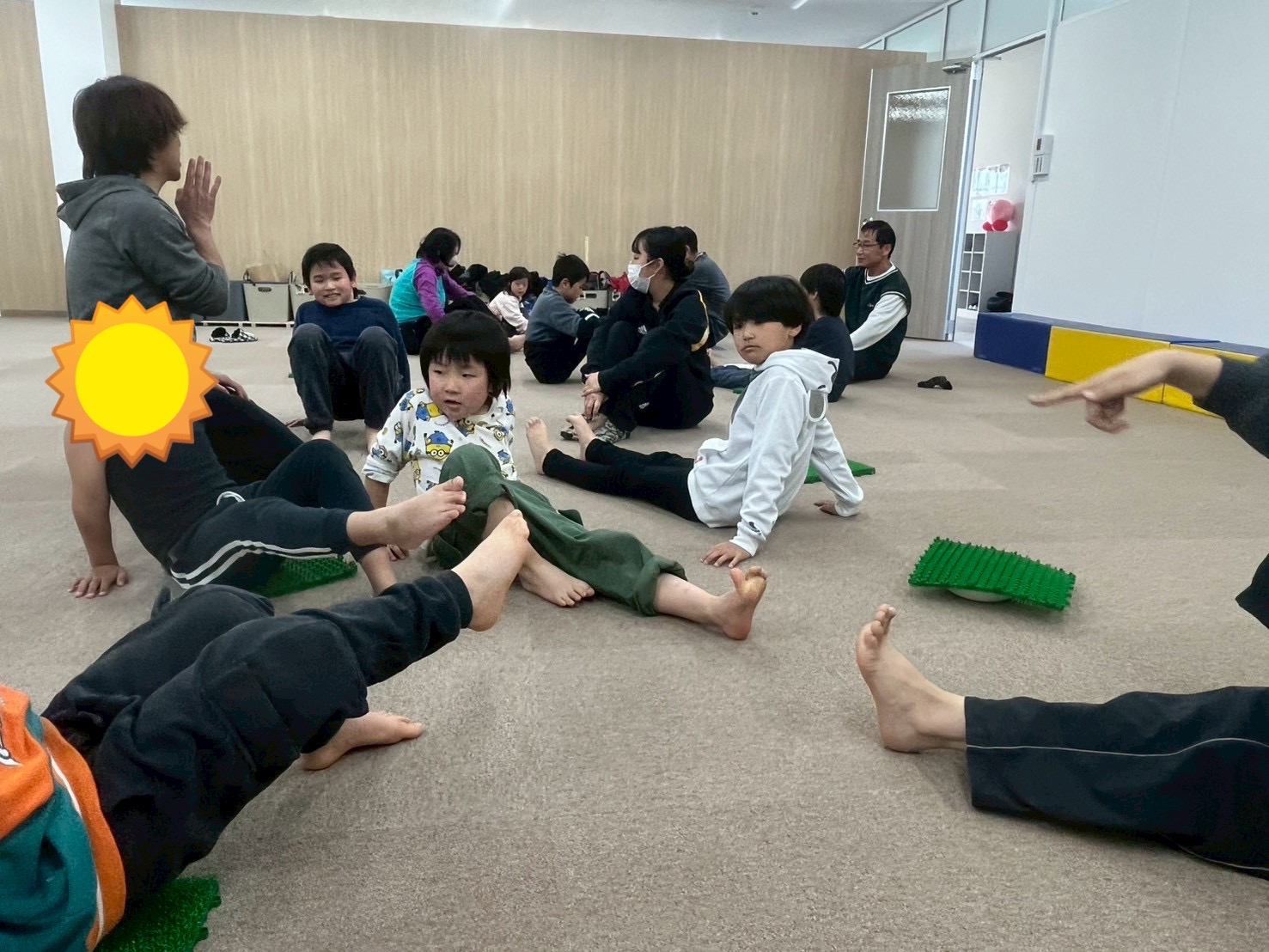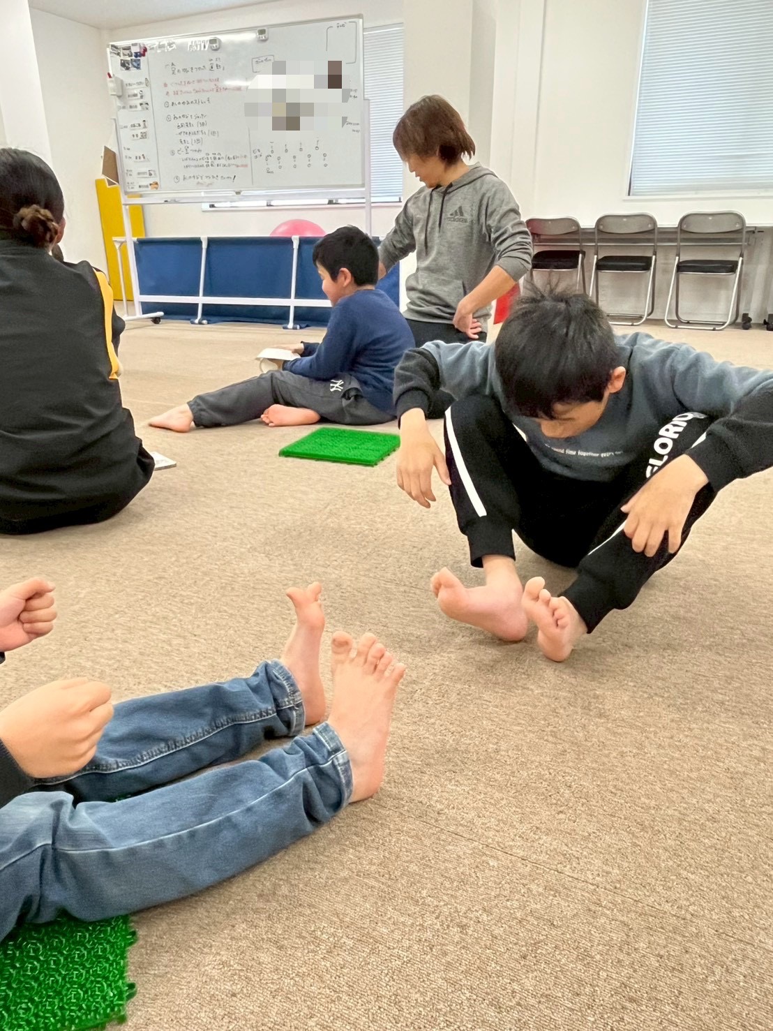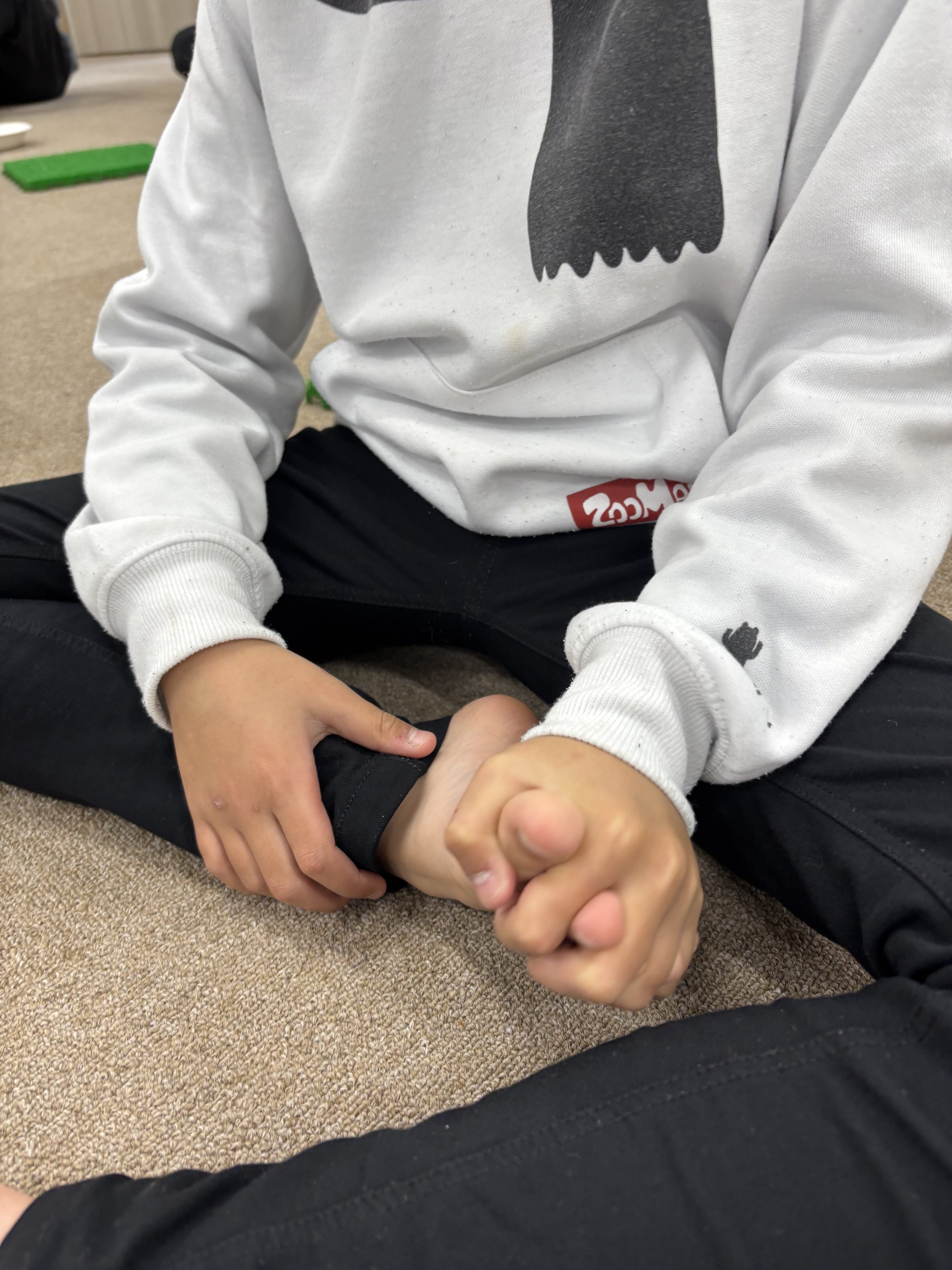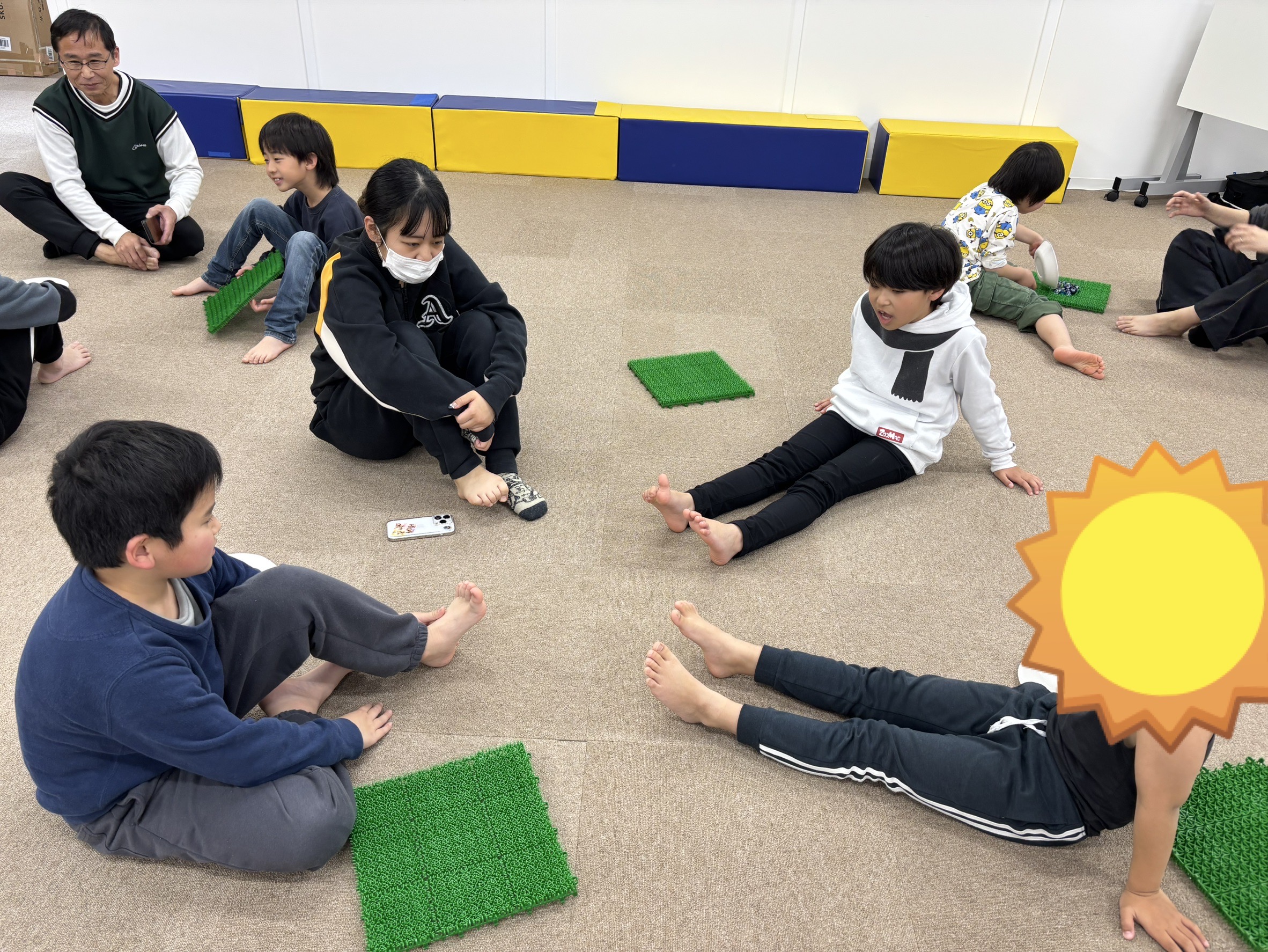 足の指と手の指で握手して動かすのは、大人がやると結構痛いですが、子供達は難なくできていました🙆