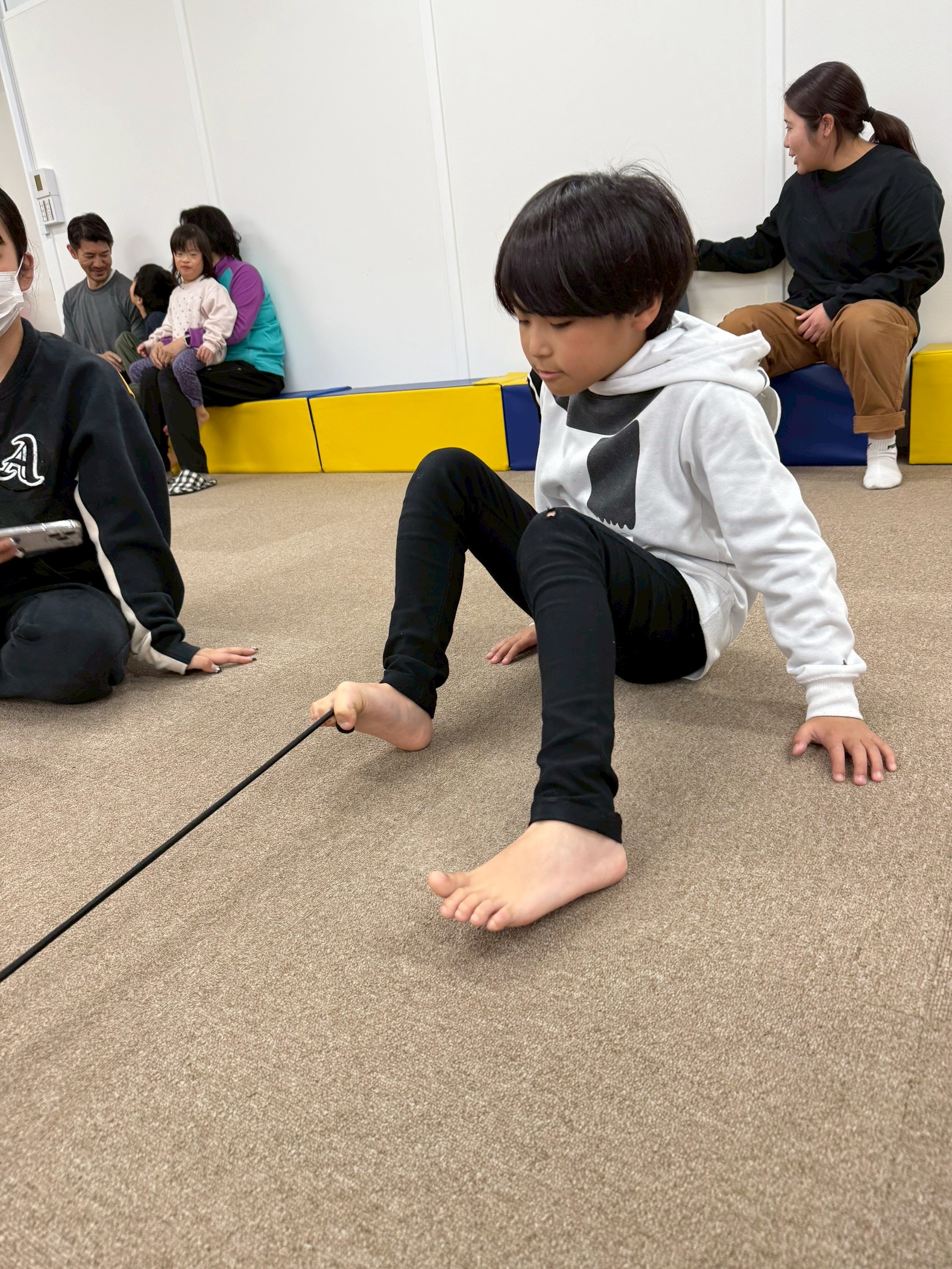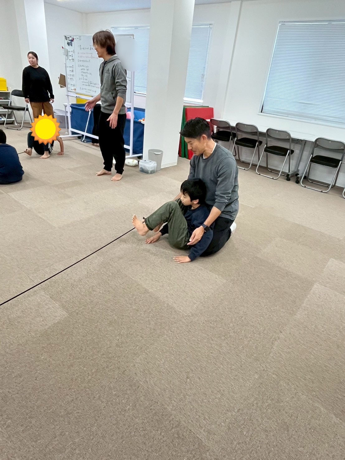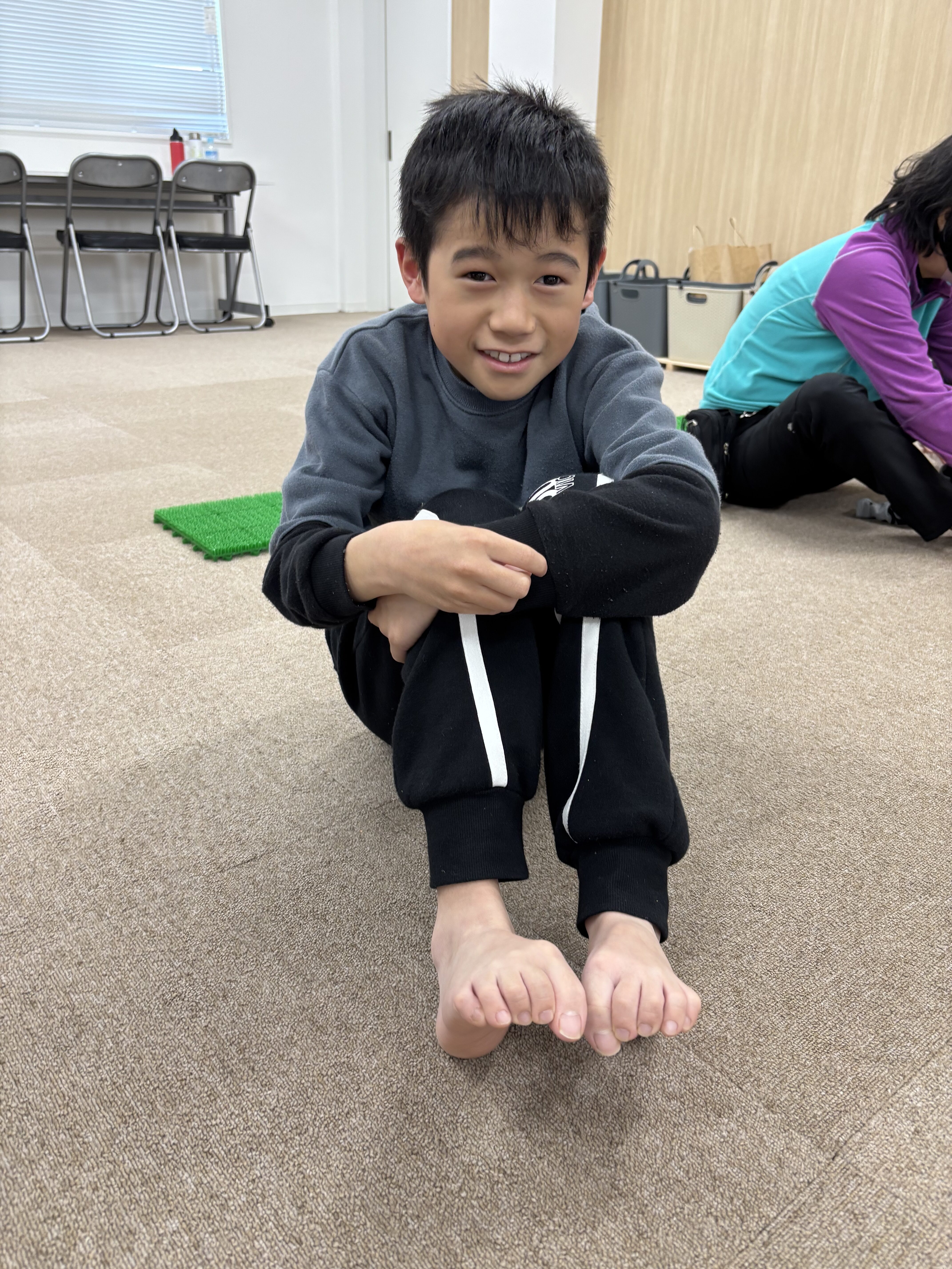 足の指と手の指で握手して動かすのは、大人がやると結構痛いですが、子供達は難なくできていました🙆
