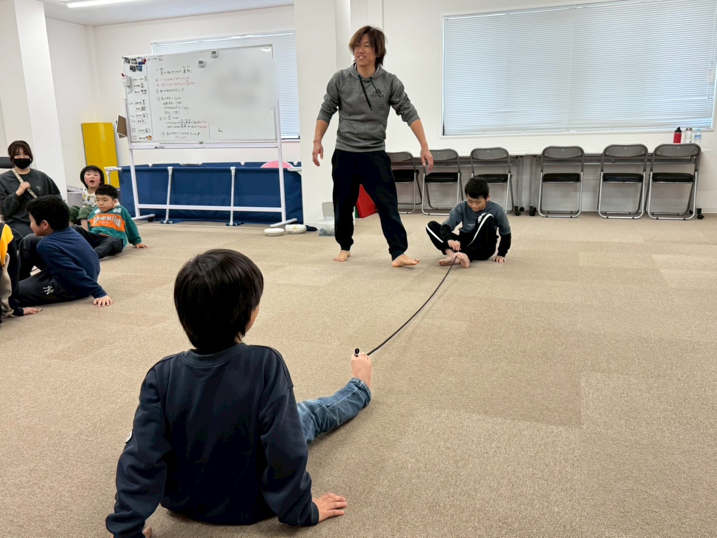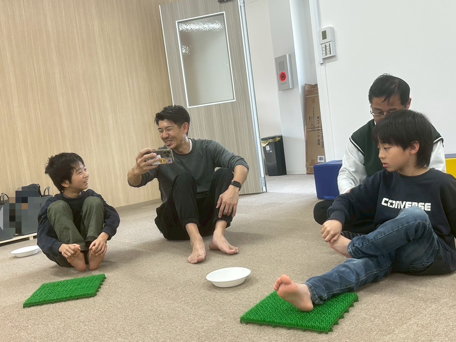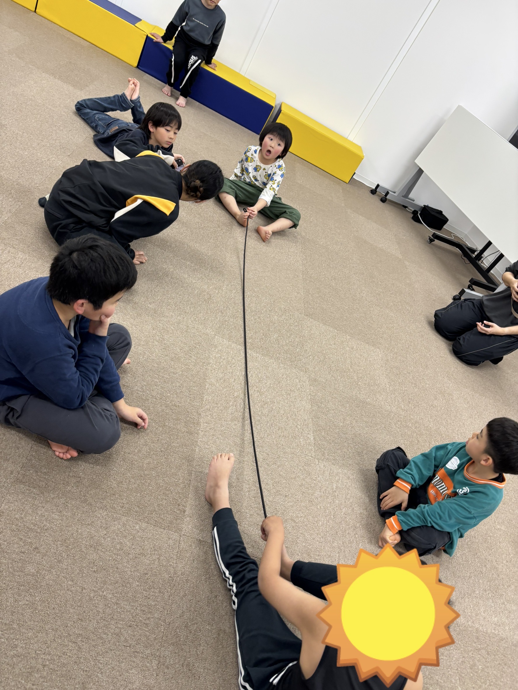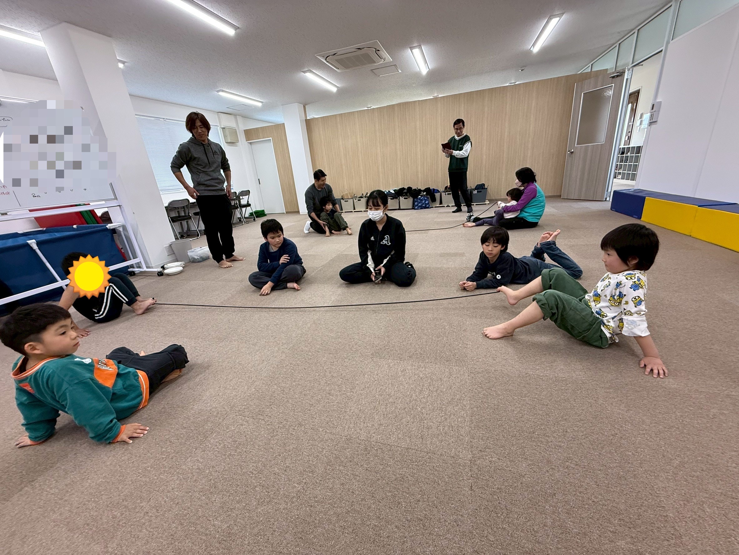 足の指と手の指で握手して動かすのは、大人がやると結構痛いですが、子供達は難なくできていました🙆