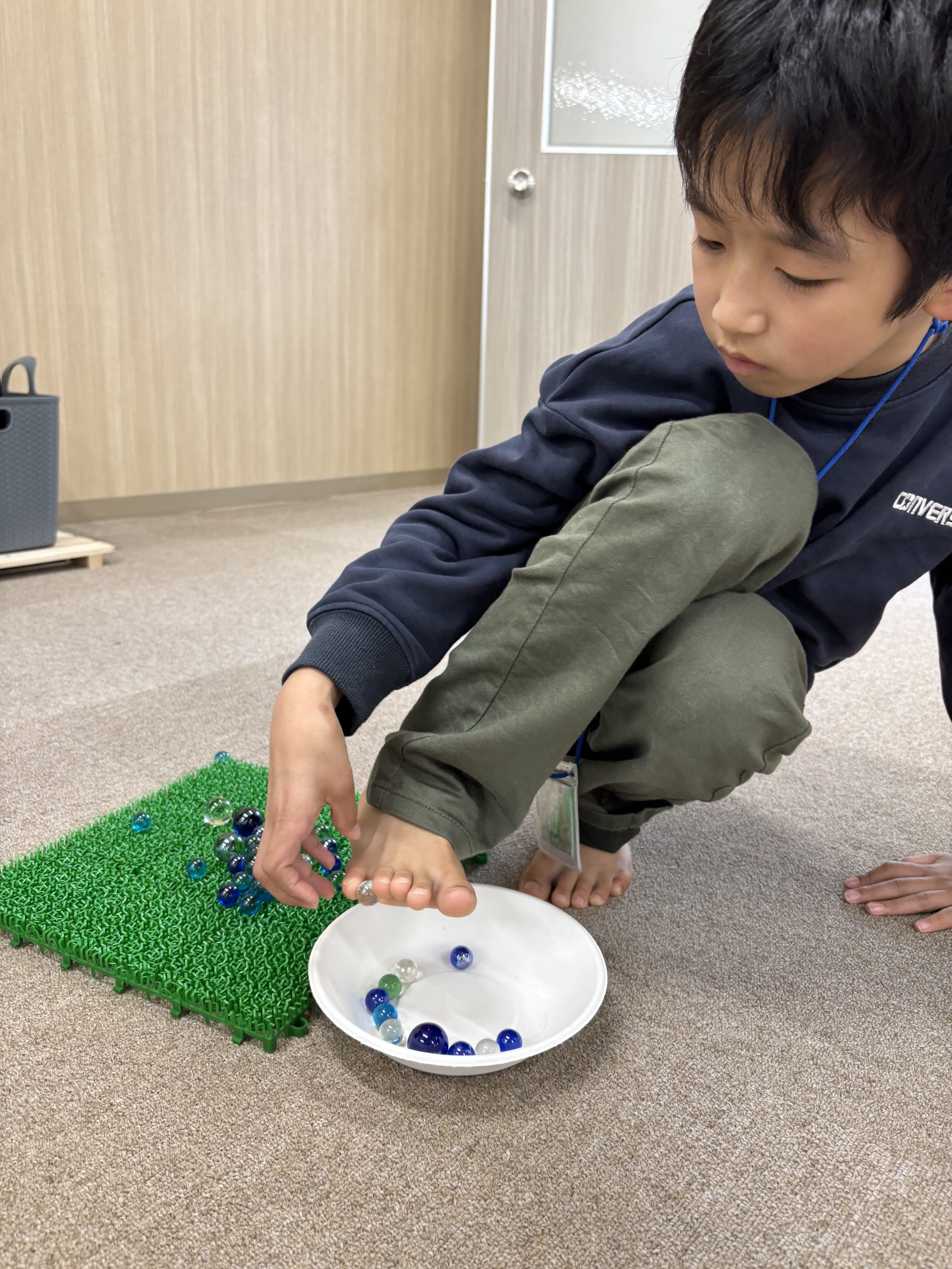 本日の療育活動では、「足の指」に着目した運動を行いました🦶