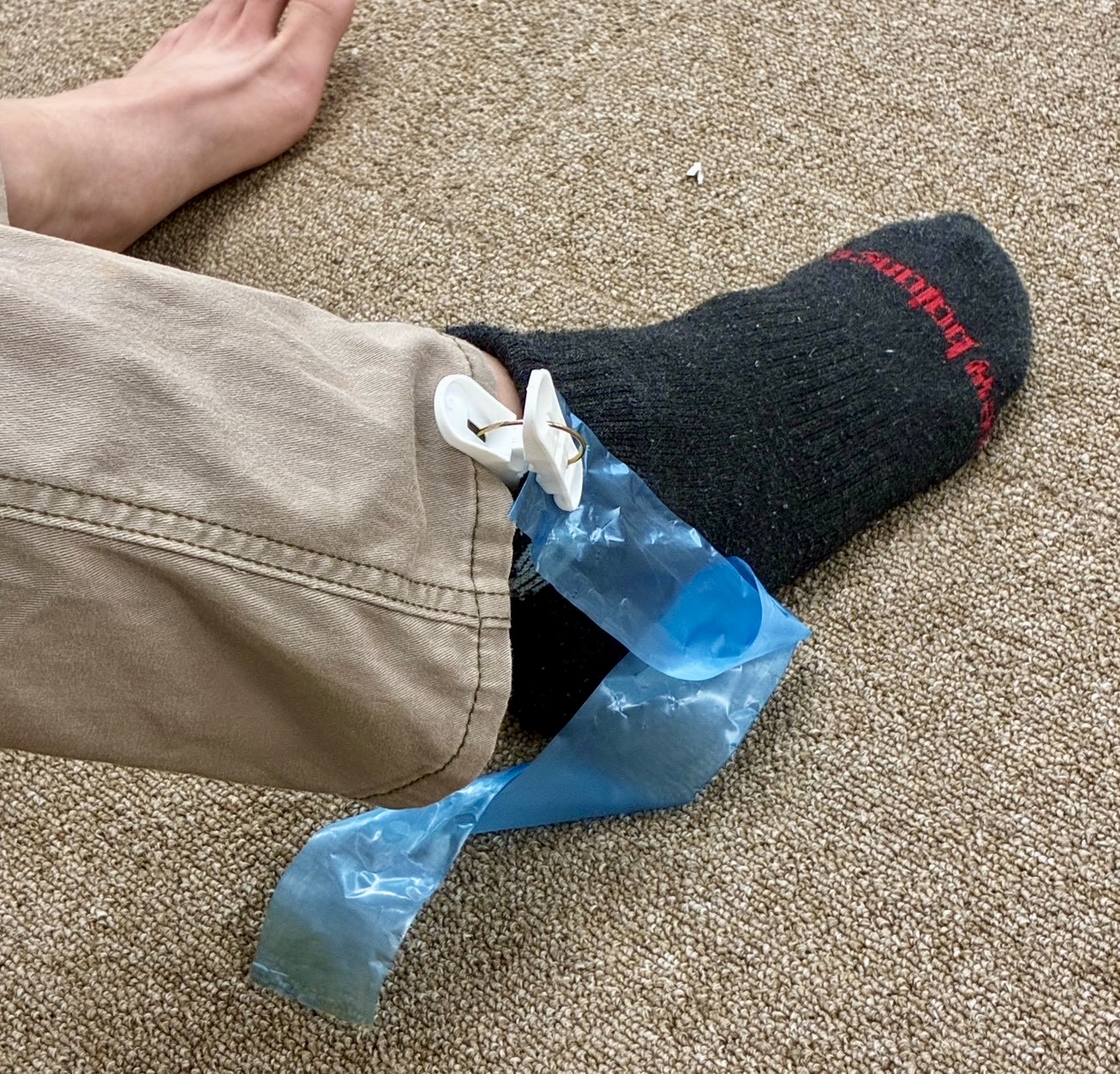 今回は、しっぽを足首付近に付けて