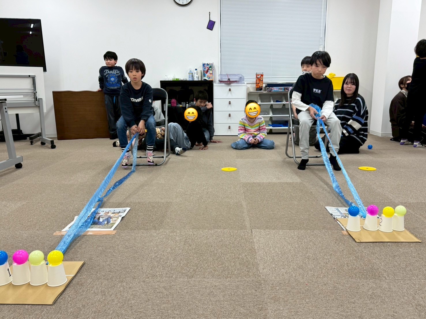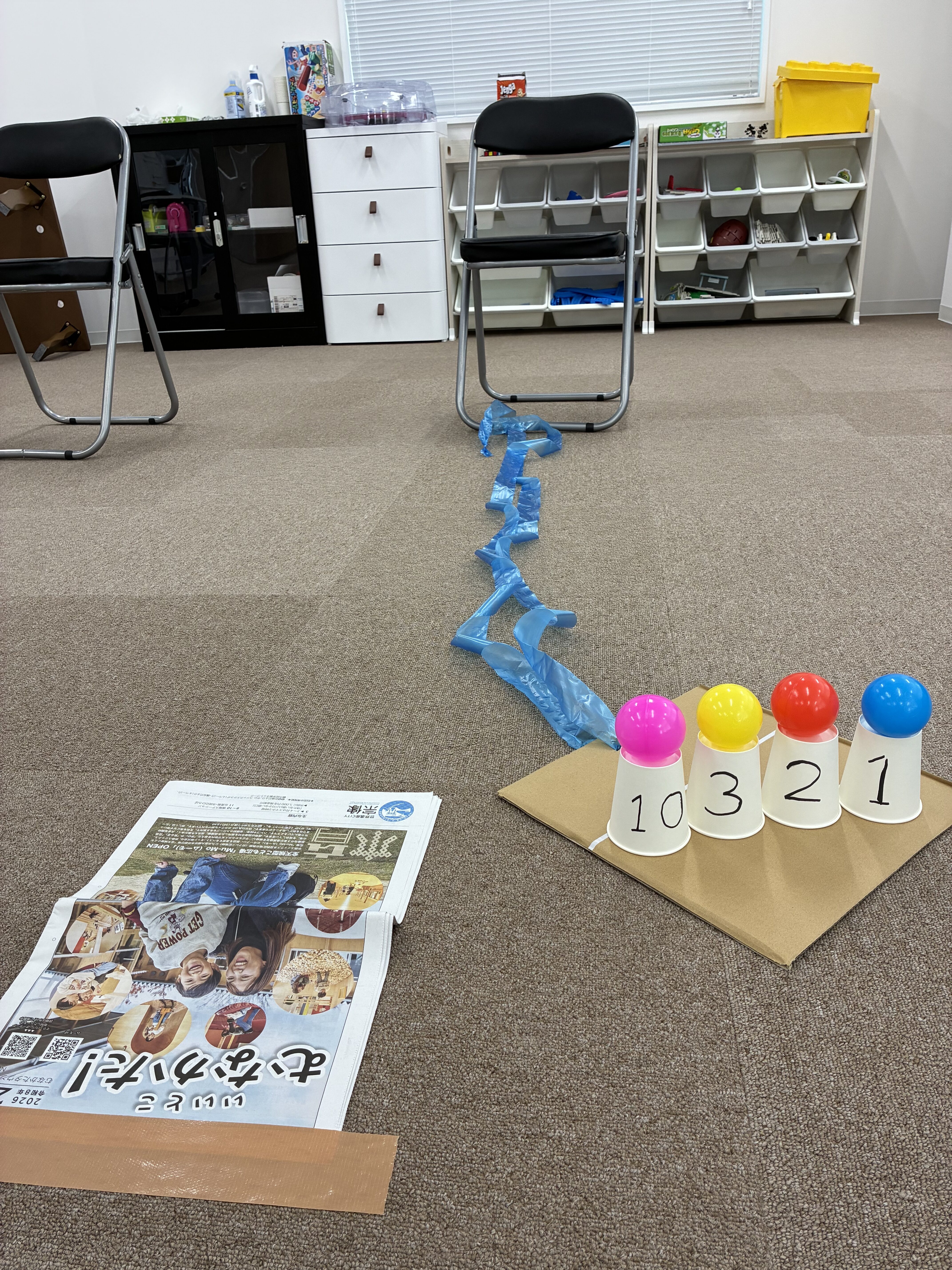 2回目には、障害物(新聞紙)も追加して