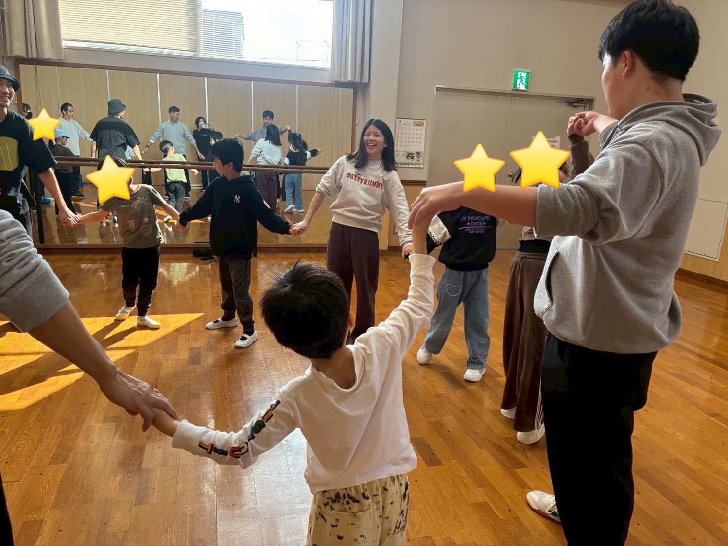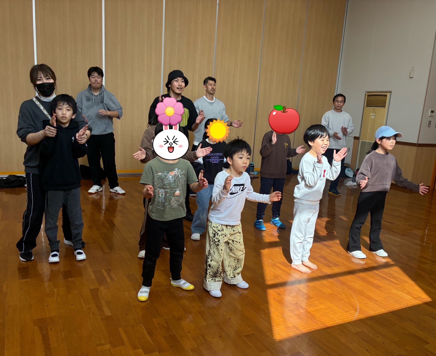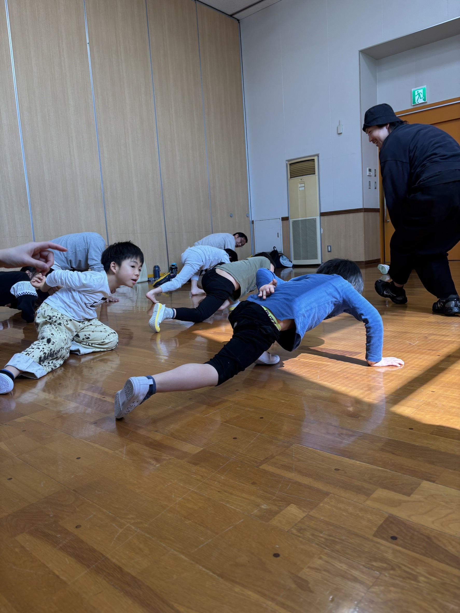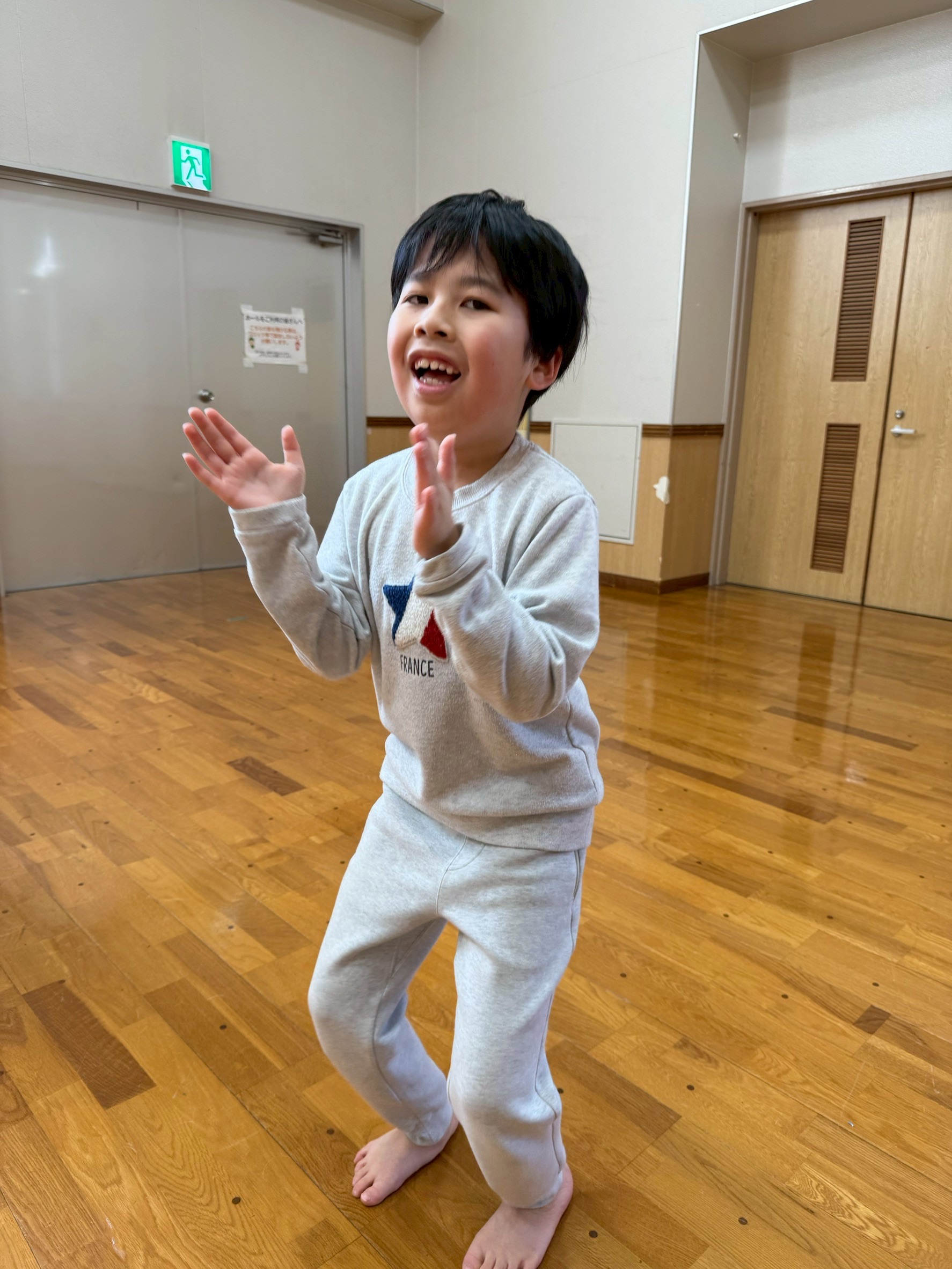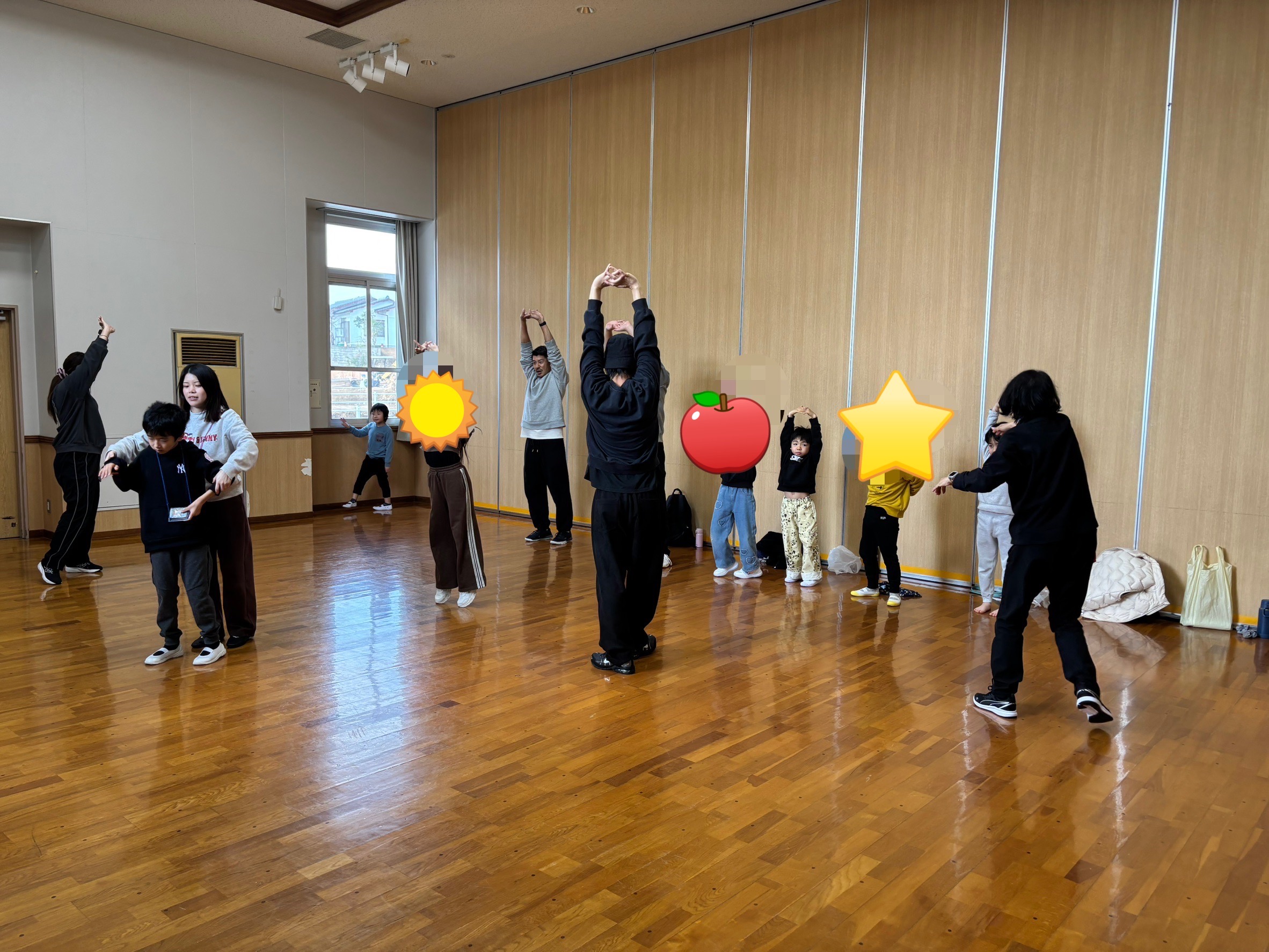 最初は少し難しそうにしていた子どもたちも、先生の動きを見ながら真似することで、だんだんとリズムに乗れるようになっていました😊