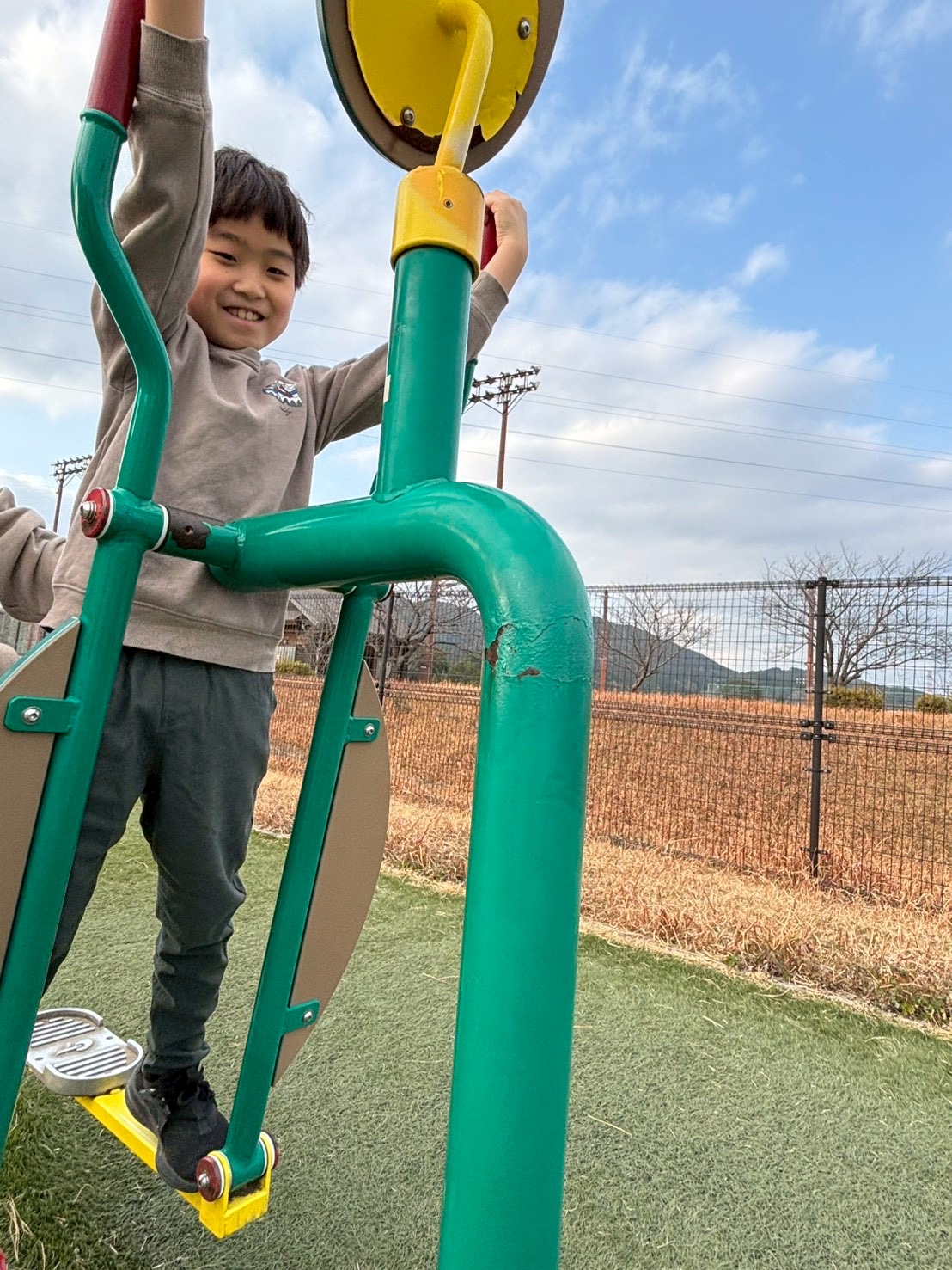 水分補給をしたりのんびりお散歩を楽しんだ後は健康器具や、滑り台など好きな遊具を選んで楽しく遊びました🛝
