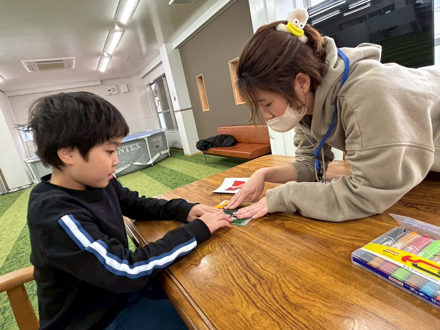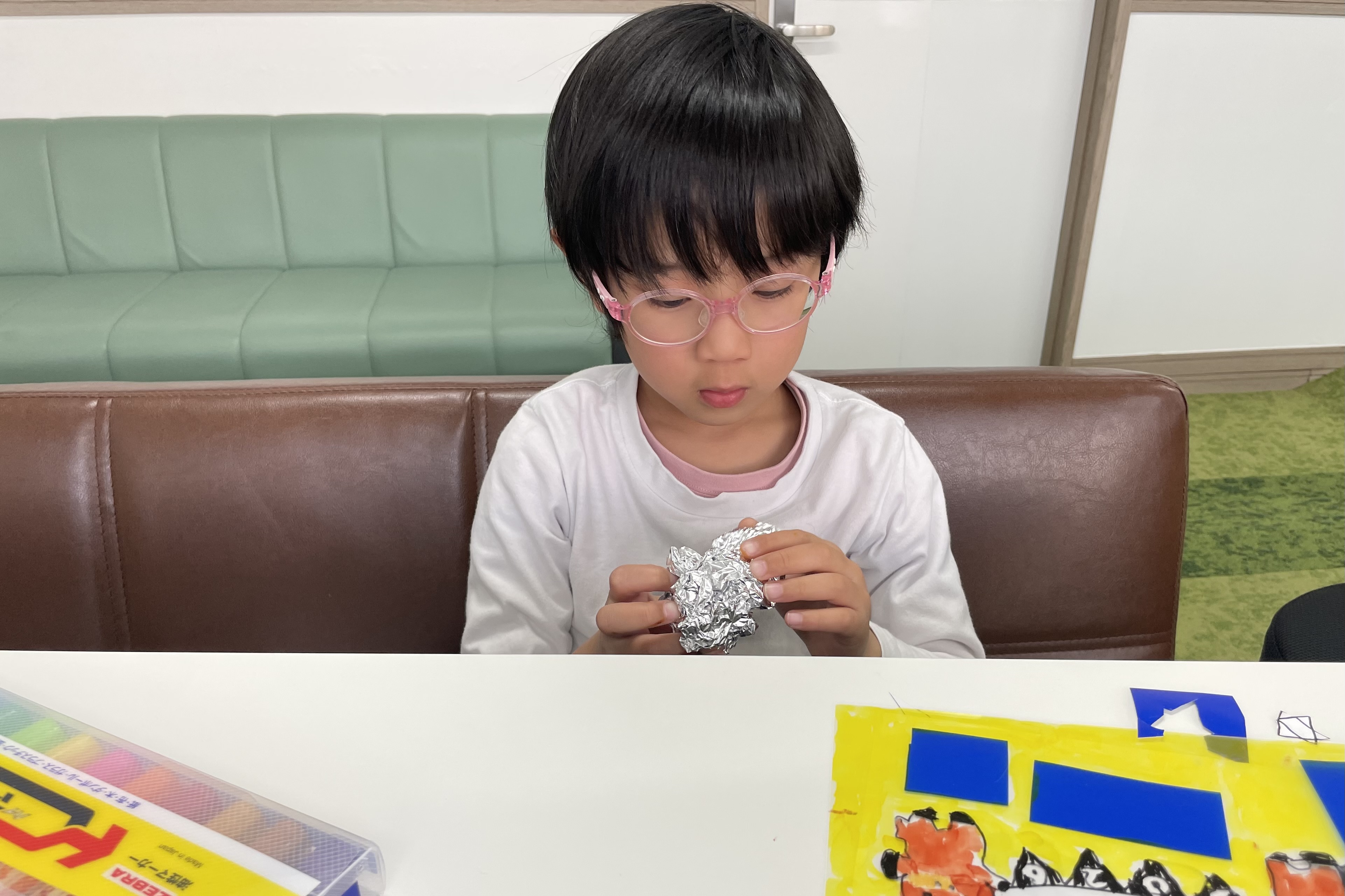 今日はわざと色を塗らない所を作ったり、ペンだけでなく、折り紙を使ったり工夫しながら作成する事が出来ました✨👏
