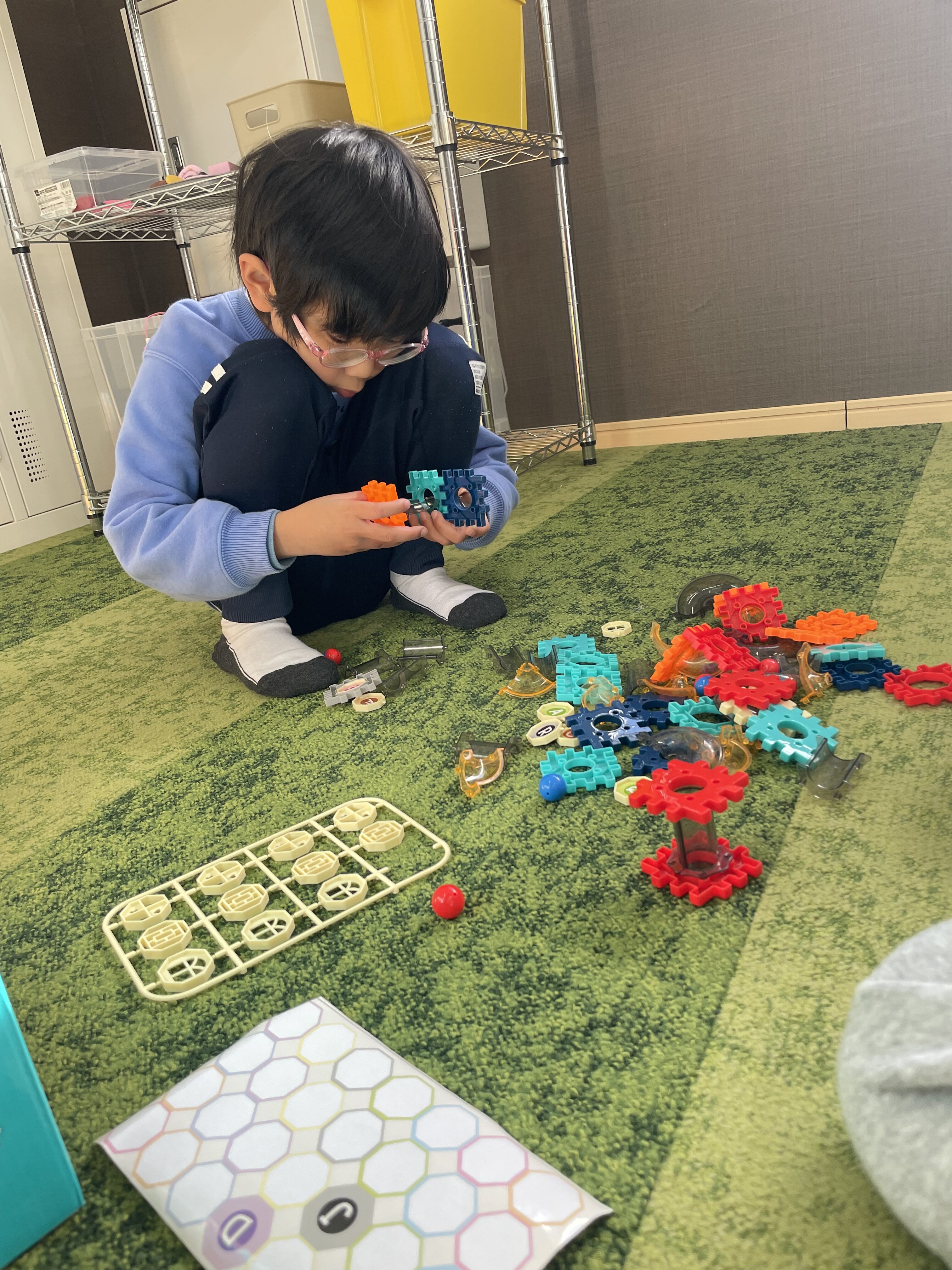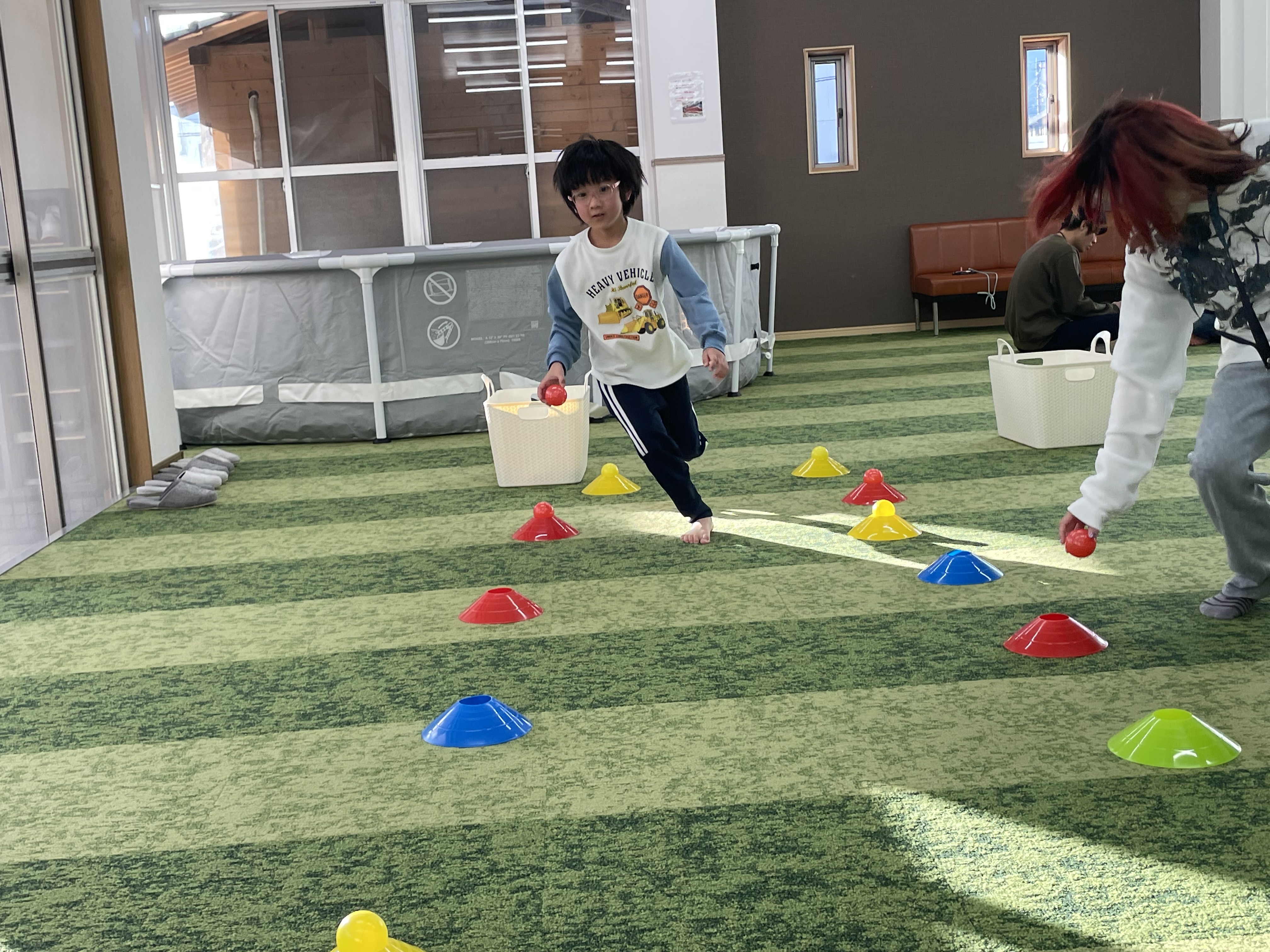 スタッフが言った色のカラーボールを取ってマーカーに乗せていく✨