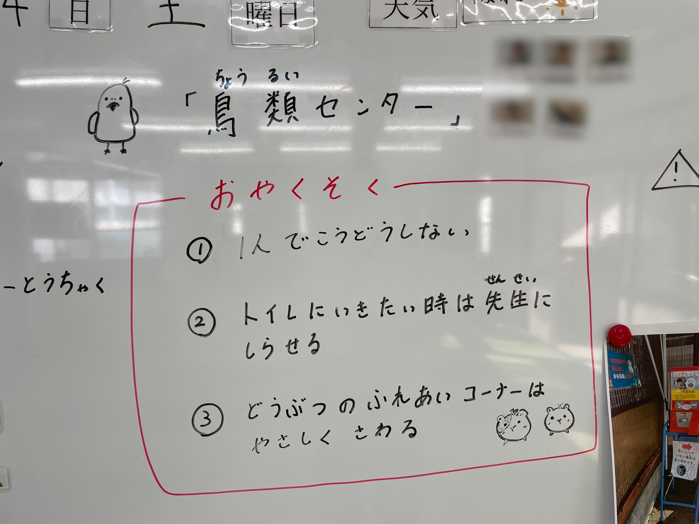 お友達の中には行かれた事もあるお子さんもいらっしゃり「いっぱい鳥がいたよー🦆」と教えてくれたり、出発前から動物の絵を描いてくれたり、楽しみにしていました♪