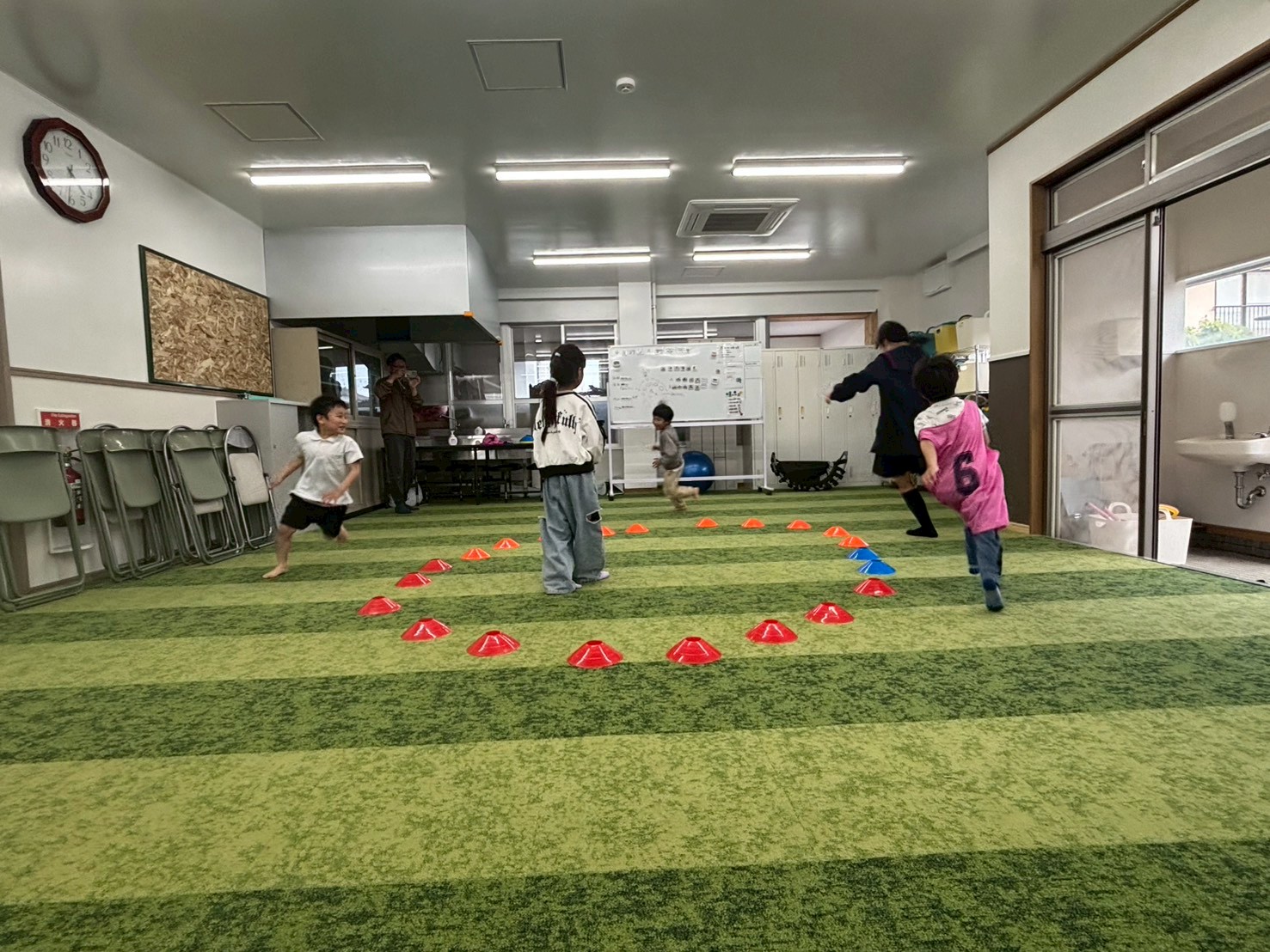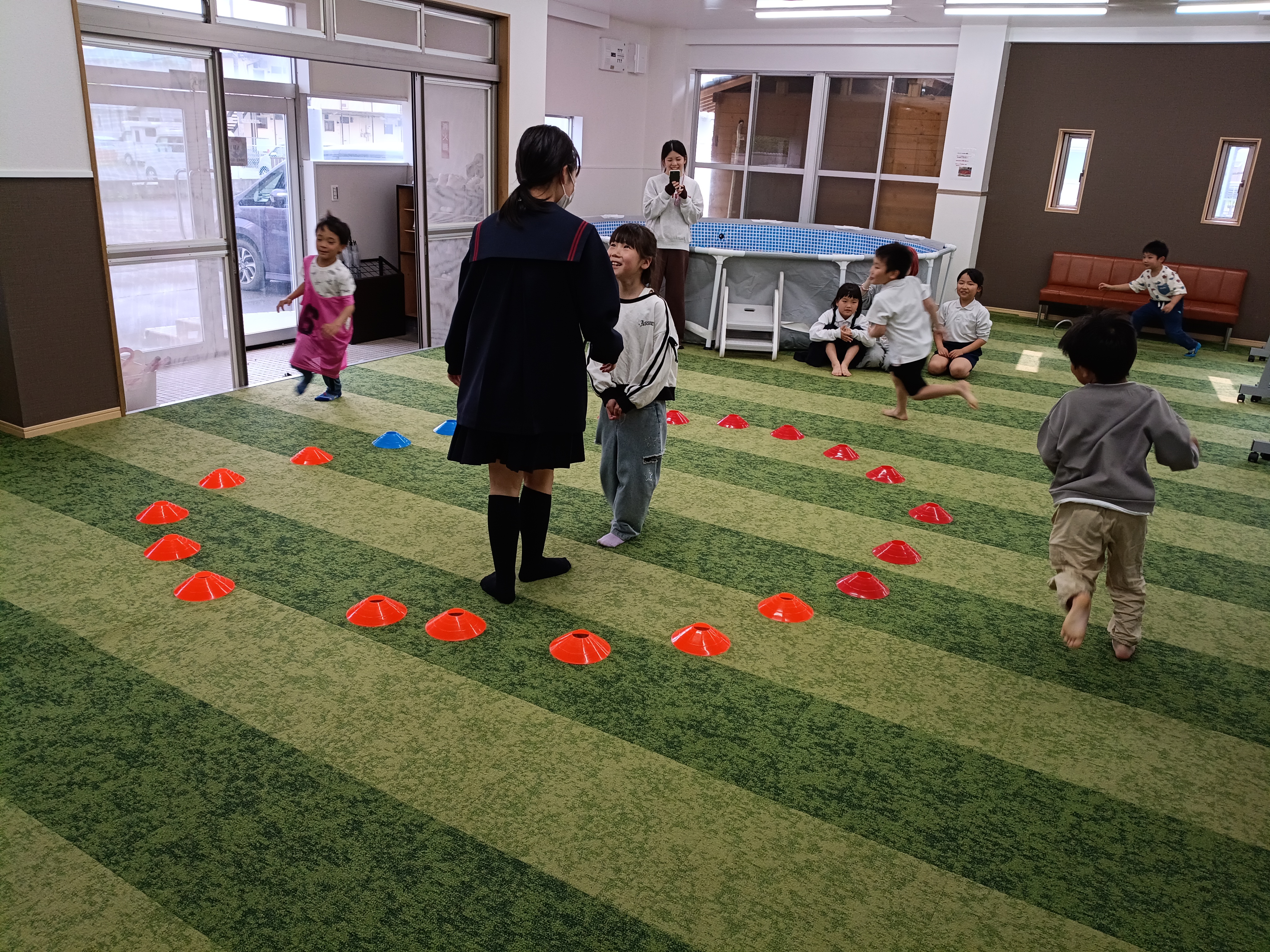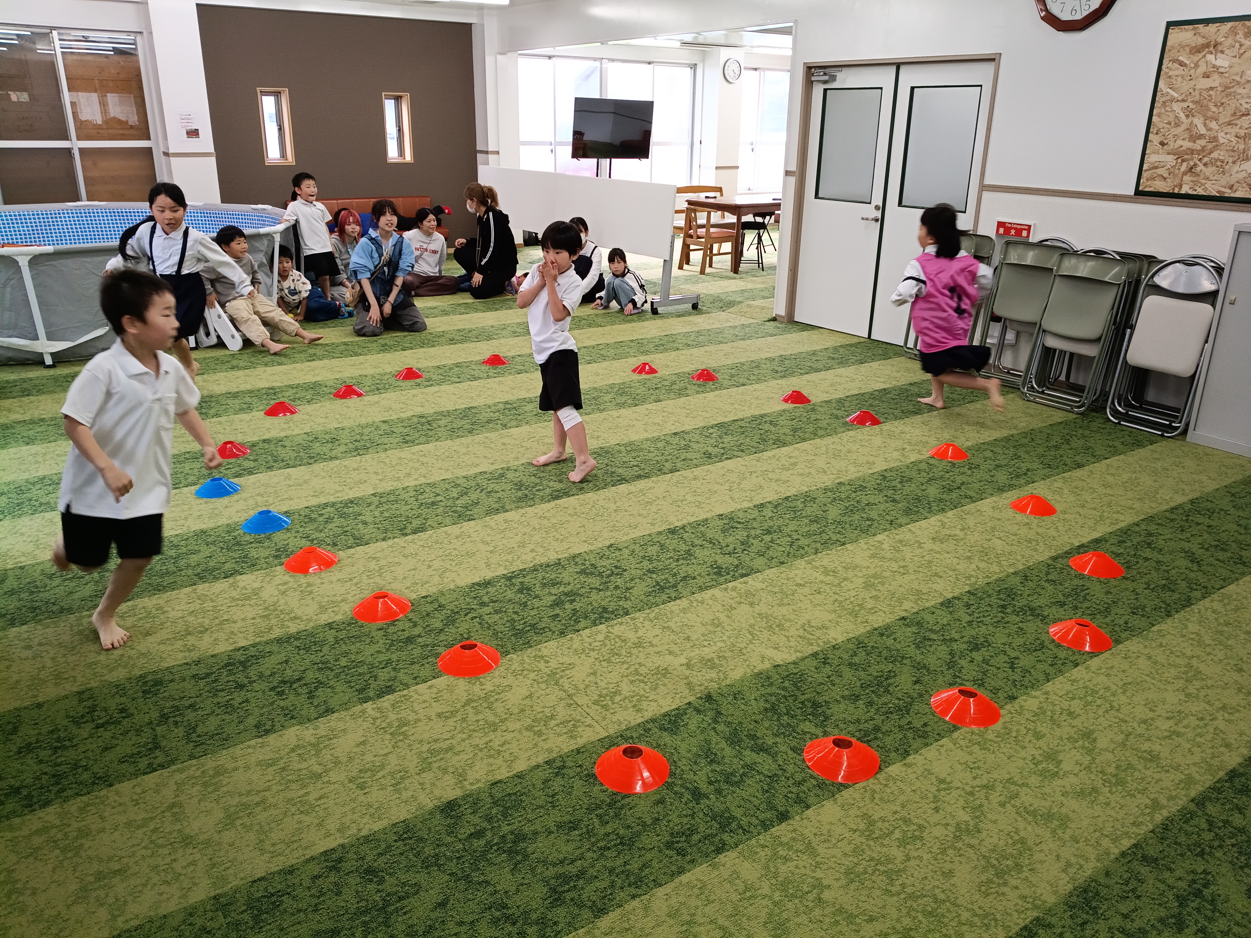 今回は普段遊んでいる鬼ごっことは違うアレンジ鬼ごっこを皆でやってみました✌️