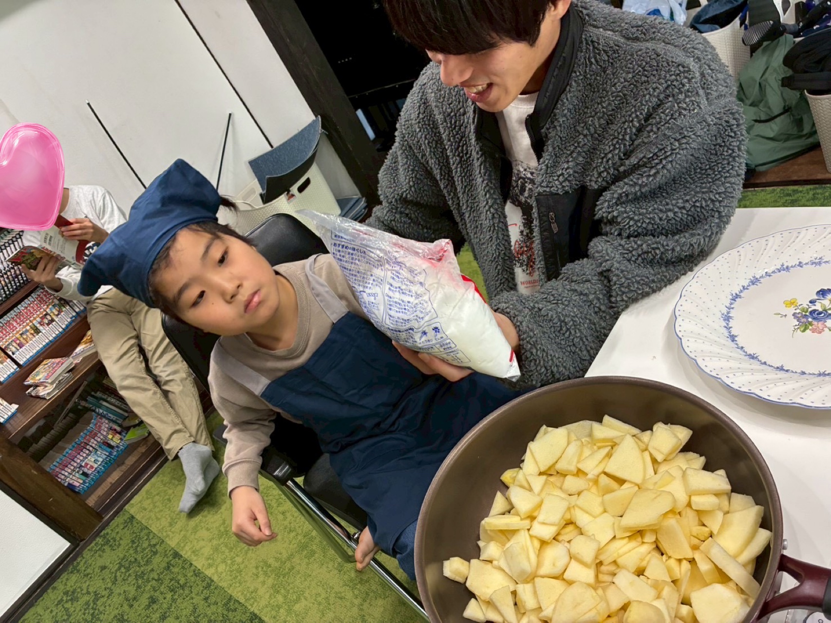 リンゴジャムを作るのに砂糖も入れるよ✨