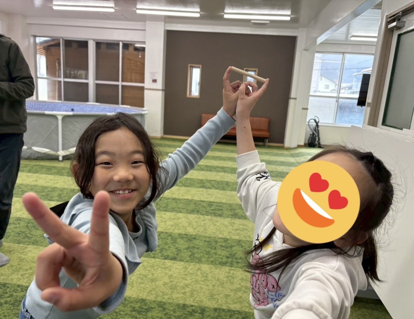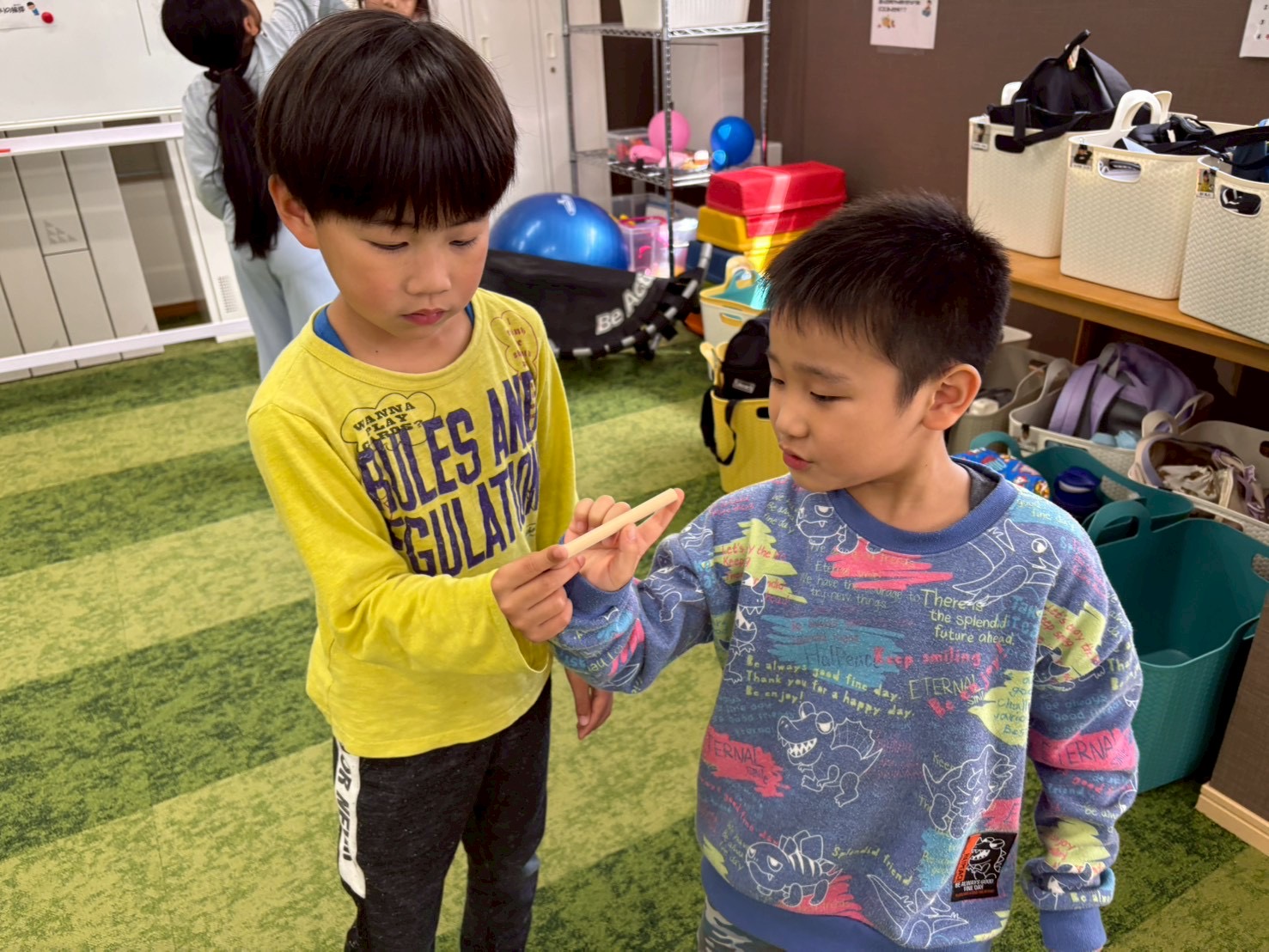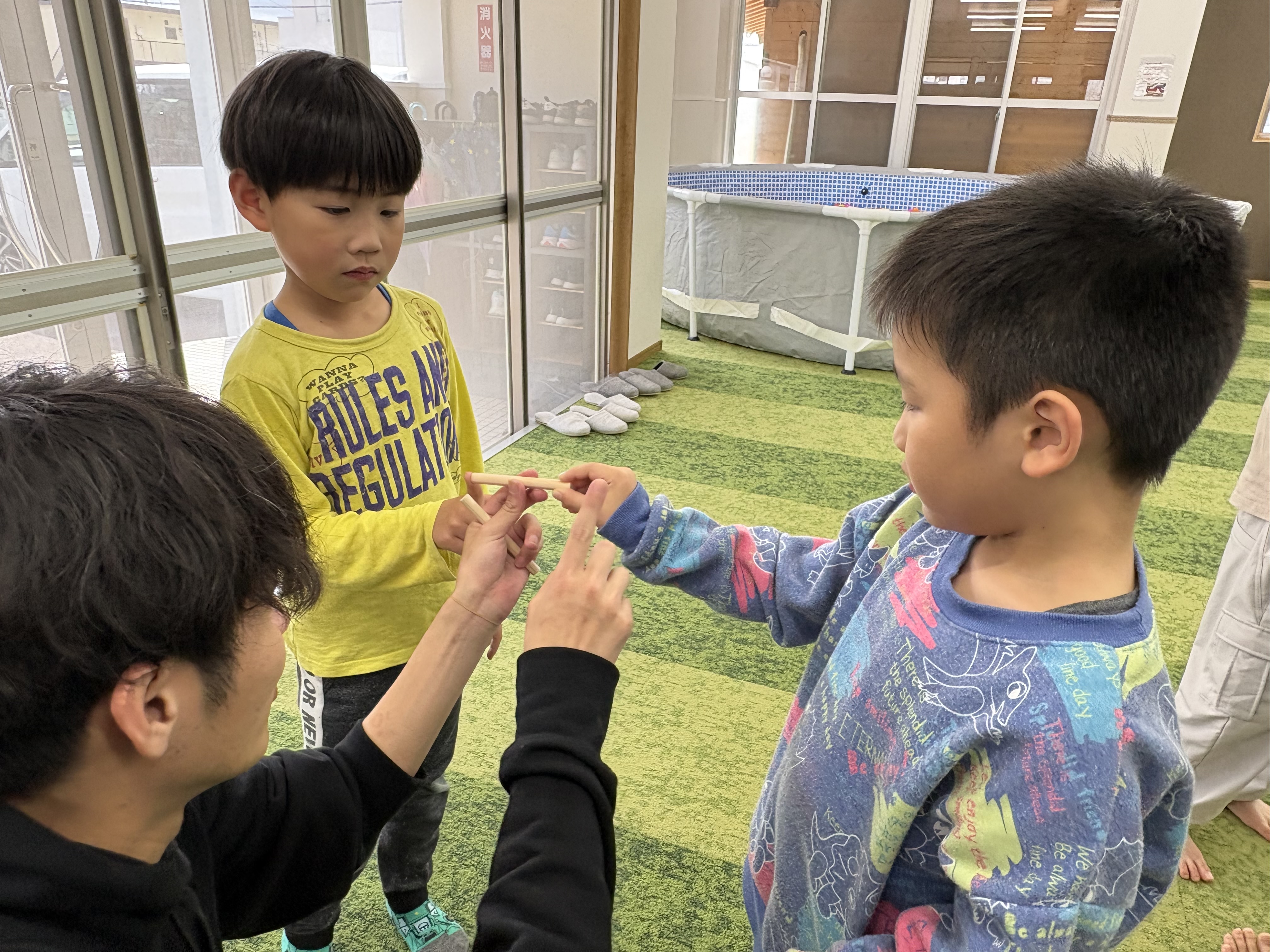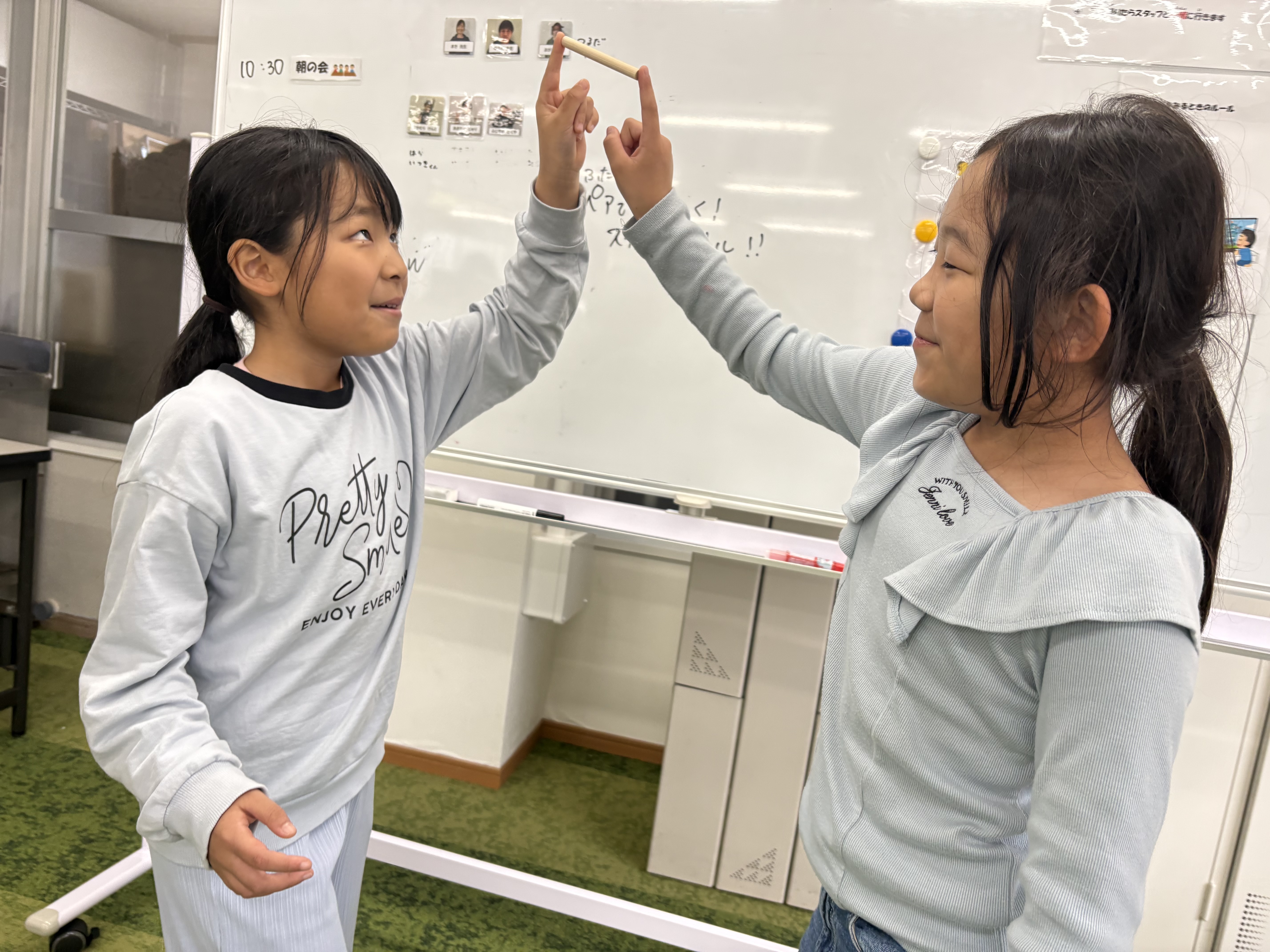 二人一組になり、人差し指同士でスティックを挟んだら準備オッケー!🌟