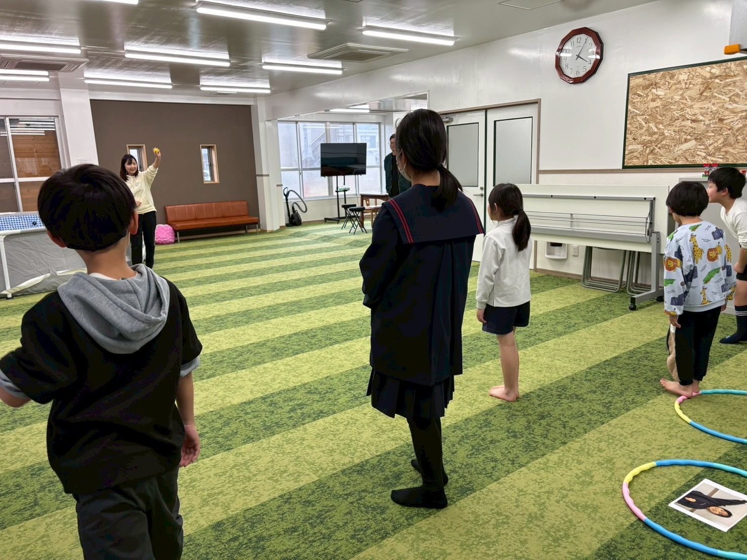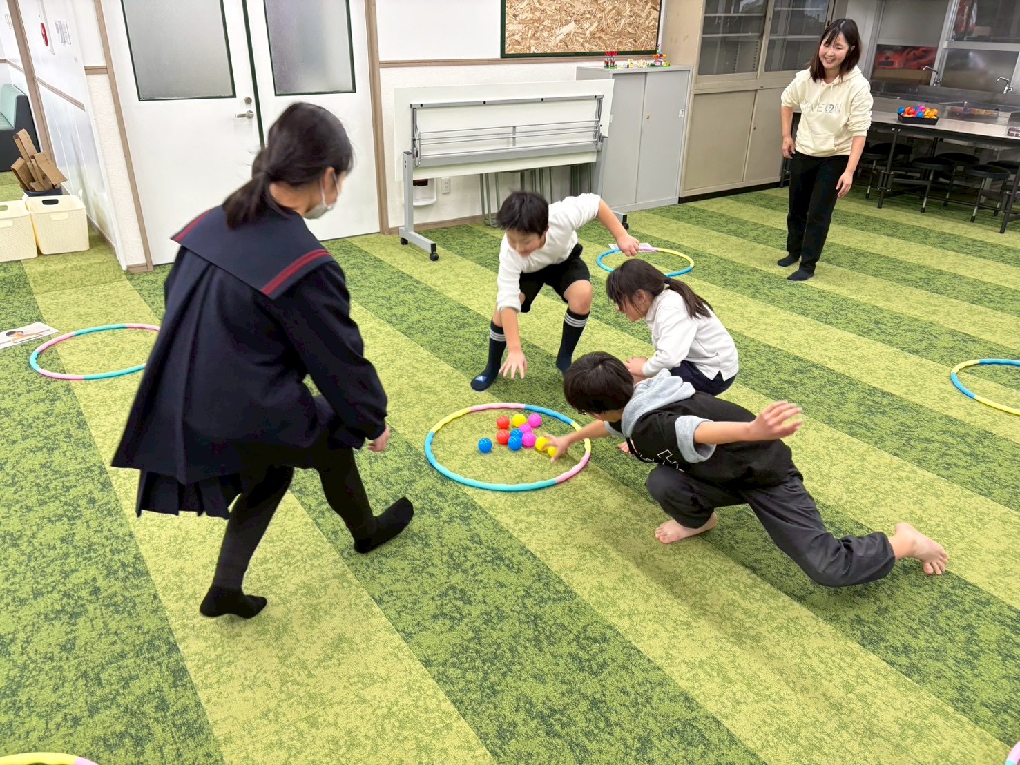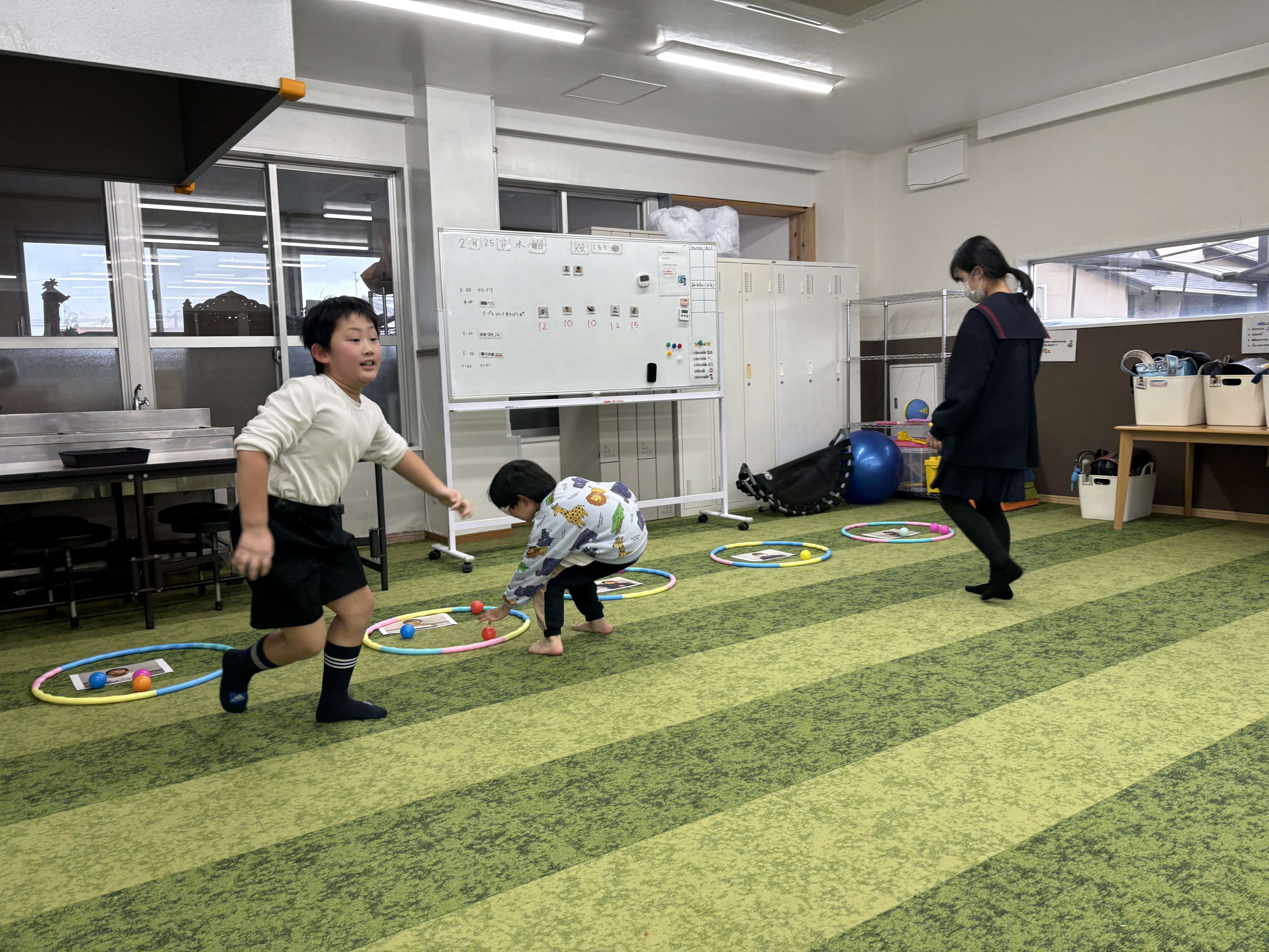 活動では、フラフープを使ったゲーム性のある運動をおこないました😊