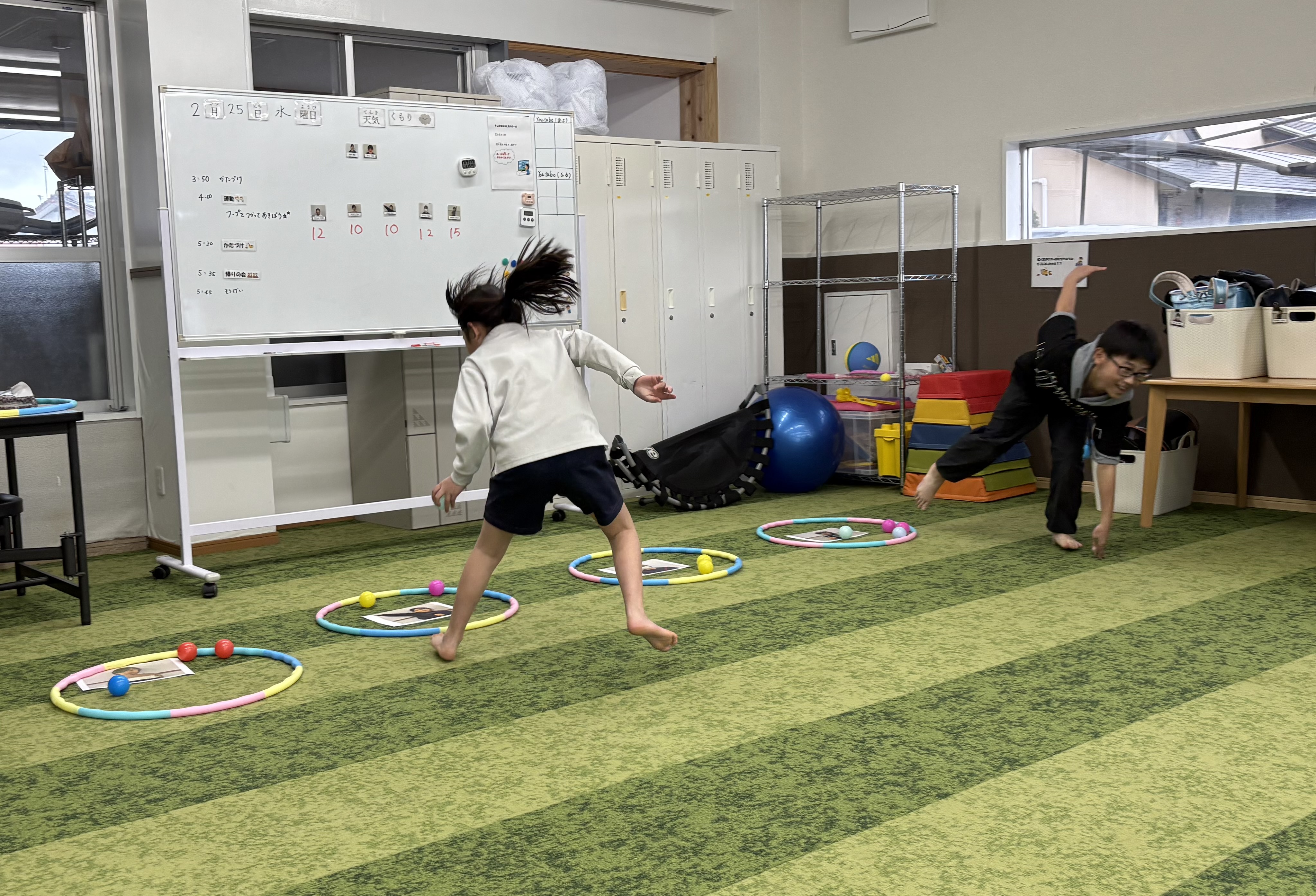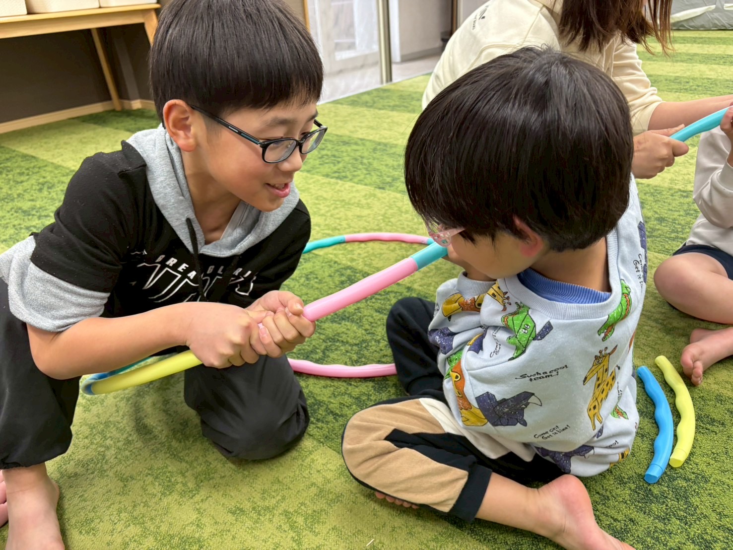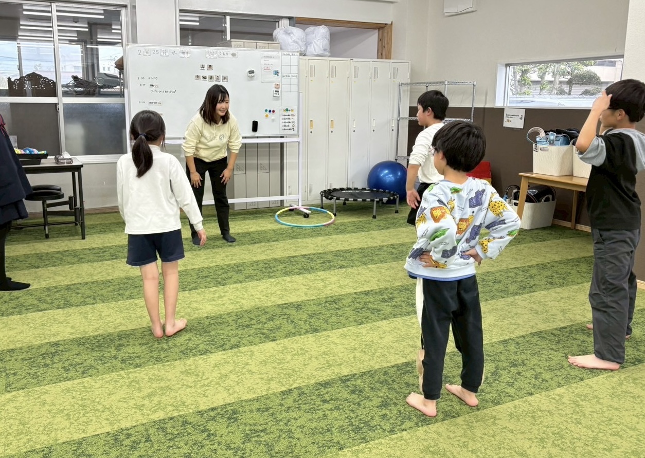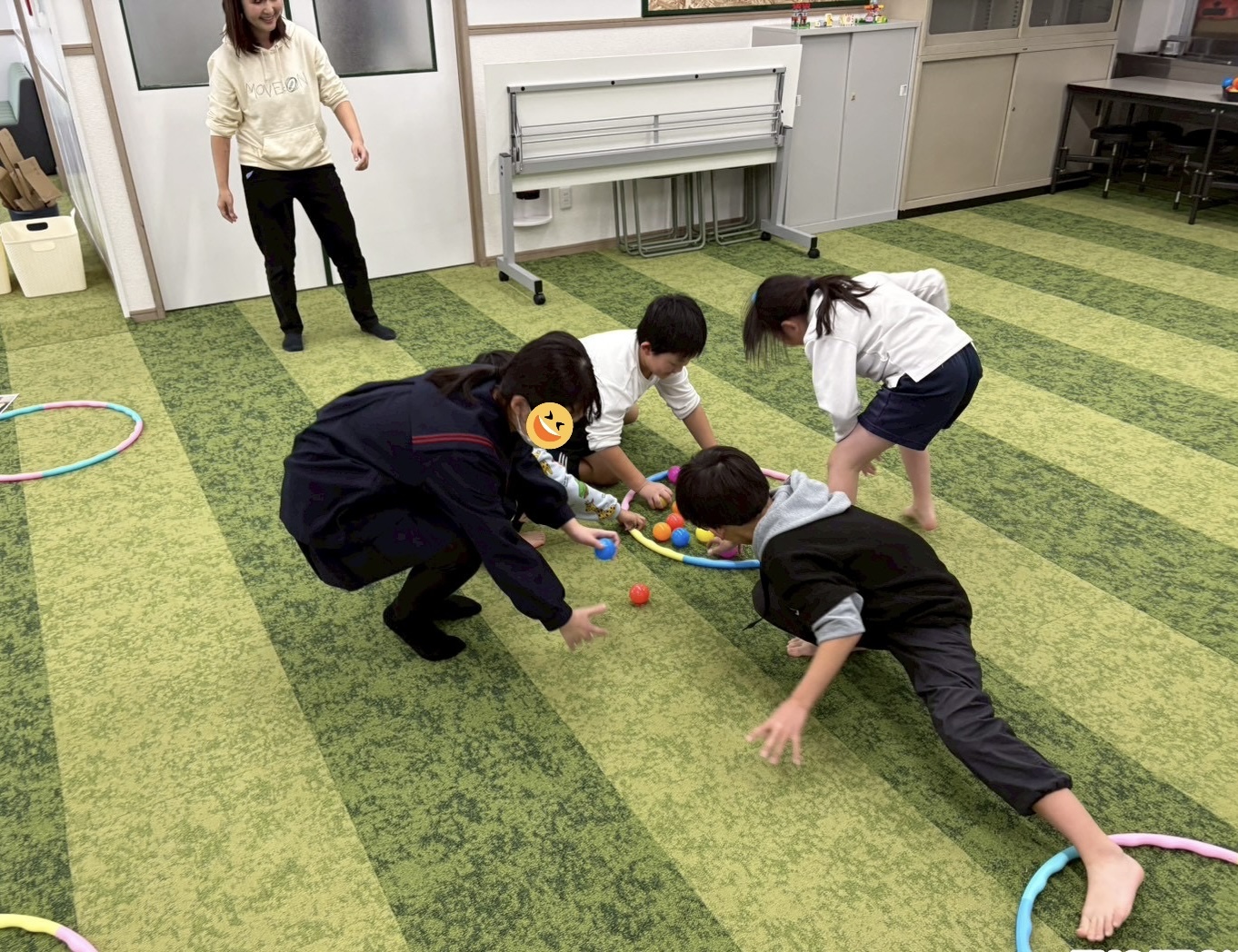 活動では、フラフープを使ったゲーム性のある運動をおこないました😊