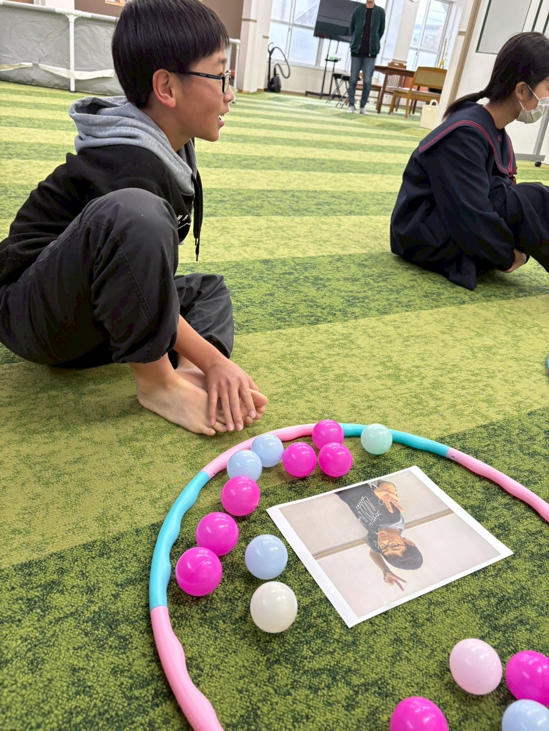 つぎの内容は、先ほどと同じように自分のフープに必要な個数のボールを揃えるのですが、ボールの数には限りがあります🫨🔴🟠🔵