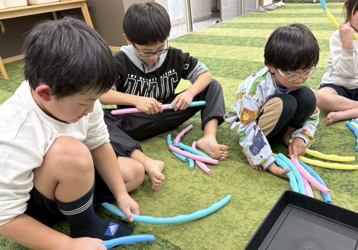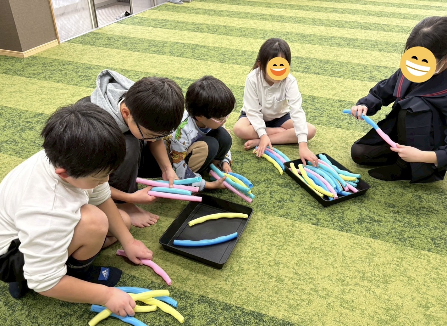 準備運動が終わったあとは本日使用するフラフープを自分たちで組み立てました😊⭕️