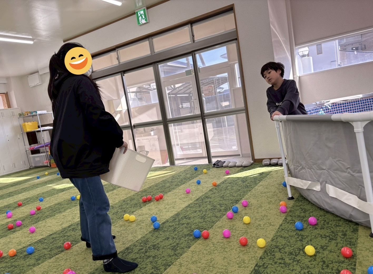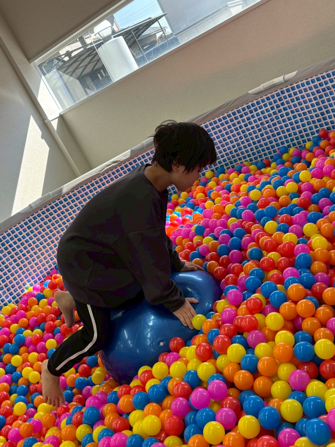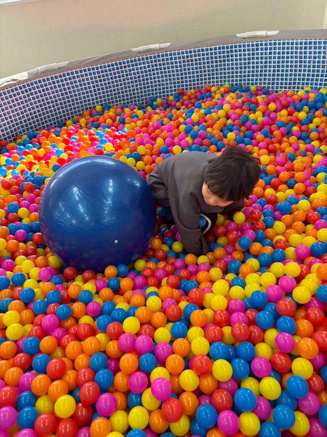 ボールプールの中でバランスボールに乗るという最難関な技に挑戦中…💪