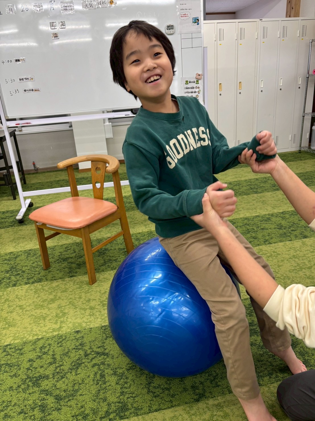 姿勢保持が難しい子は、楽しみながら体幹を使う経験ができたり、